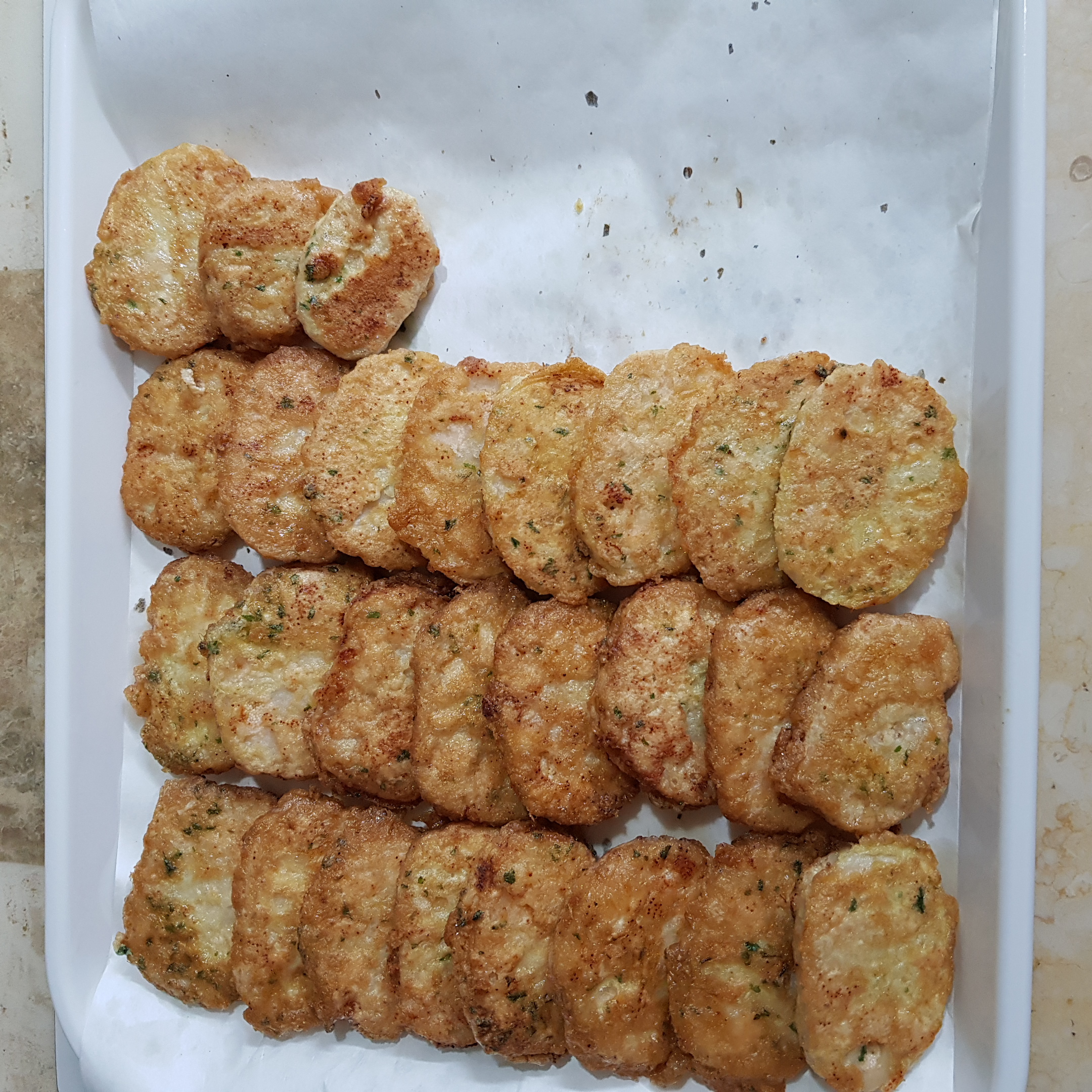 저염 명란 270g, 연근 290g, 계란 2개, 밀가루 2큰술, 올리브유 약간, 식초 2스푼(연근 데침용), 파슬리가루 1티스푼(생략 가능)