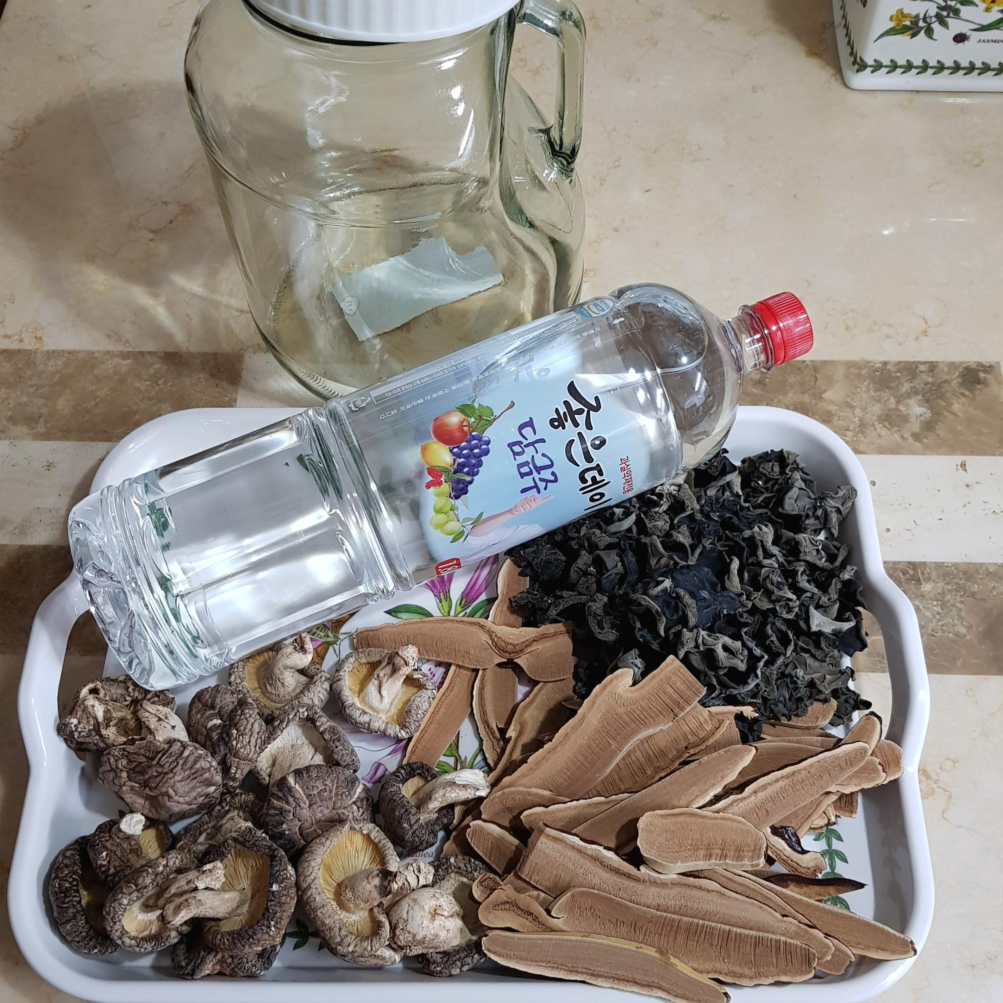 담금주용 술 2L, 말린 표고버섯, 영지버섯, 목이버섯 합쳐서 총 500g