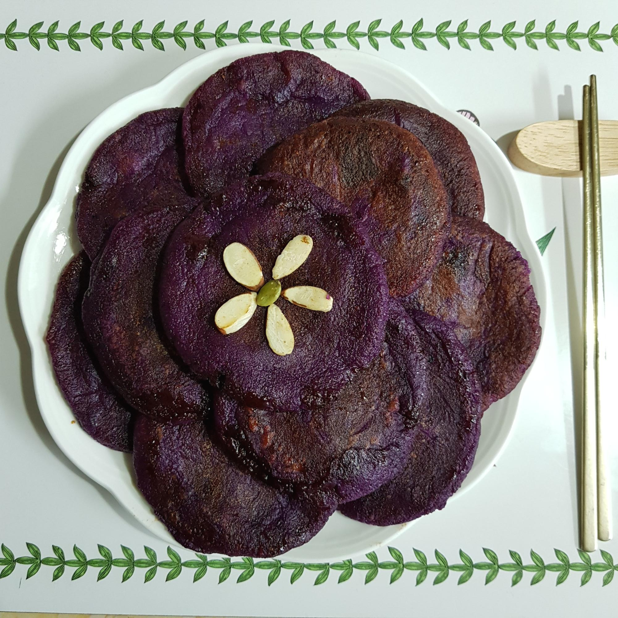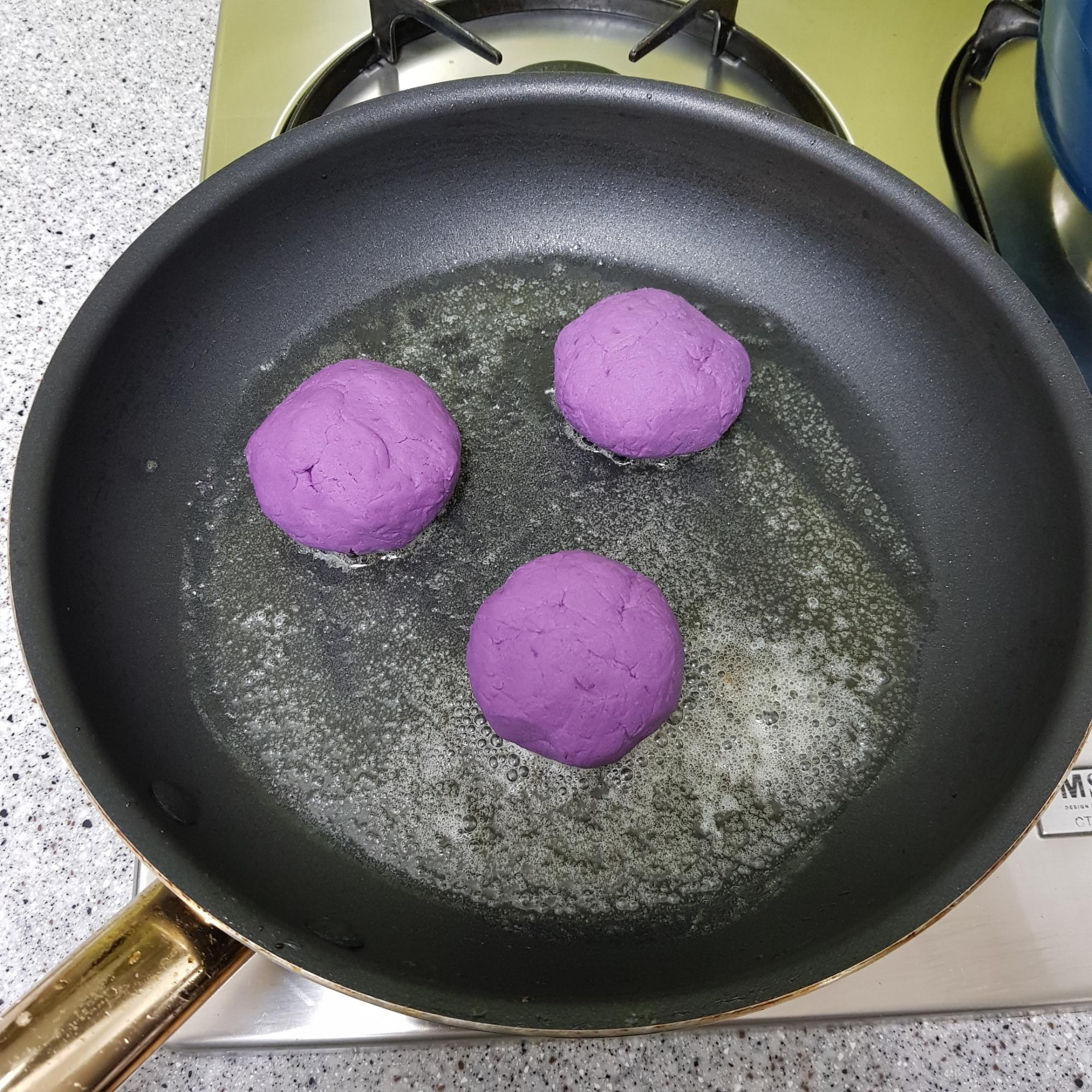 ▶ 자색고구마 호떡이 다 익으면 접시에 옮겨 담아주세요 찹쌀호떡 만드는 법 Part. 2 자색고구마 찹쌀호떡 완성입니다