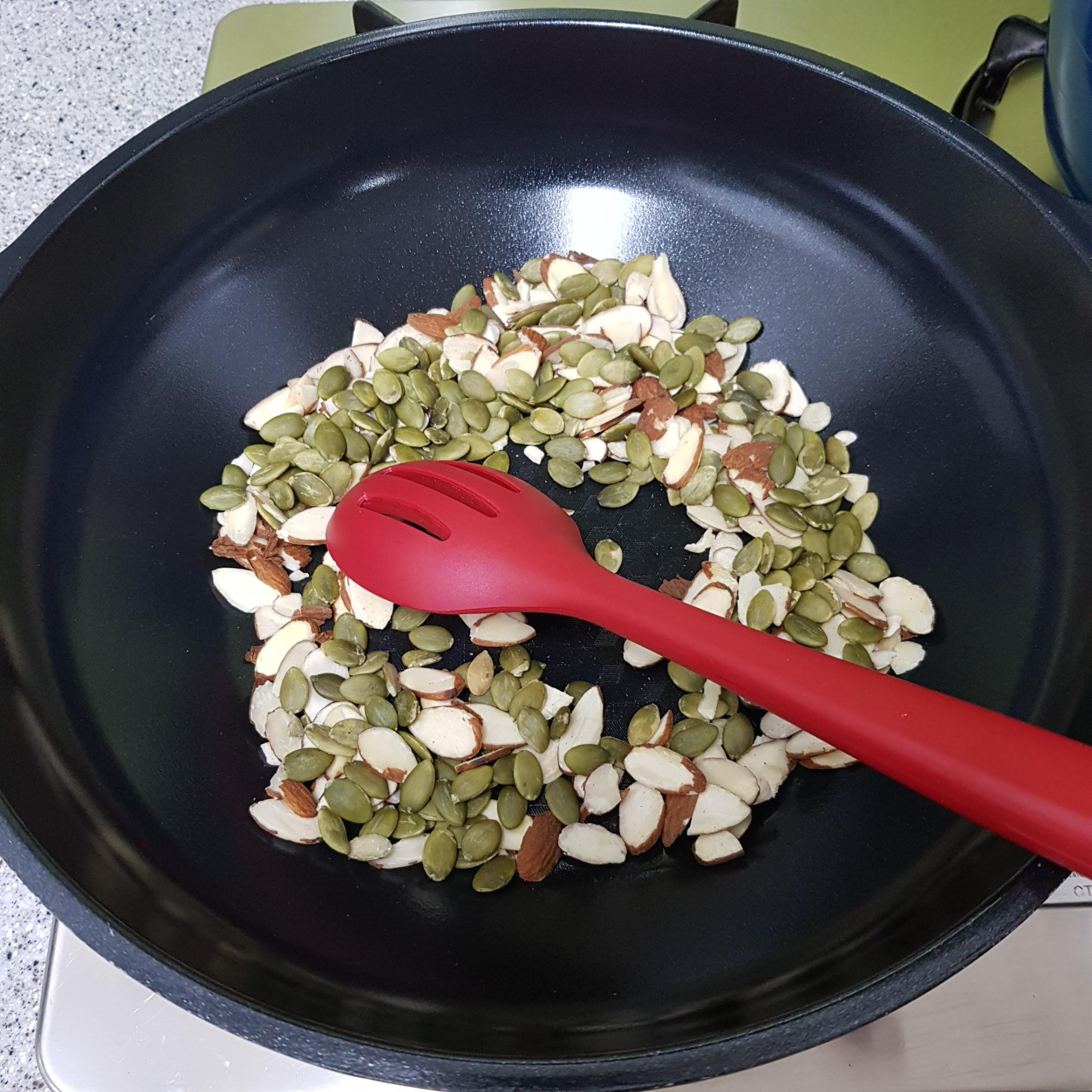 ▶ 예열된 팬에 기름 없이 호떡 속에 들어갈 견과류들을 살짝만 볶아주세요