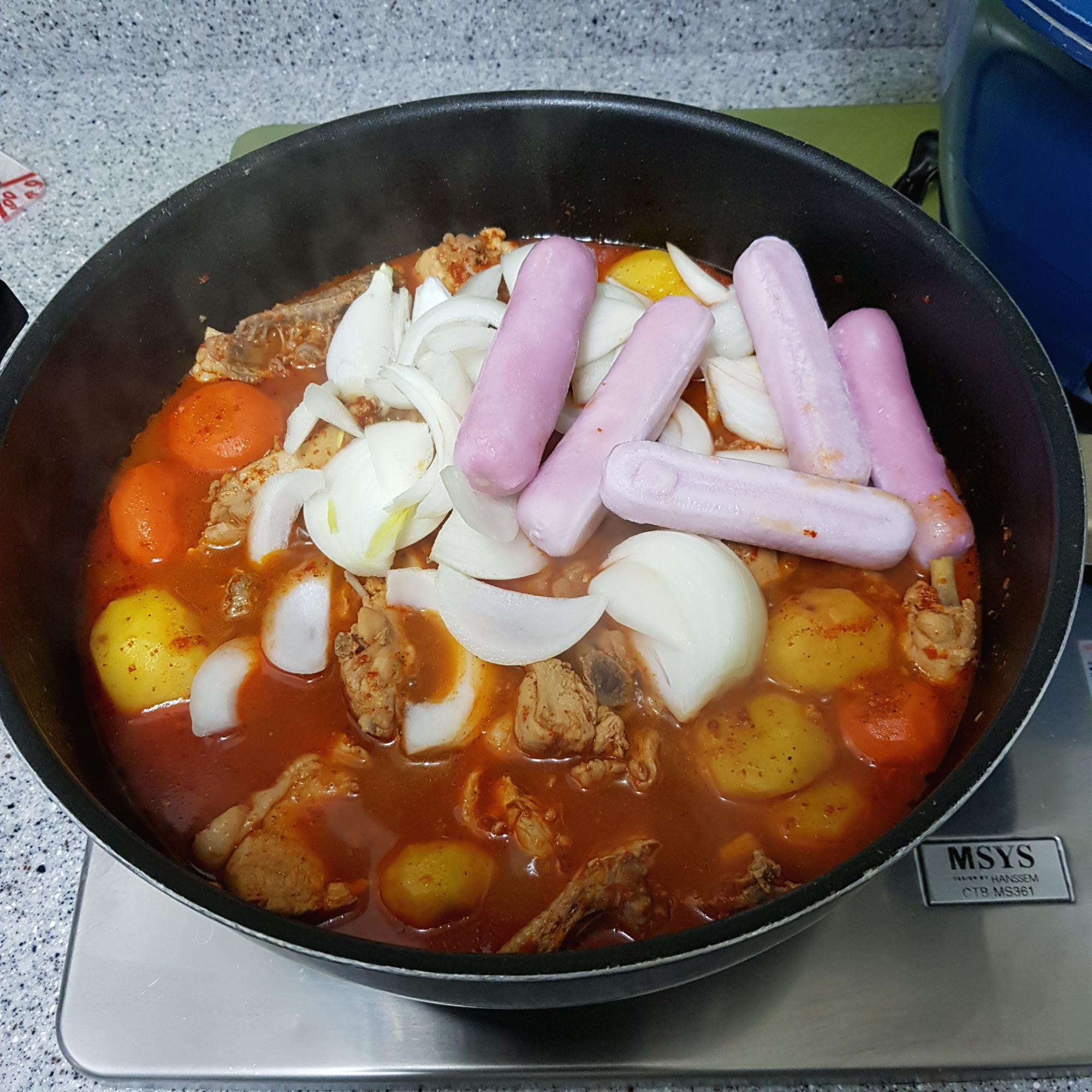 제주에 사는 아들이 생일이라고 집에 와서 아들 입맛에 맞춘 저녁을 준비해봤어요 평소에 치킨을 좋아하는 아들인데 치킨은 혼자 배달시켜 먹을 수 있고 닭볶음탕은 시켜먹기 쉽지 않은 것 같아서 제가 자주 해 먹었던 닭볶음탕 황금레시피 알토란 닭볶음탕 직접 만들어줬어요 평소 매운 음식을 좋아해 부재료를 추가하여서 매콤하게 만들어봤어요