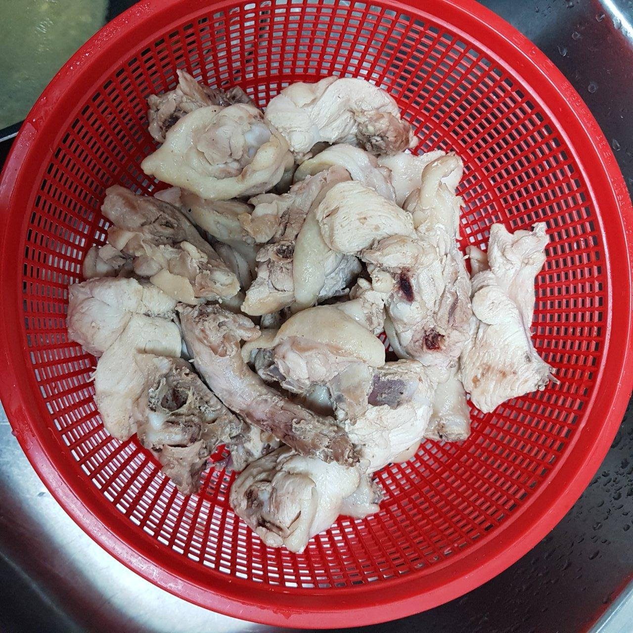 ▶ 닭 1.2kg는 28조각을 내고 뼈에 붙은 기름내장을 떼어내 주세요 깨끗이 씻은 후 물기를 빼고 준비해주세요