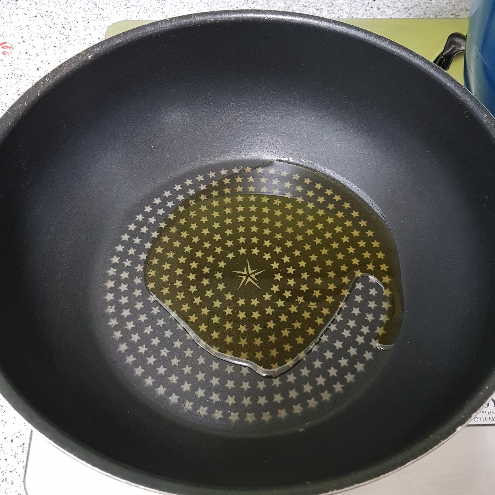 ▶ 팬에 참기름을 3큰술 넣어주세요 참기름은 타기 쉬우므로 팬을 달구지 않고 넣는 것이 좋아요