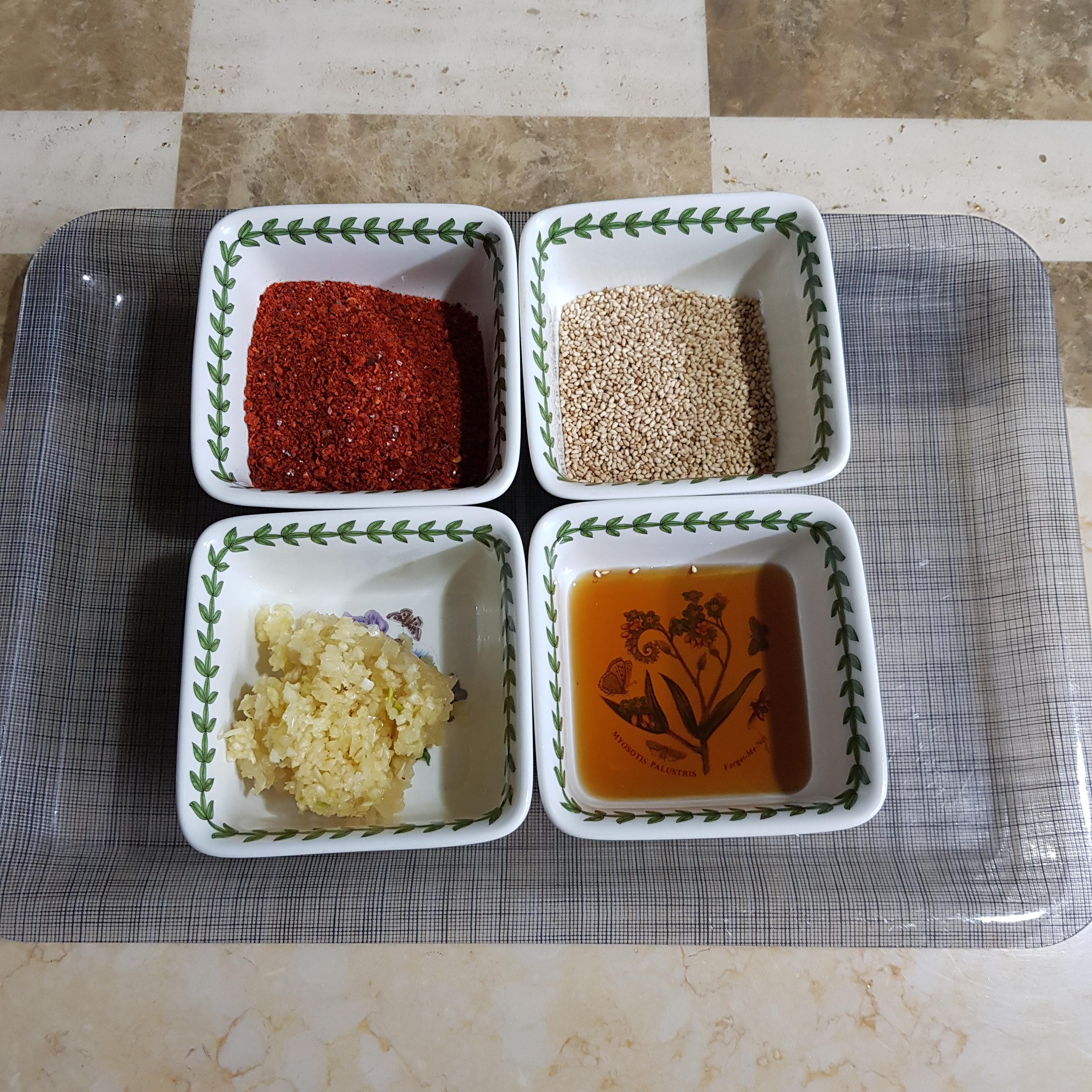 고춧가루 5큰술, 통깨 2큰술, 다진마늘 2큰술, 멸치액젓 5큰술