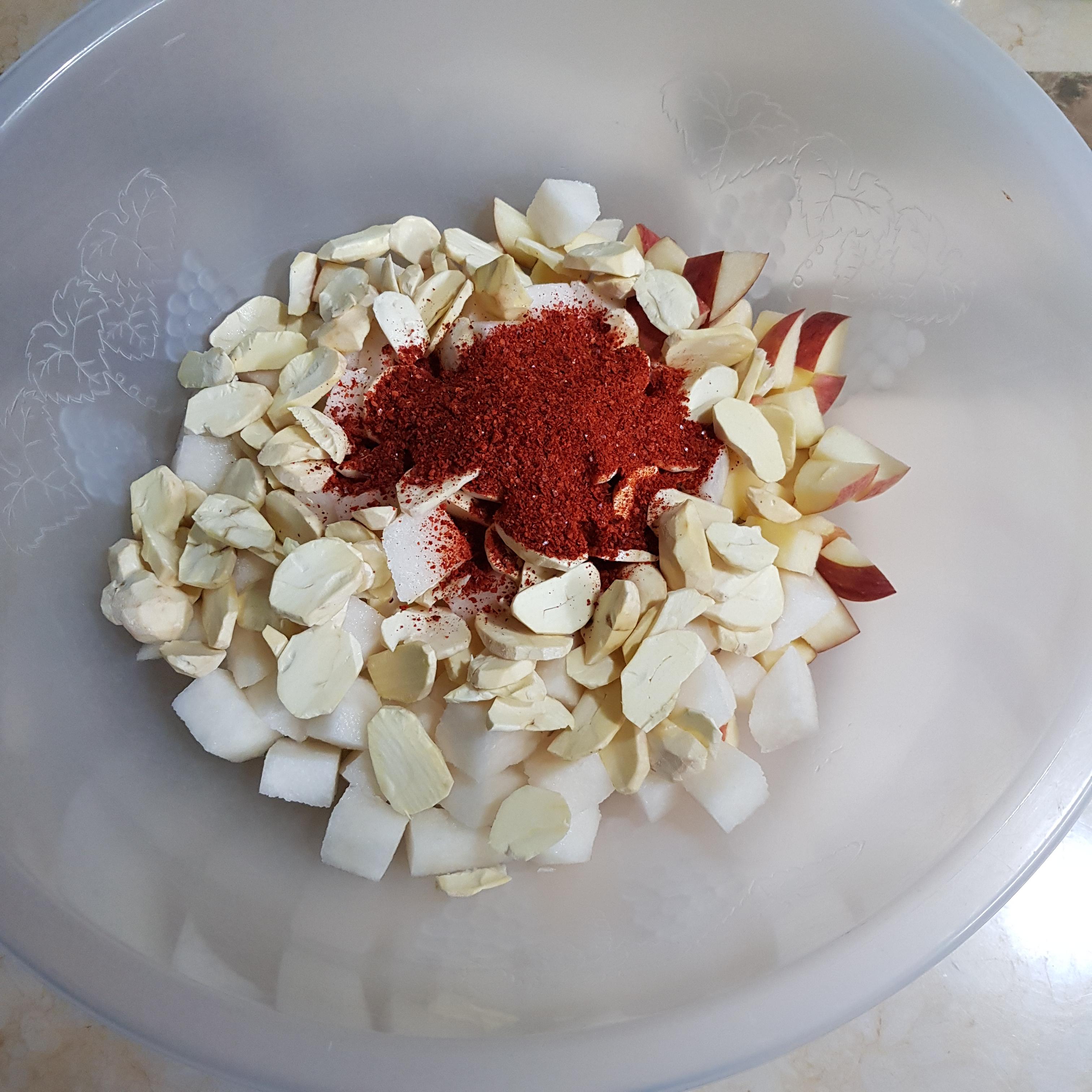 ▶ 사과는 깨끗히 씻은 후 씨만 제거하고 껍질째 깍둑썰기 하여 준비해주세요