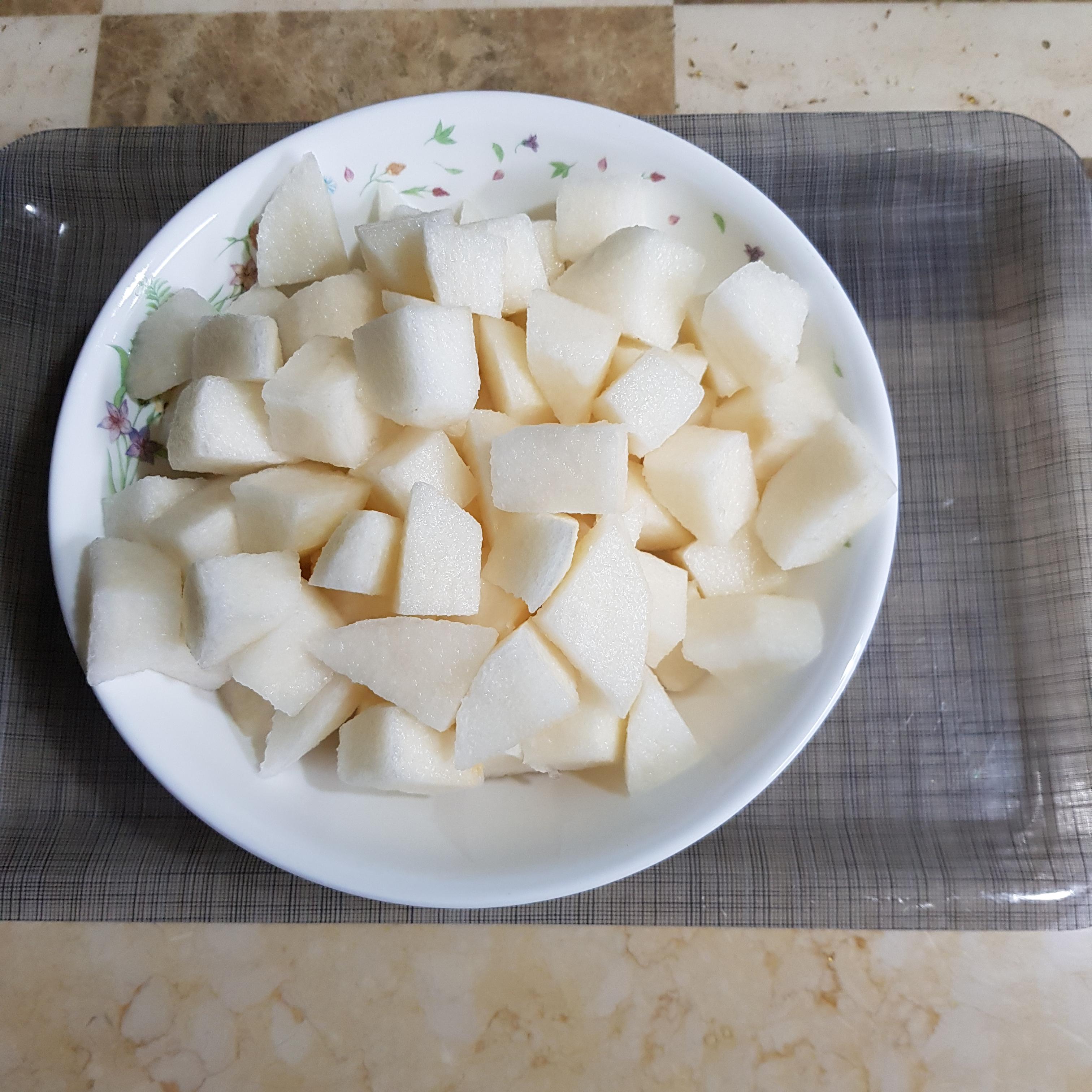 ▶ 배 2개는 껍질을 벗겨 씨를 제거한 후 깍둑썰기 하여 준비해주세요