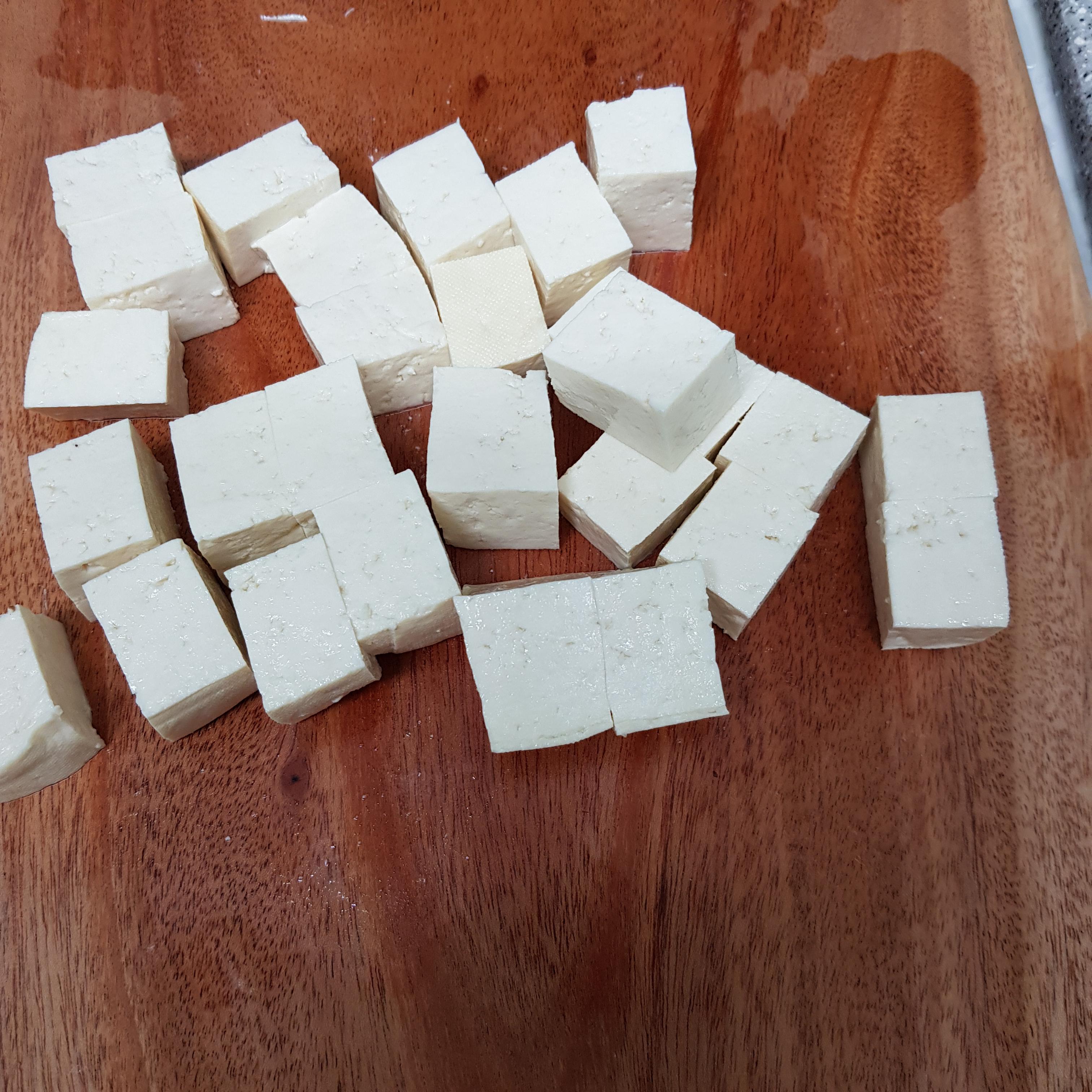 ▶ 두부는 깍둑썰기해주세요 모든 부재료는 비슷한 모양으로 썰어서 준비해주시는 게 좋습니다