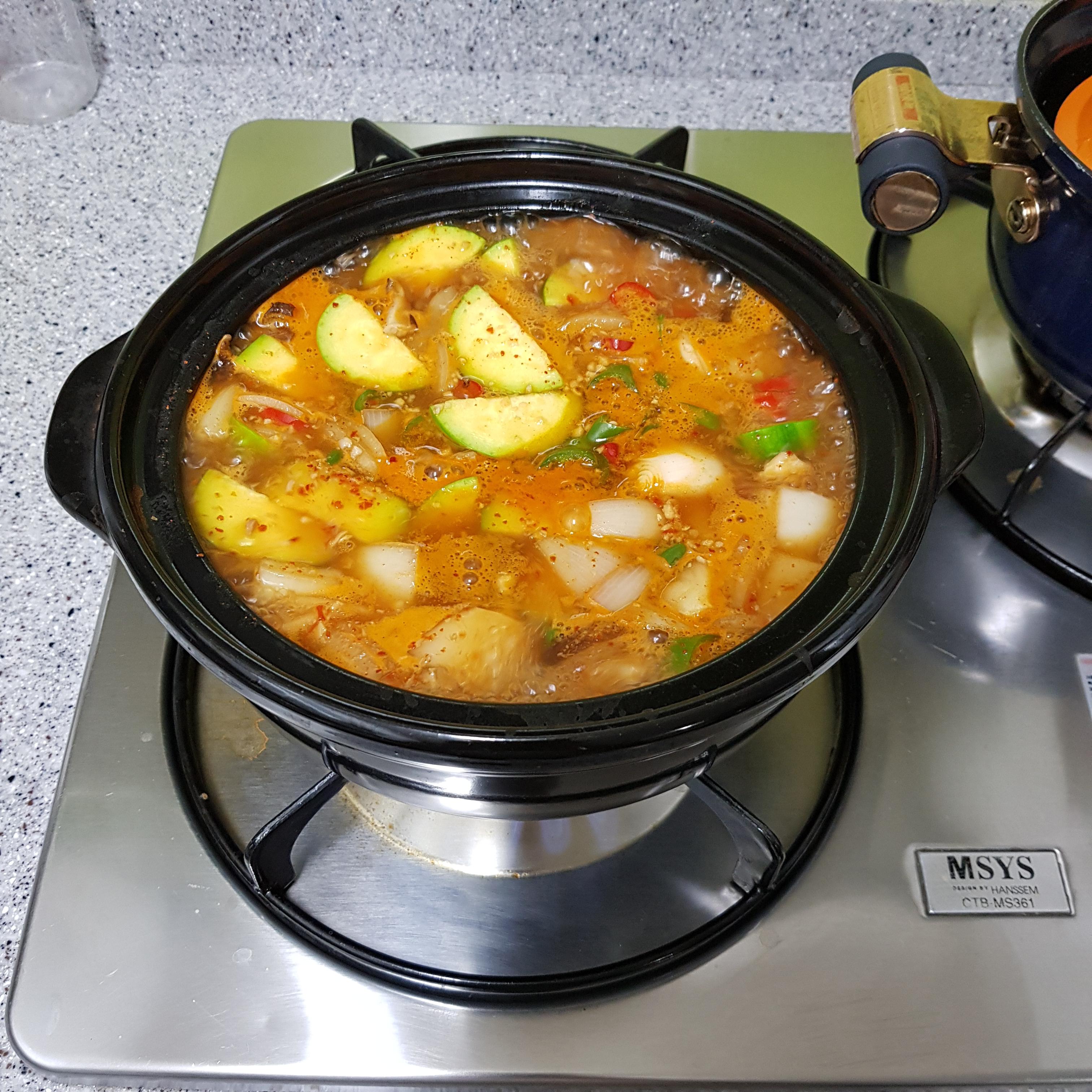 부재료 손질이 끝났으니 이제 본격적으로 김수미 된장찌개 끓여보도록 하겠습니다
