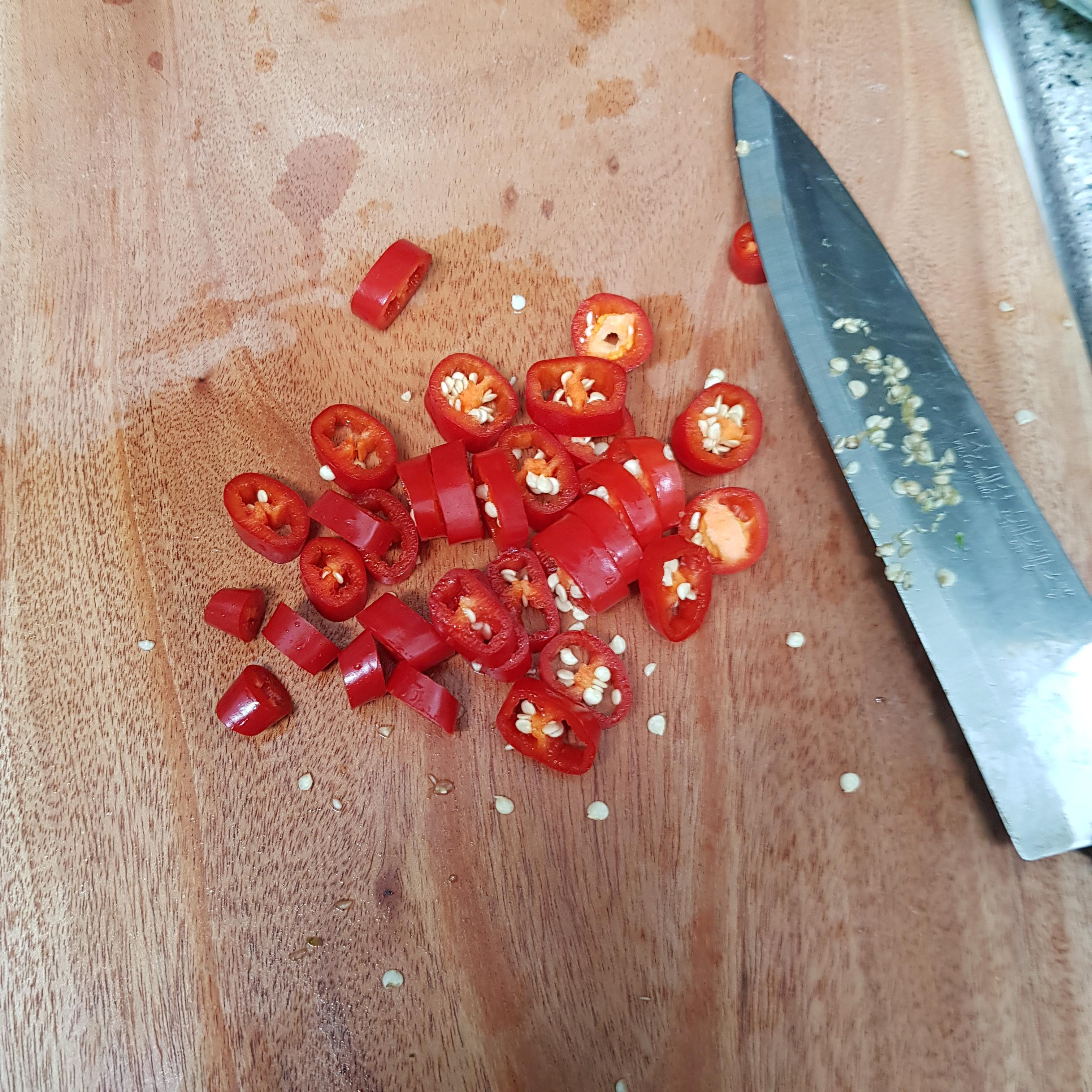 ▶ 반으로 자른 고추는 칼 끝으로 고추씨를 제거해주고 고추 태자(고추 중간에 있는 심)는 그대로 두셔도 됩니다