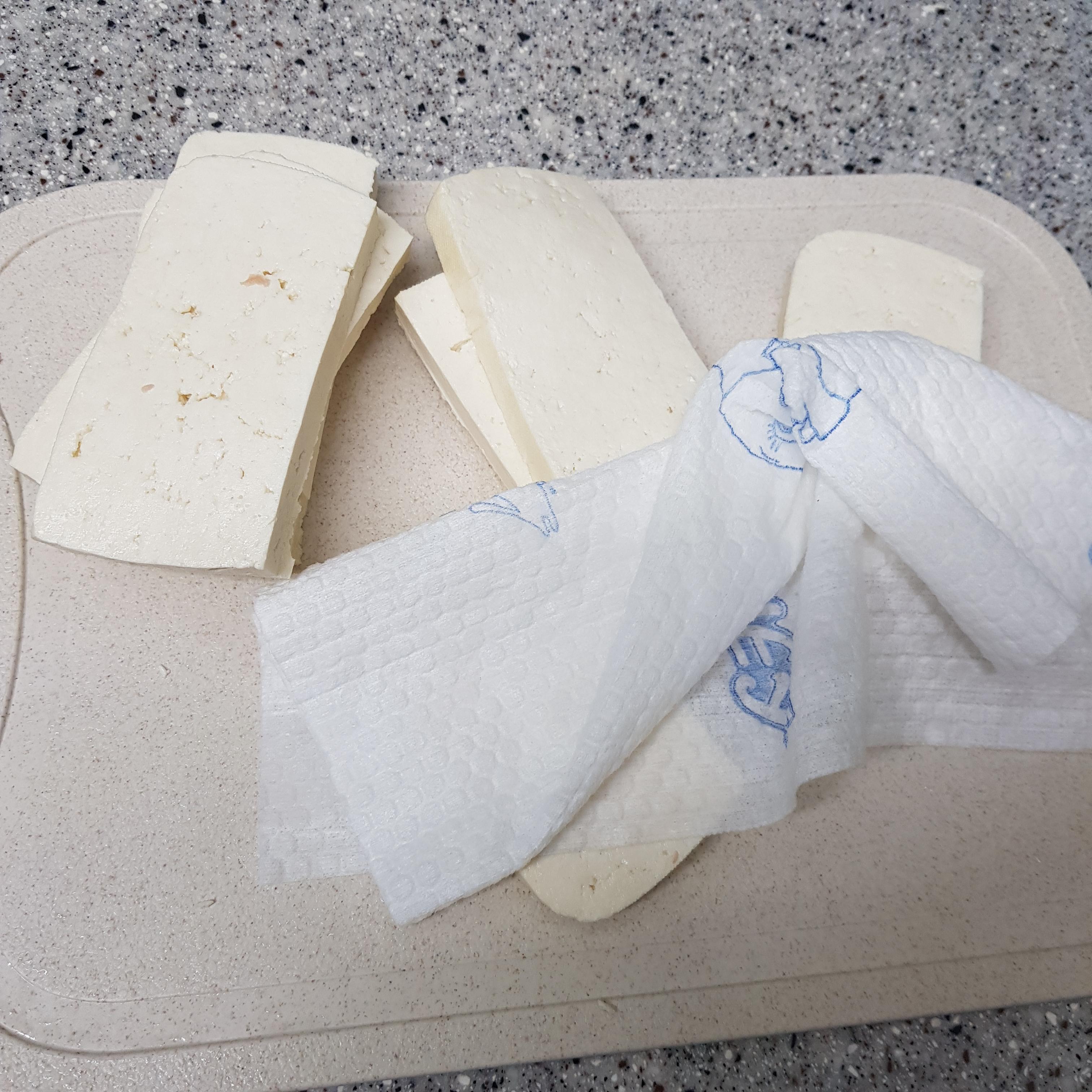 ▶ 두부는 10등분 하여 잘라준 후 키친타월을 이용해 물기를 제거해주세요