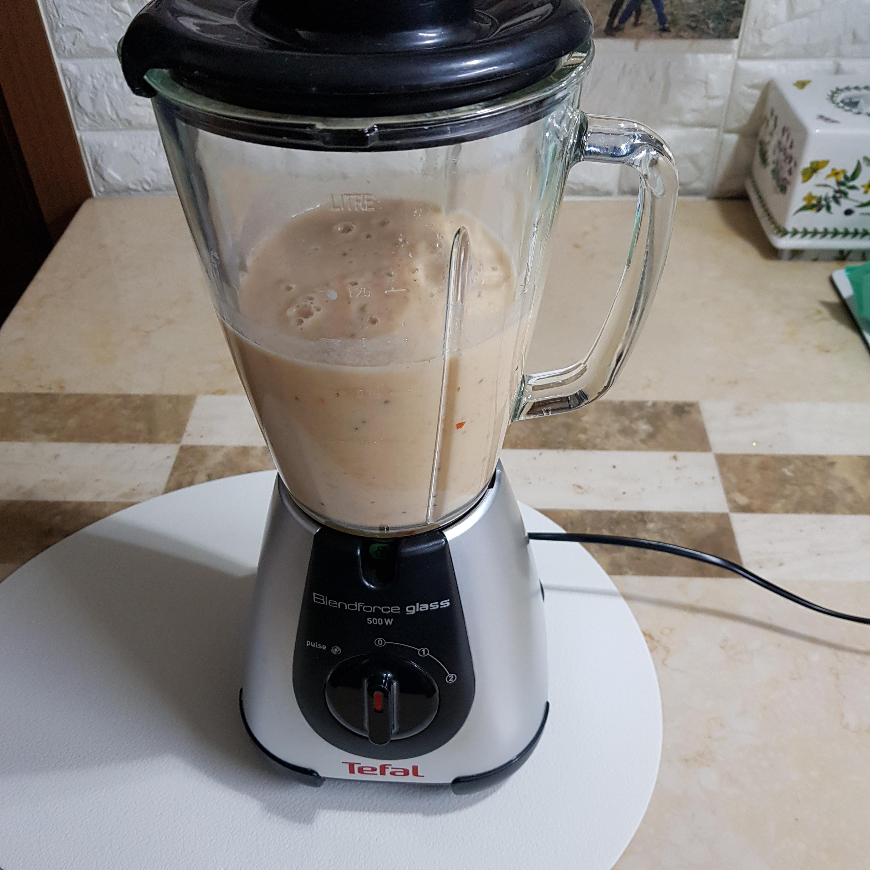 ▶ 과일 오픈 샌드위치 만들고 남은 과일은 몽땅 믹서기에 넣고 우유 1컵 부어 갈아주었어요^^