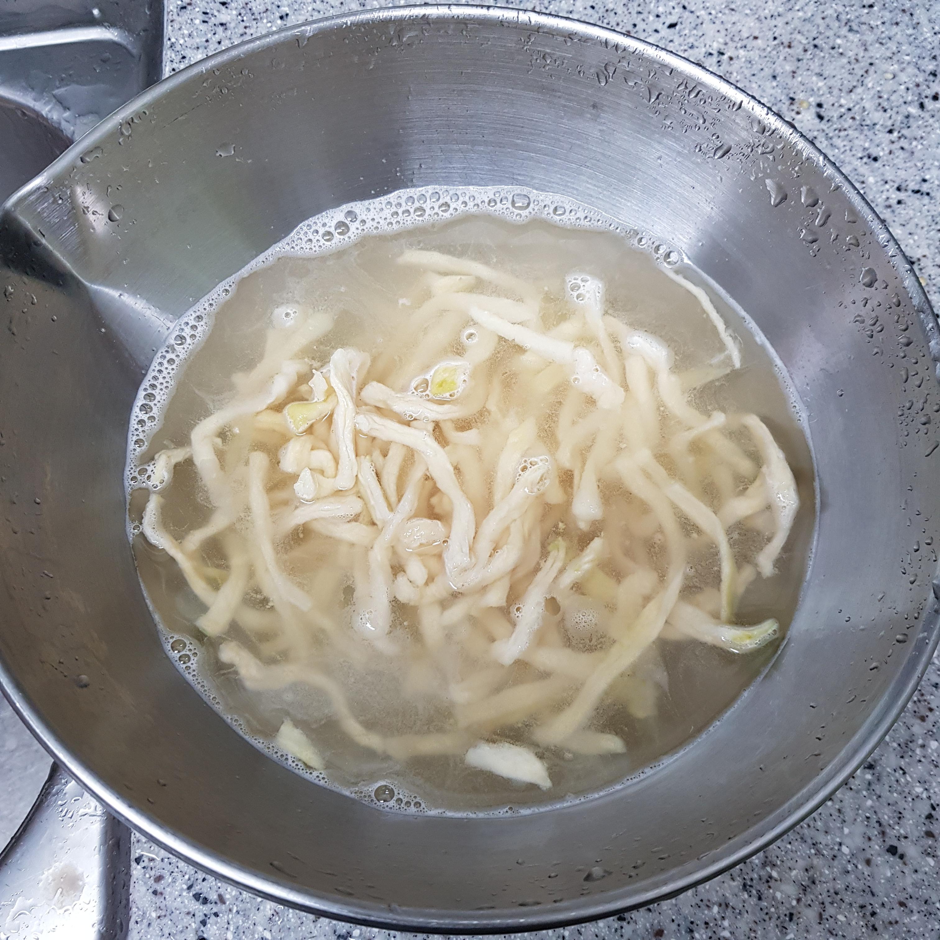 ▶ 미지근한 물에 불려 놓았던 무말랭이는 조물조물 씻어 헹군 후 물기를 짜주세요