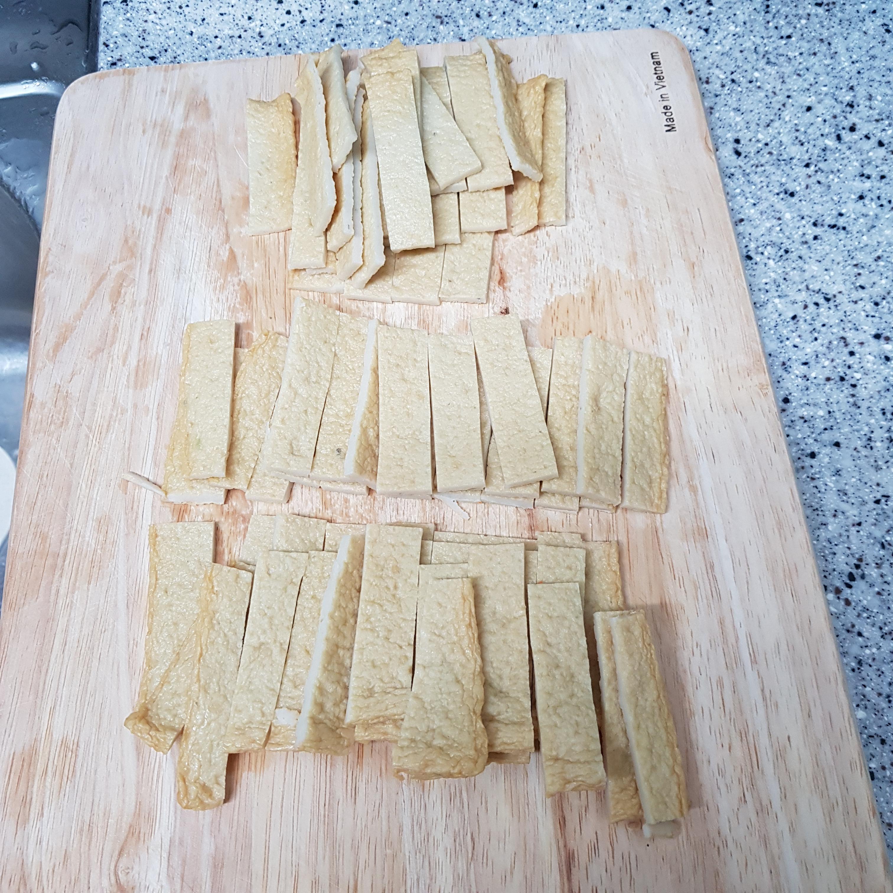 ▶ 어묵은 1cm 정도 두께로 썰은 후 3등분하여 썰어주세요 어묵은 드시기 좋은 사이즈로 썰어주시면 됩니다