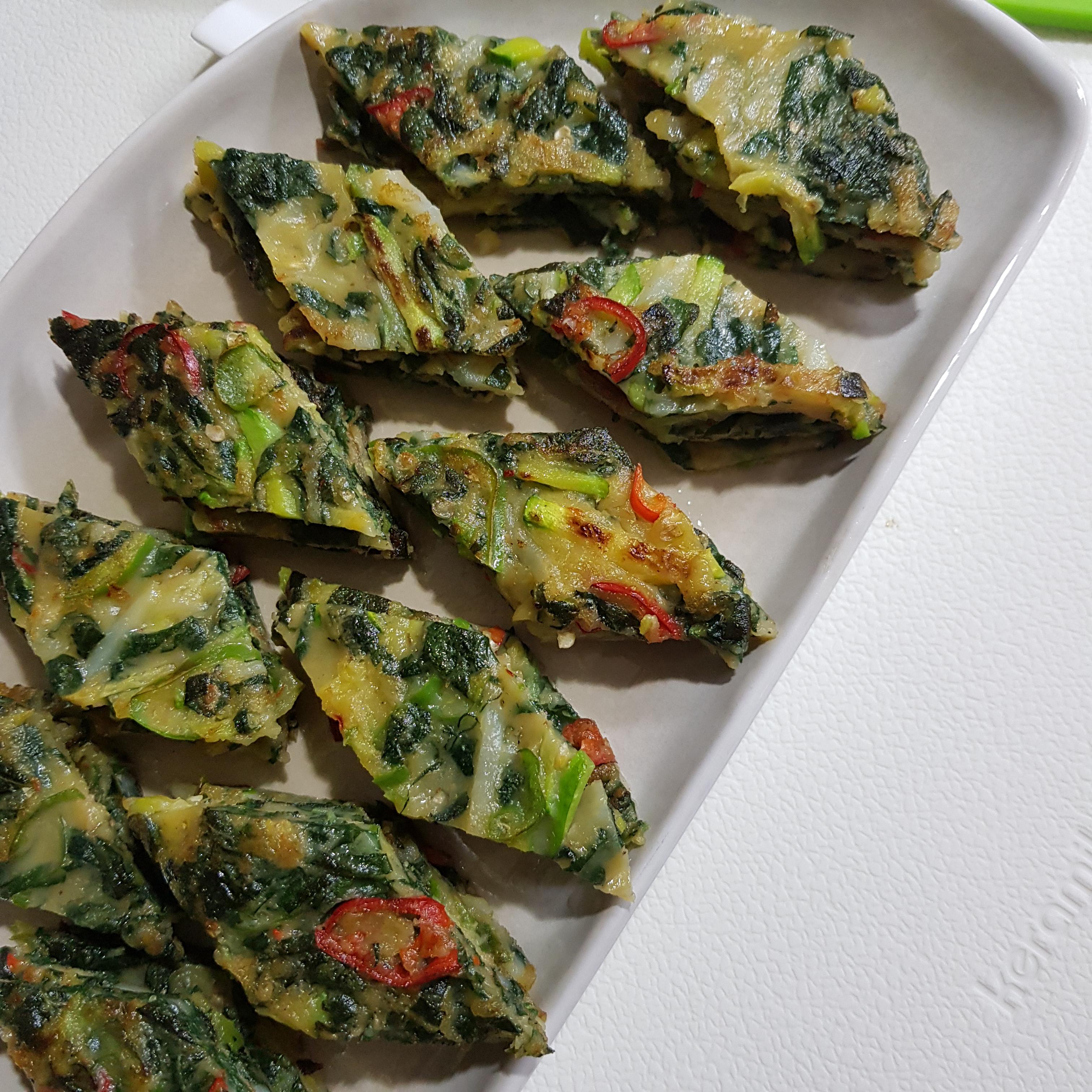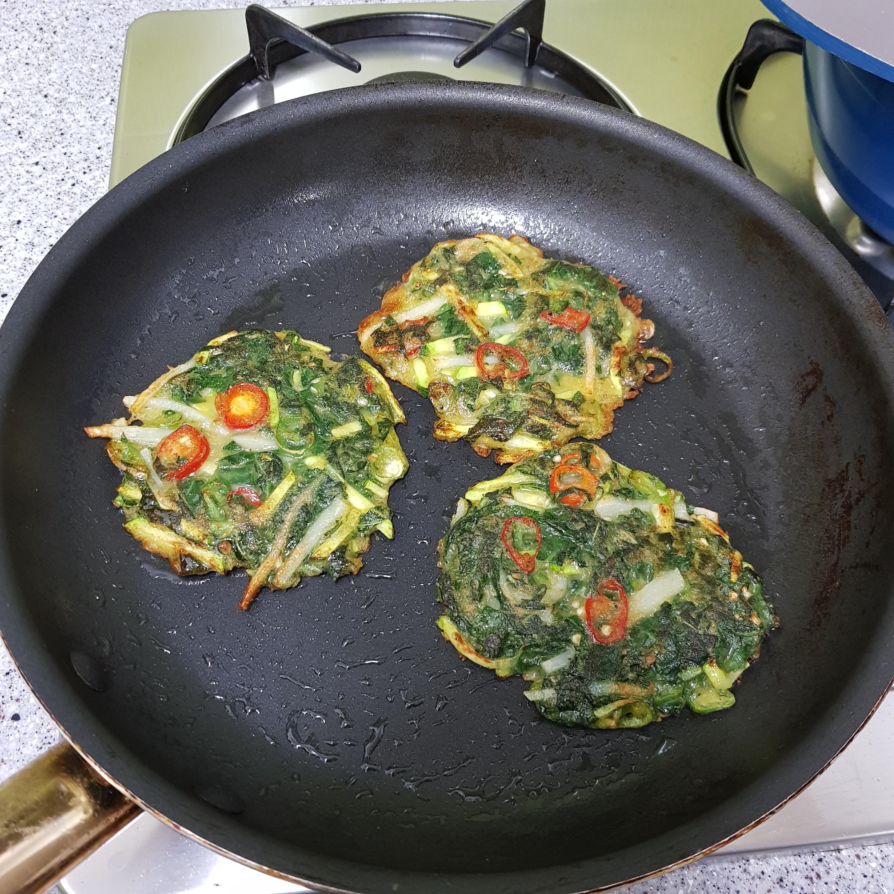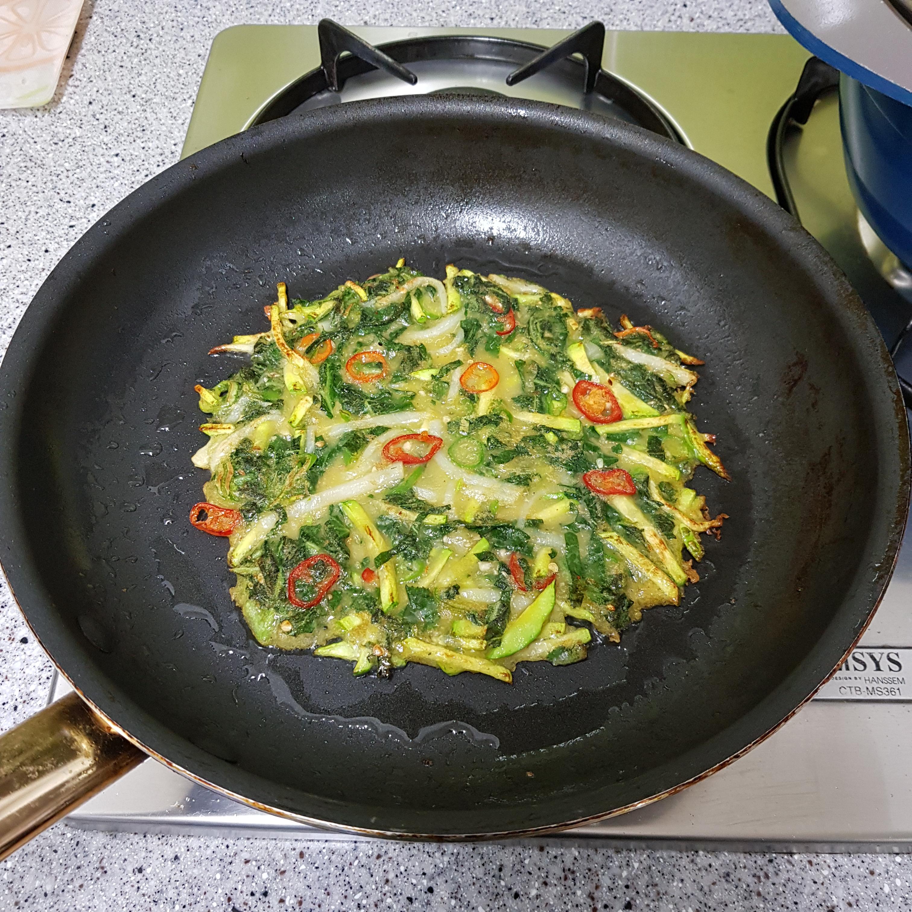 ▶ 최소한의 부침가루를 넣어 반죽을 적게 올려 부치니 뒤집기가 쉽네요 참고해주세요