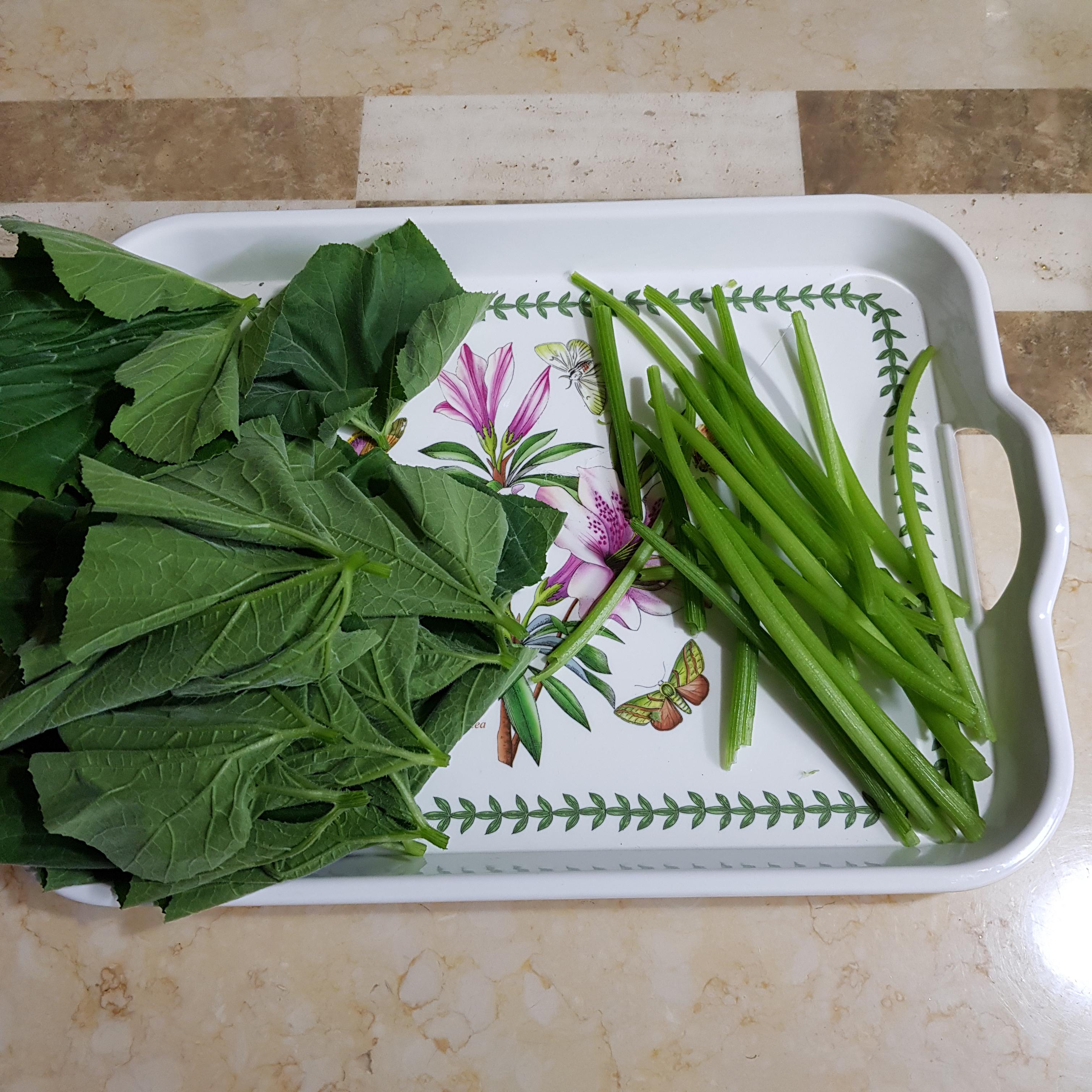 ▶ 구입한 애호박 잎은 부드러운 것과 억센 것을 구분해 부드러운 것은 호박잎전으로 억센 것은 국 끓이는데 사용할거랍니다 참고해주세요