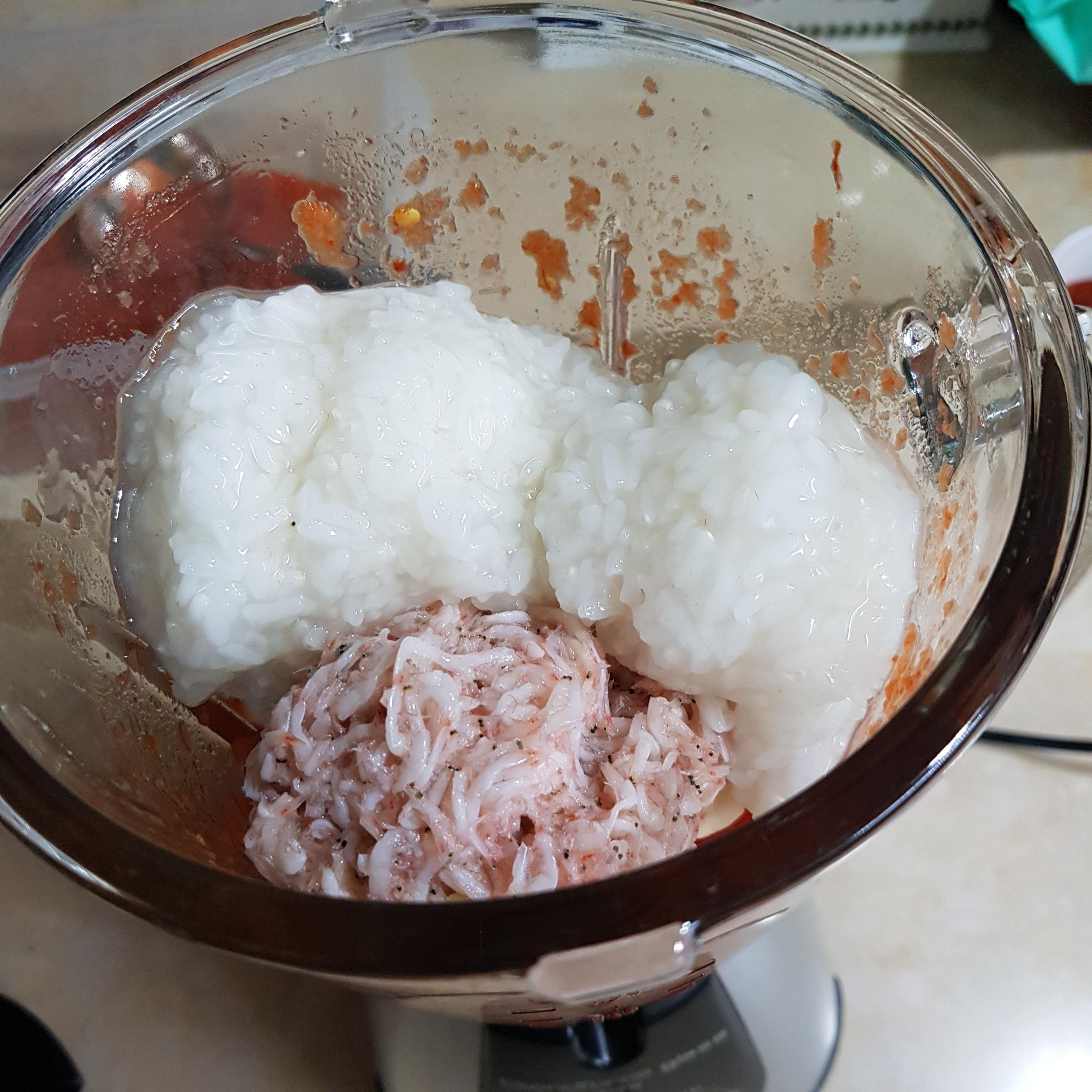 ▶ 갈아준 후 새우젓 1컵과 찹쌀 풀국 1컵 반을 넣어 갈아준 후 양념 만들 통에 옮겨 담아주세요