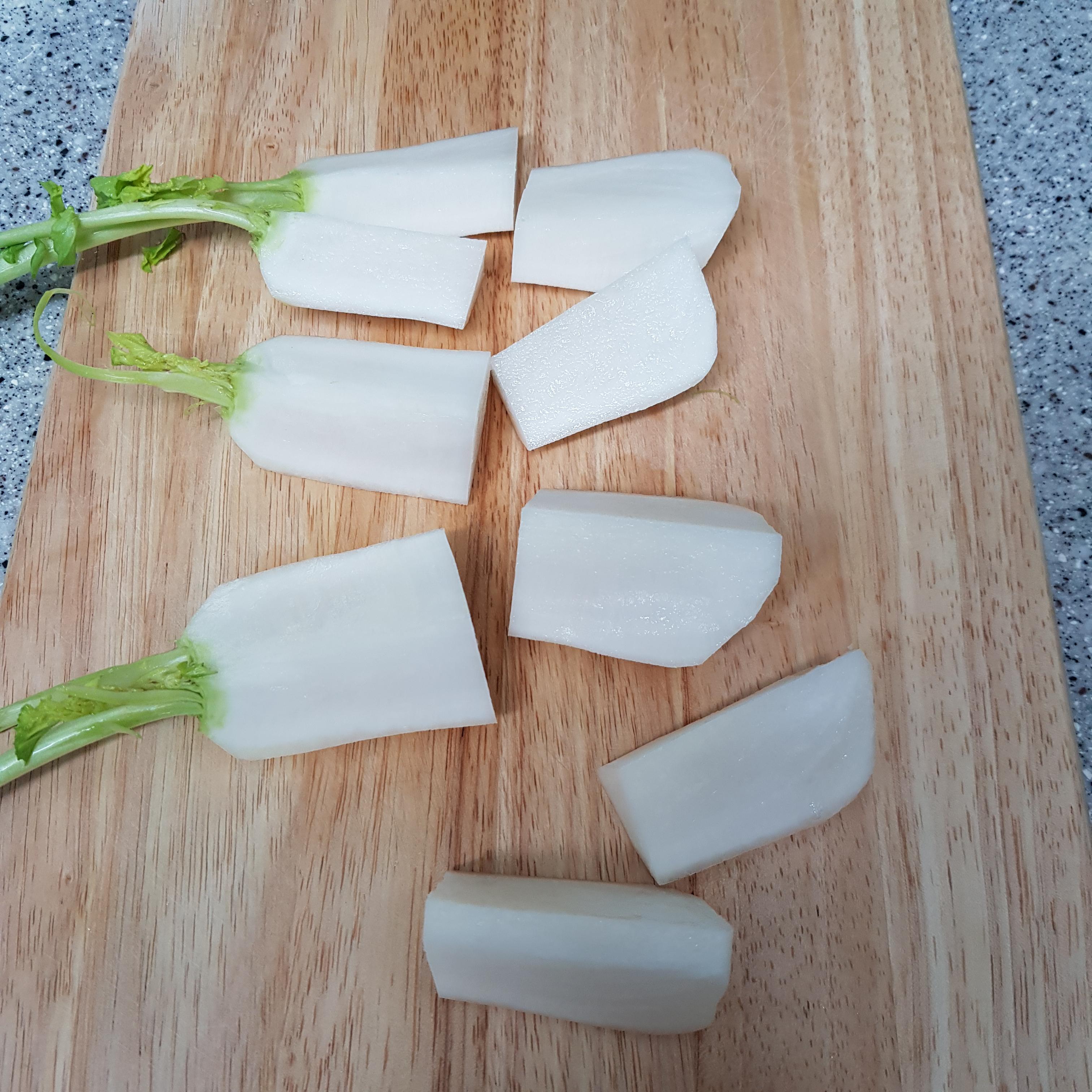 ▶ 사진을 참고하여 총각김치 만드는 법 재료를 준비해주세요