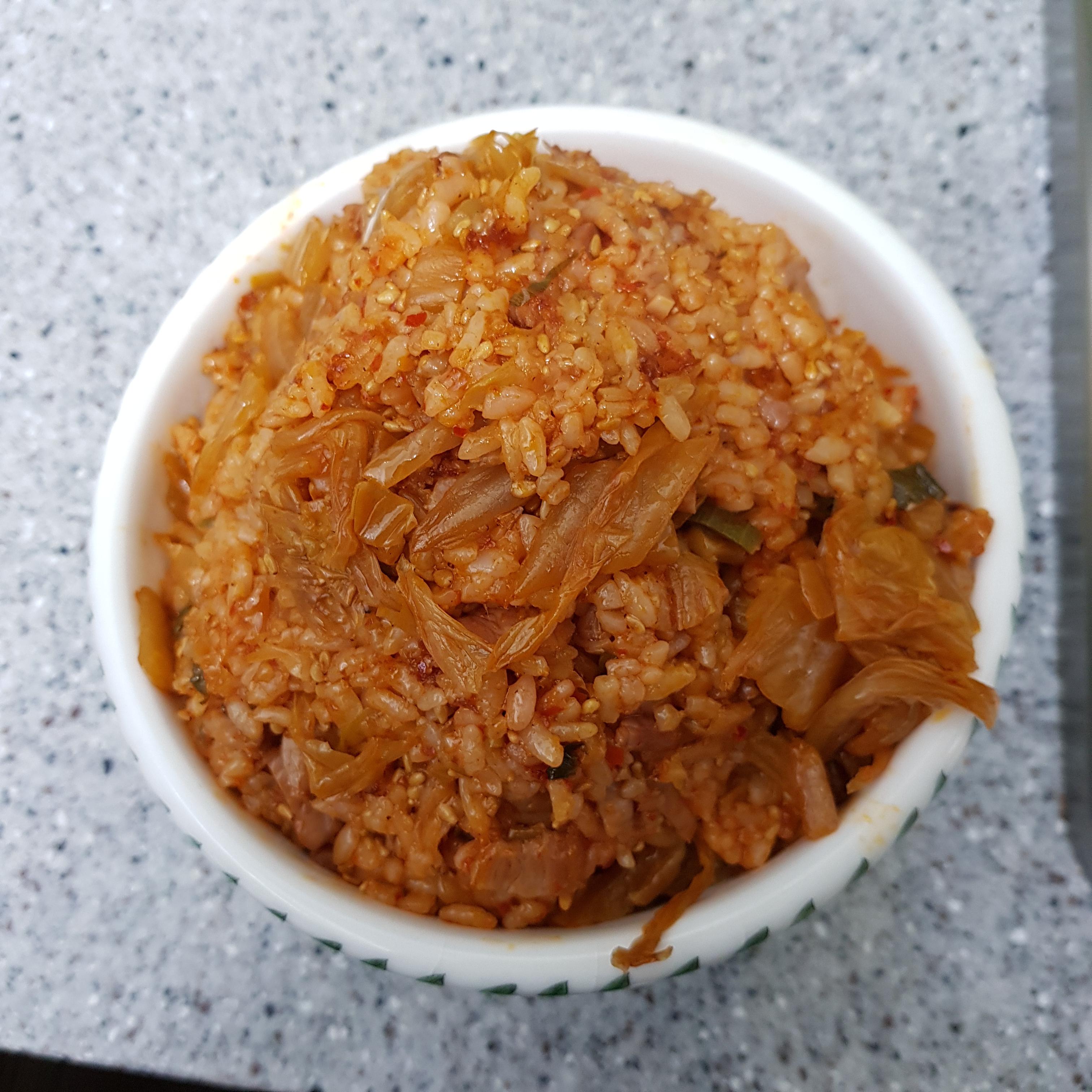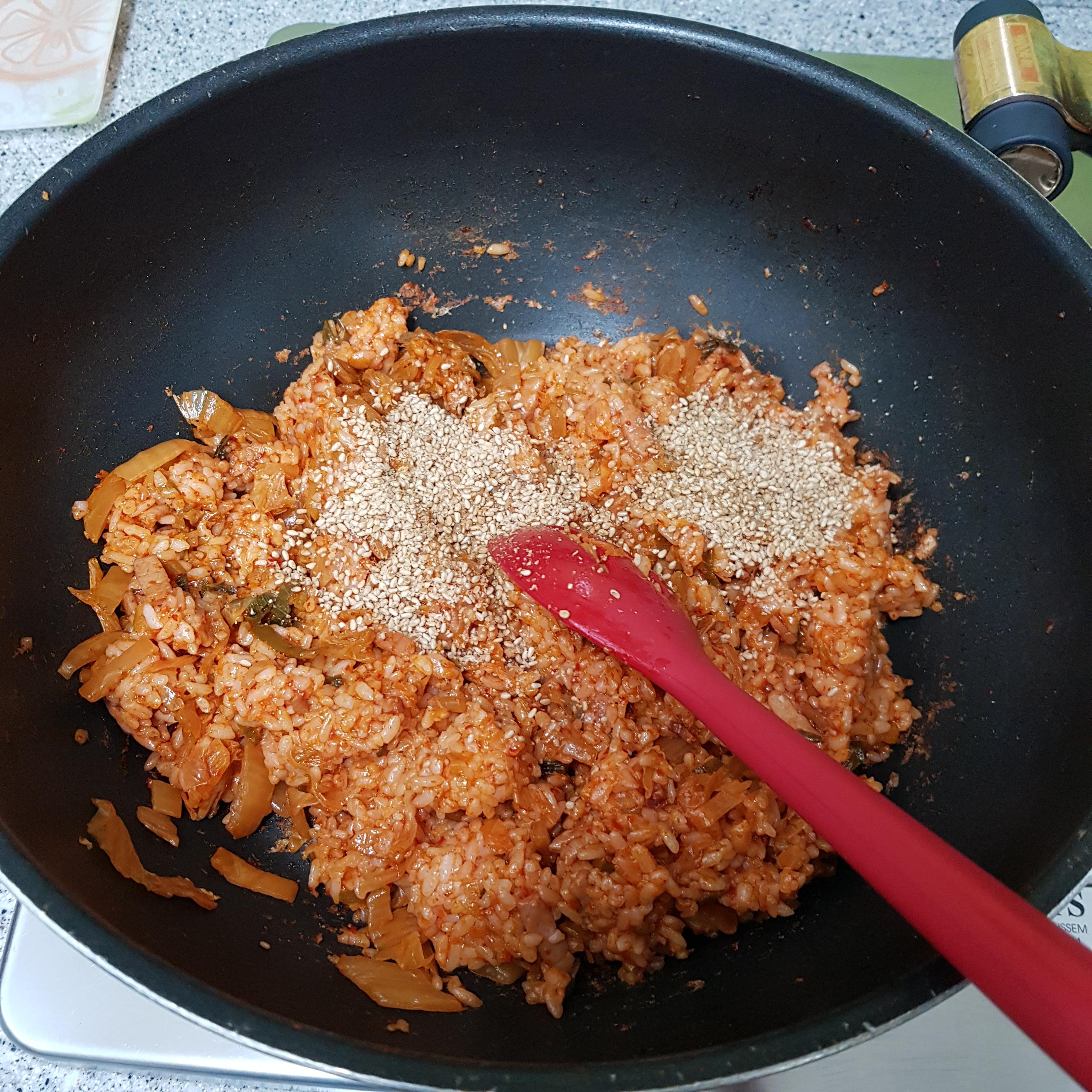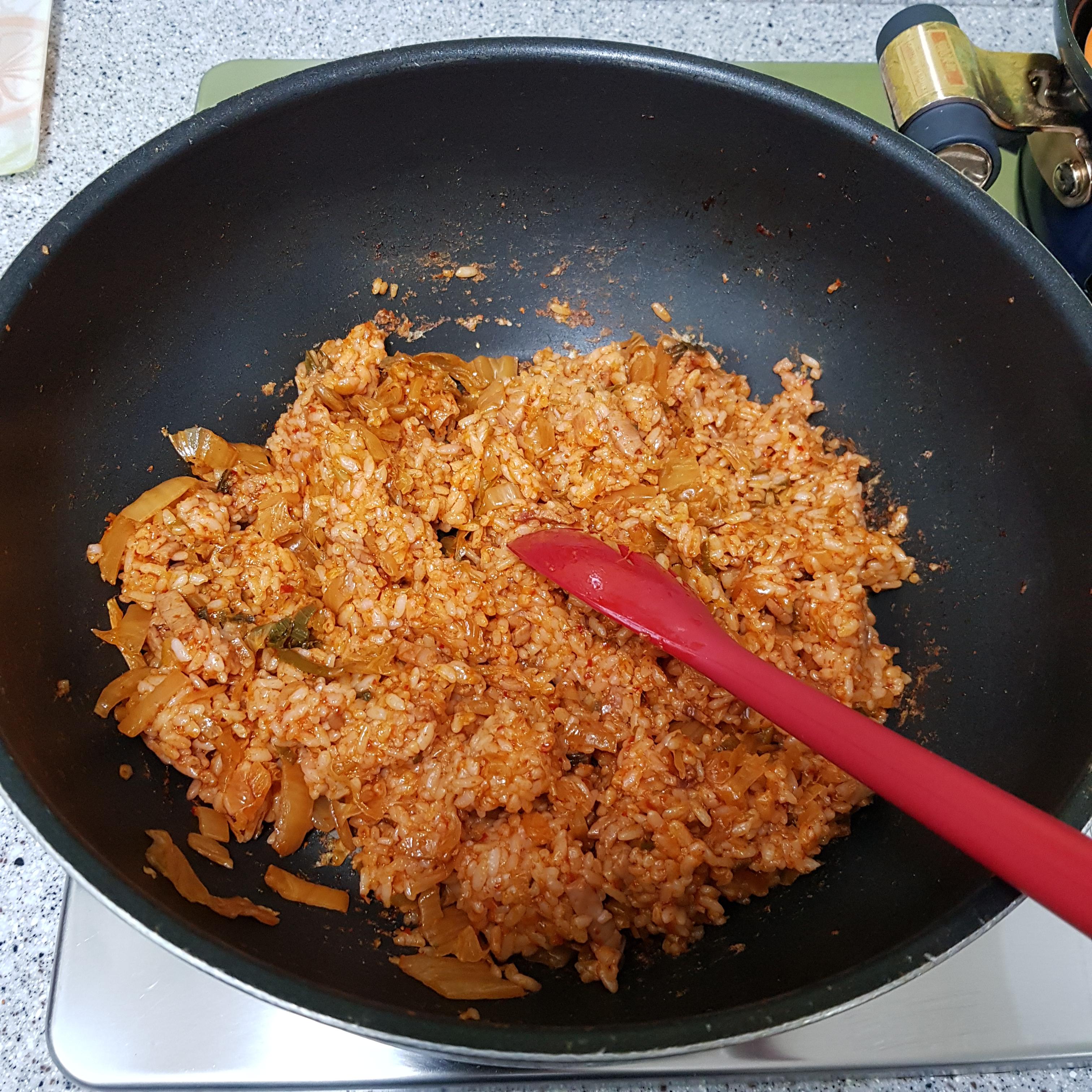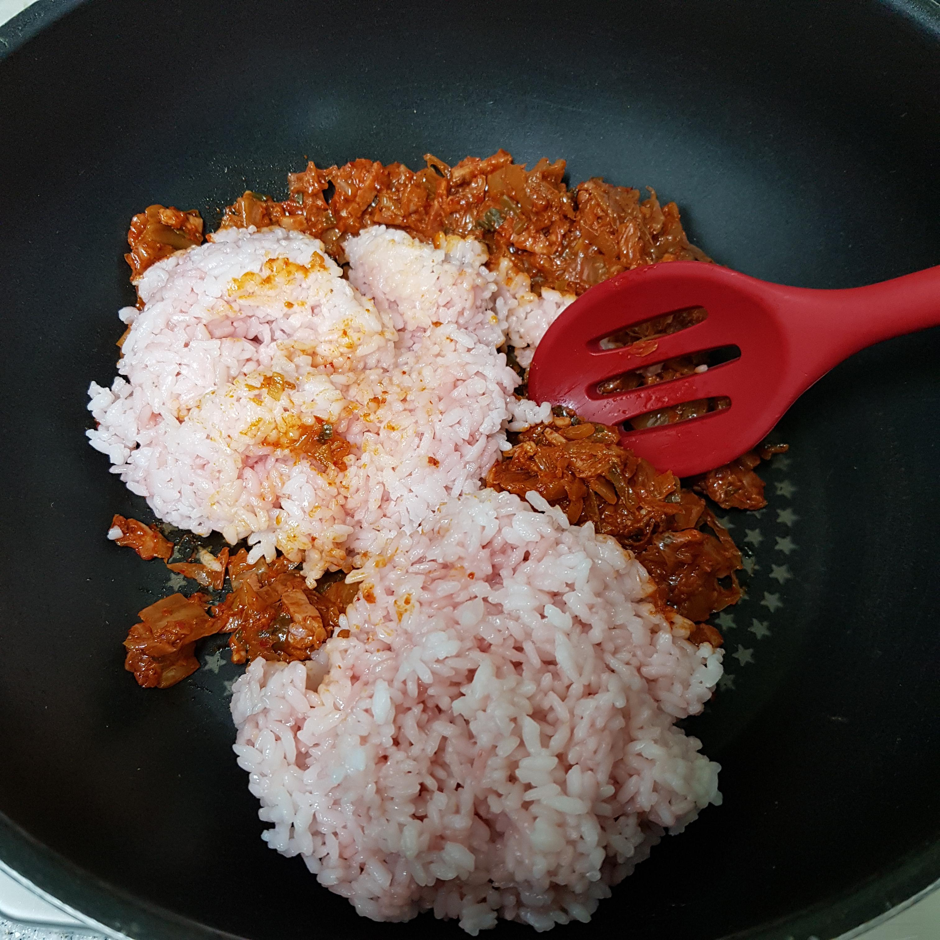 ▶ 미리 볶아 준비한 백종원 김치볶음을 넣고 밥 2공기 넣어주세요