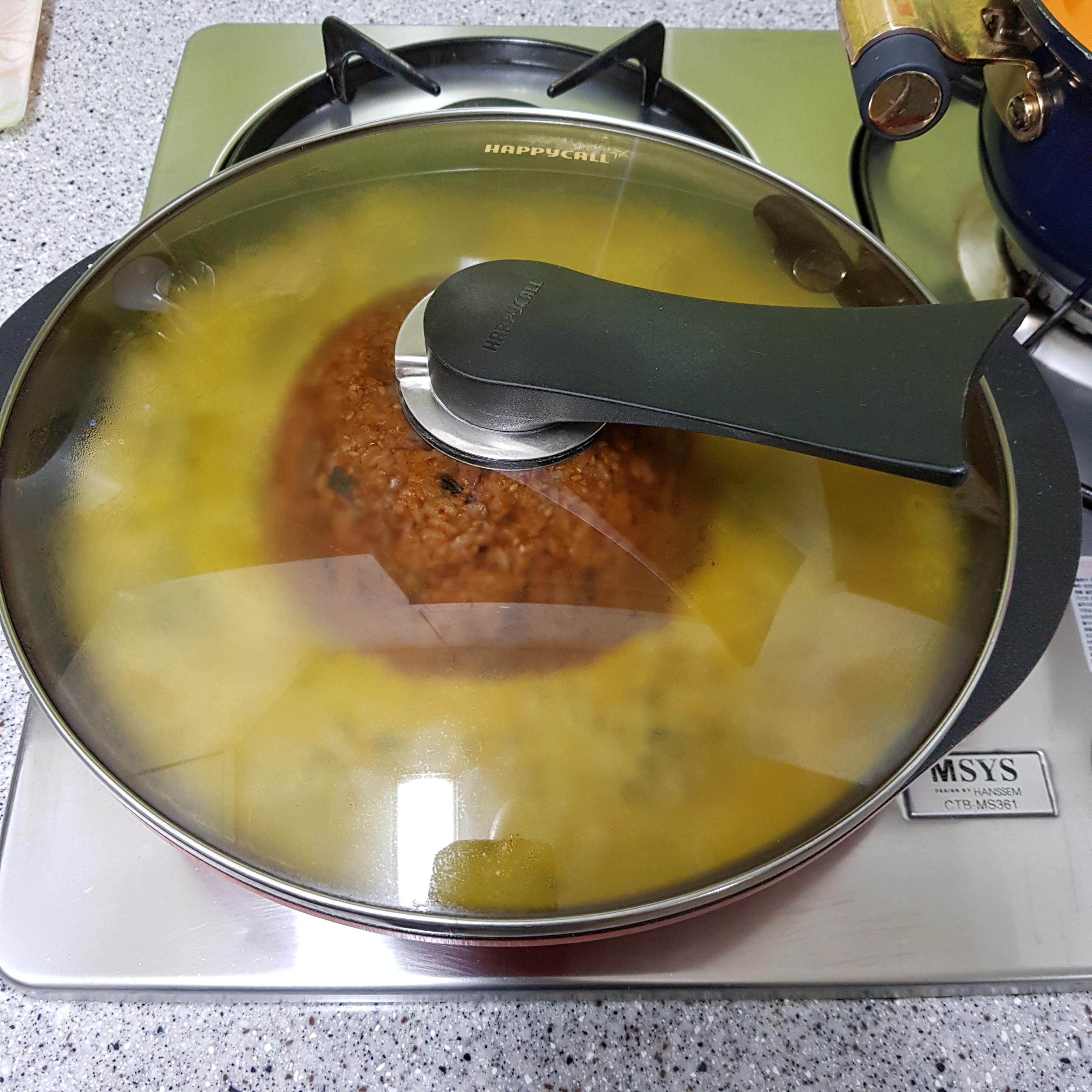 ▶ 계란이 잘 익도록 뚜껑을 덮어주고 계란에 치즈가 녹으면 백종원 김치볶음밥 완성입니다^^