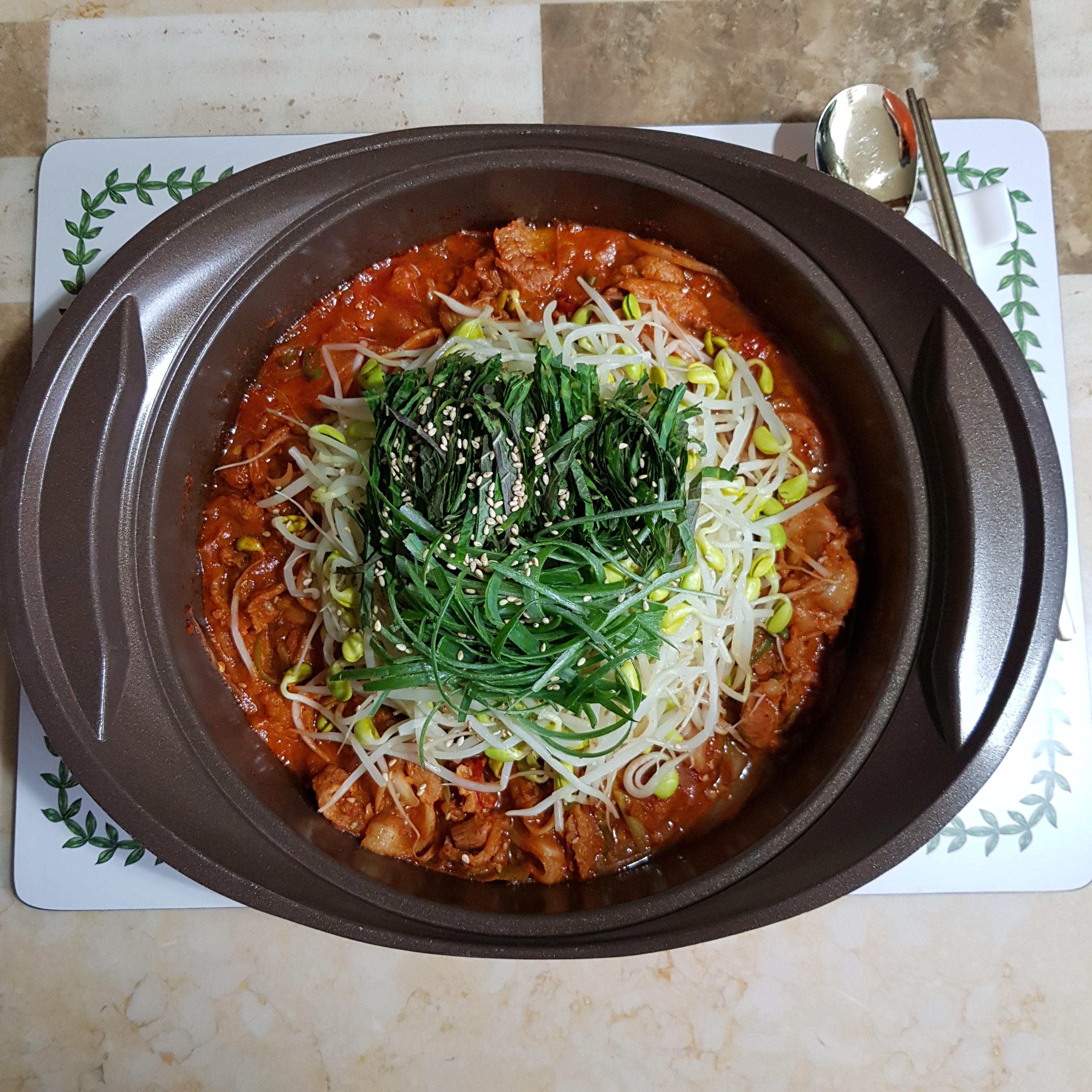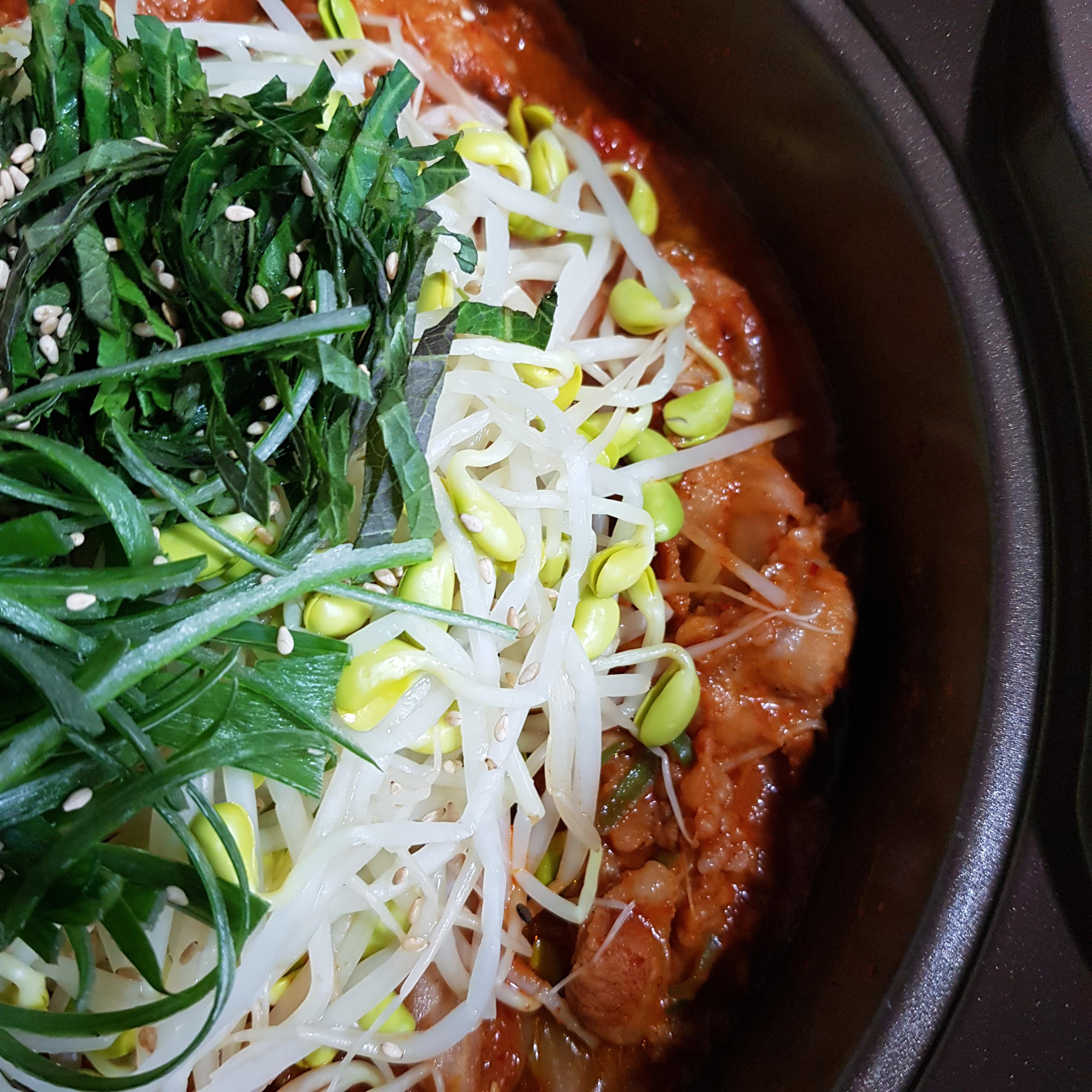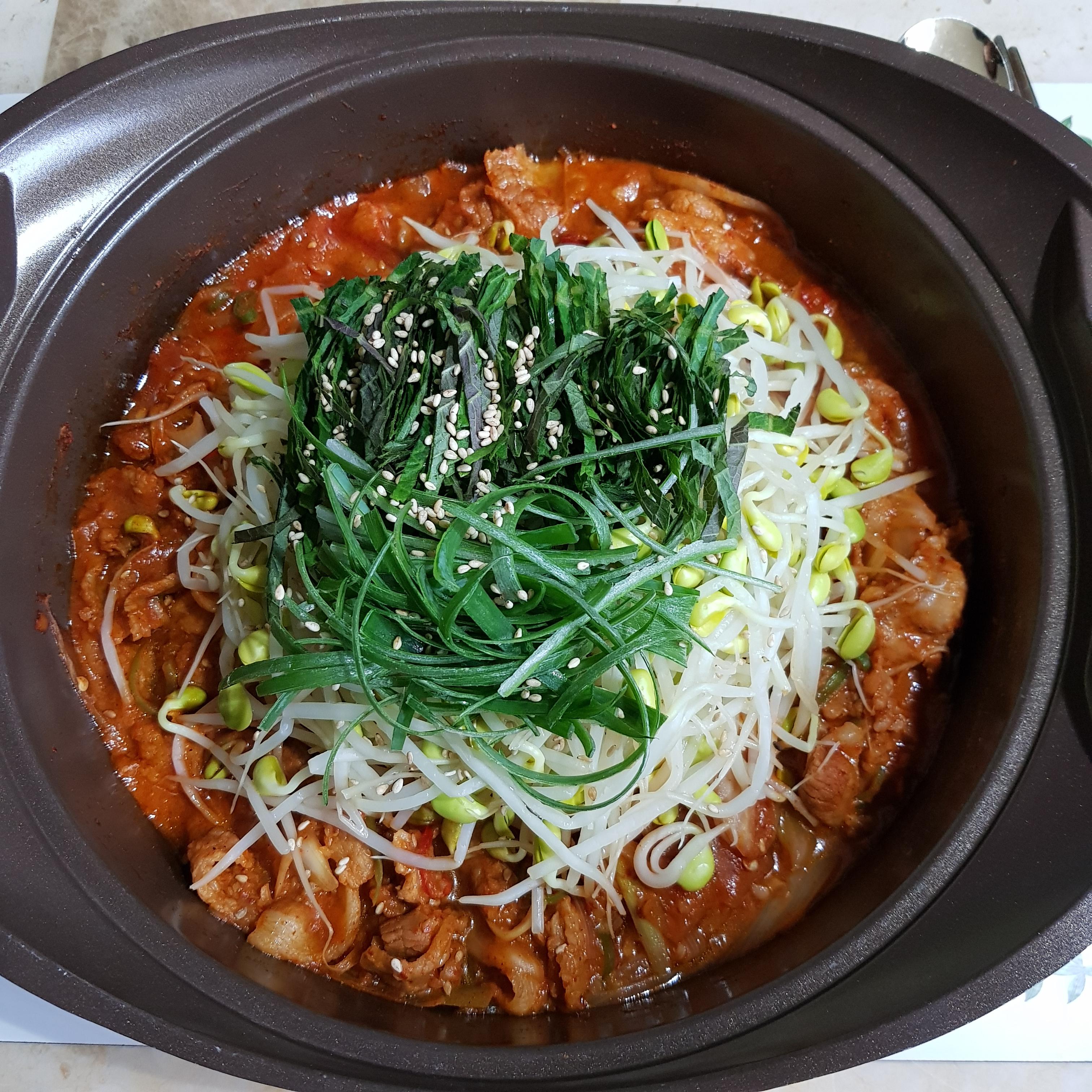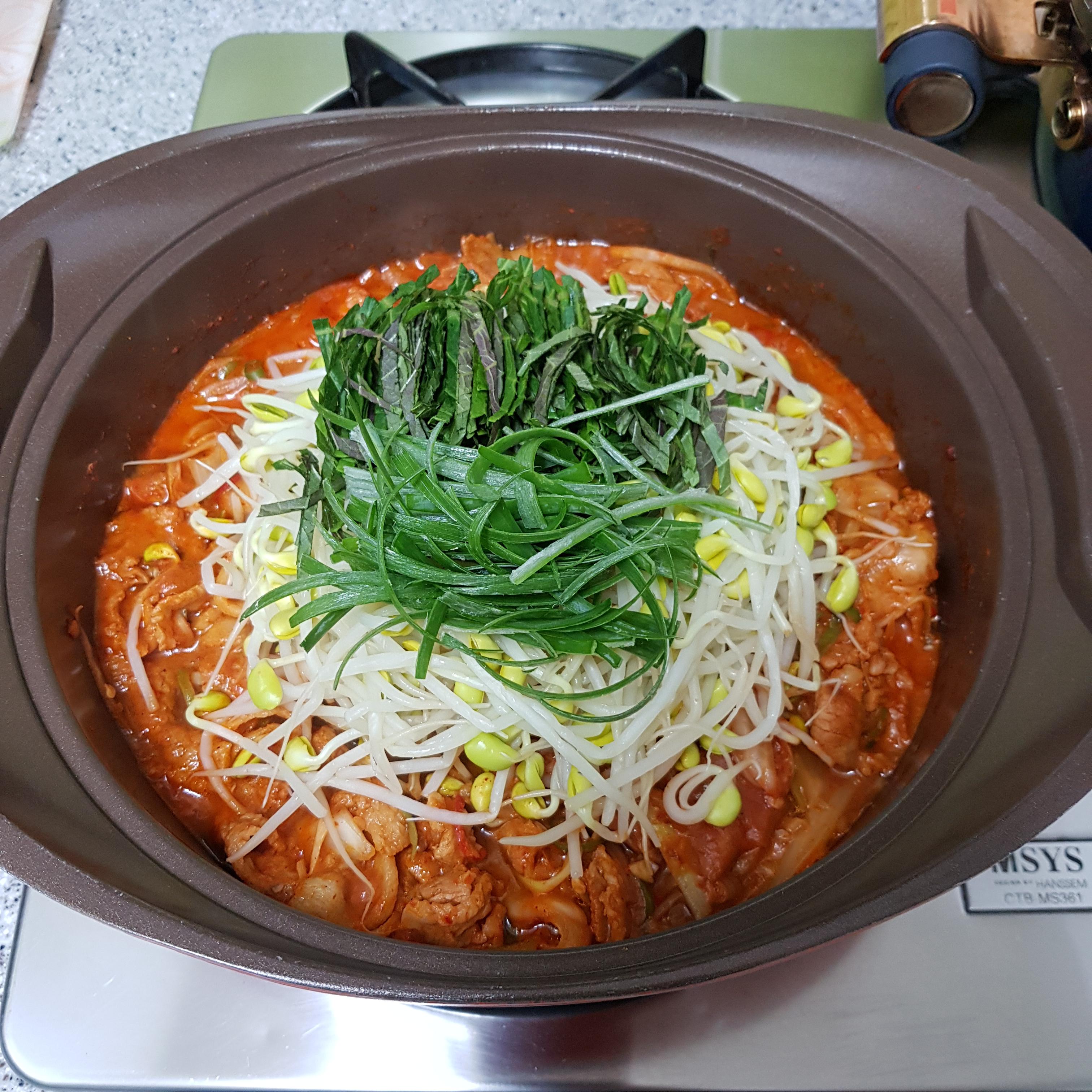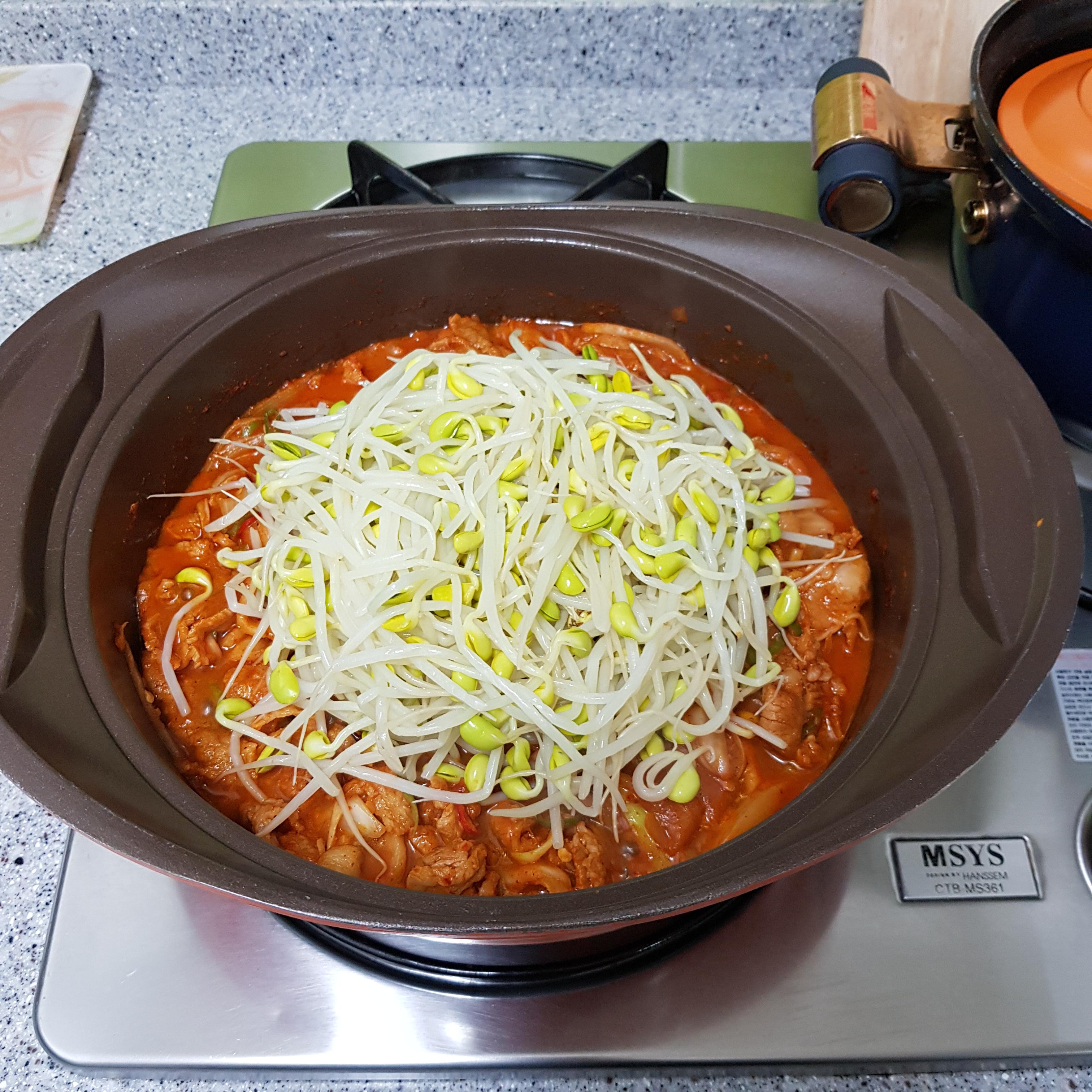 ▶ 뚜껑 닫고 약불에서 5~6분 정도 끓여주세요 얇은 삼겹살에 살짝 데친 콩나물이라 오래 끓일 필요 없답니다