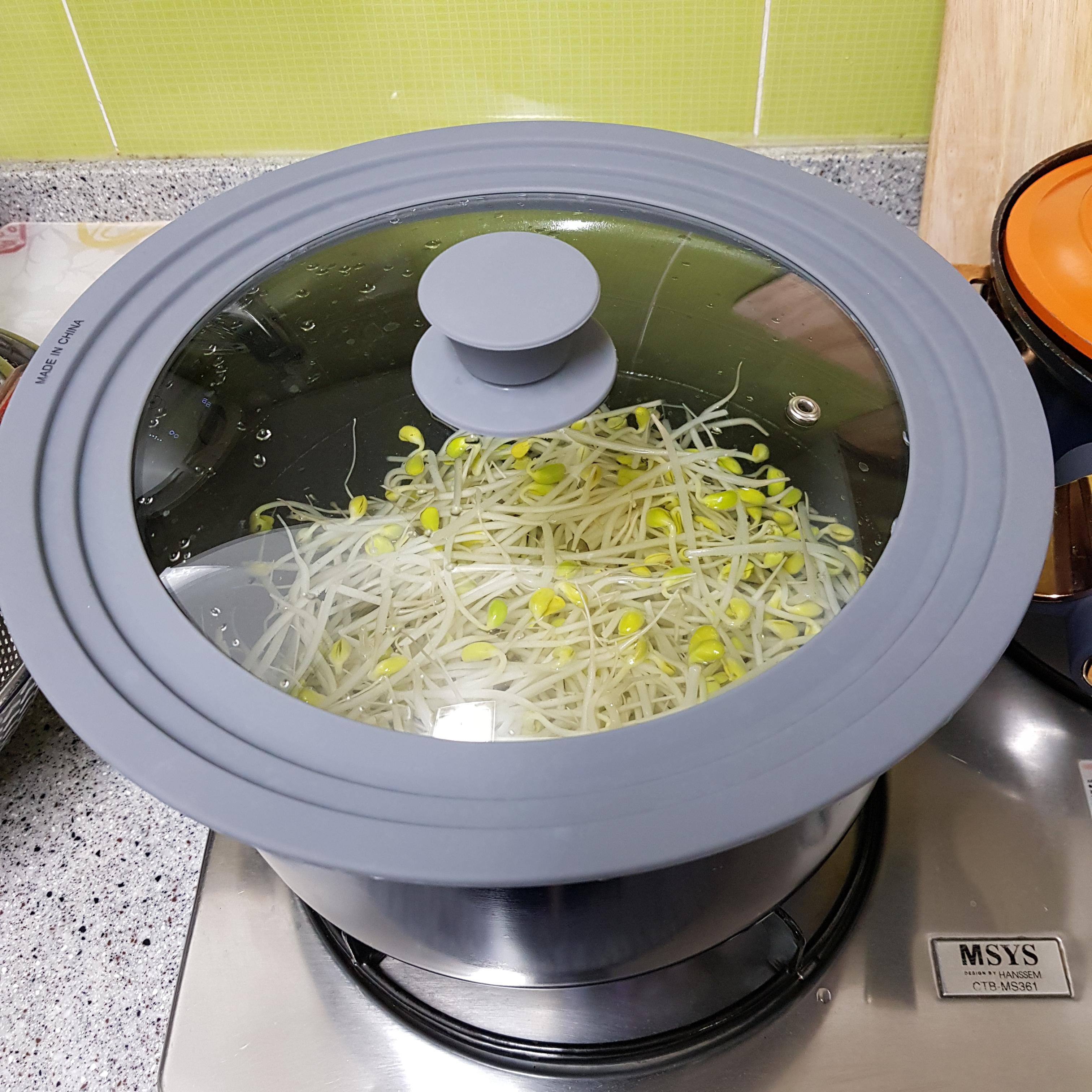 ▶ 깨끗이 씻은 콩나물은 물이 끓어오르면 콩나물을 넣고 뚜껑을 닫고 살짝 데쳐주세요 콩나물을 살짝 데쳐주면 조리시간을 줄일 수 있답니다