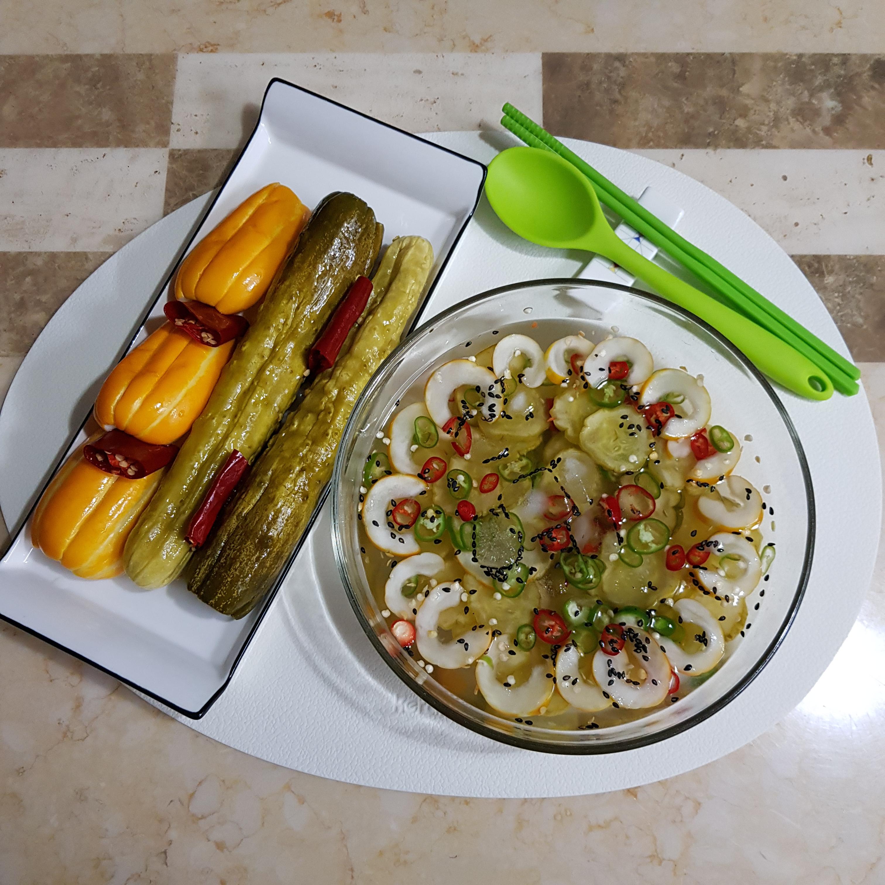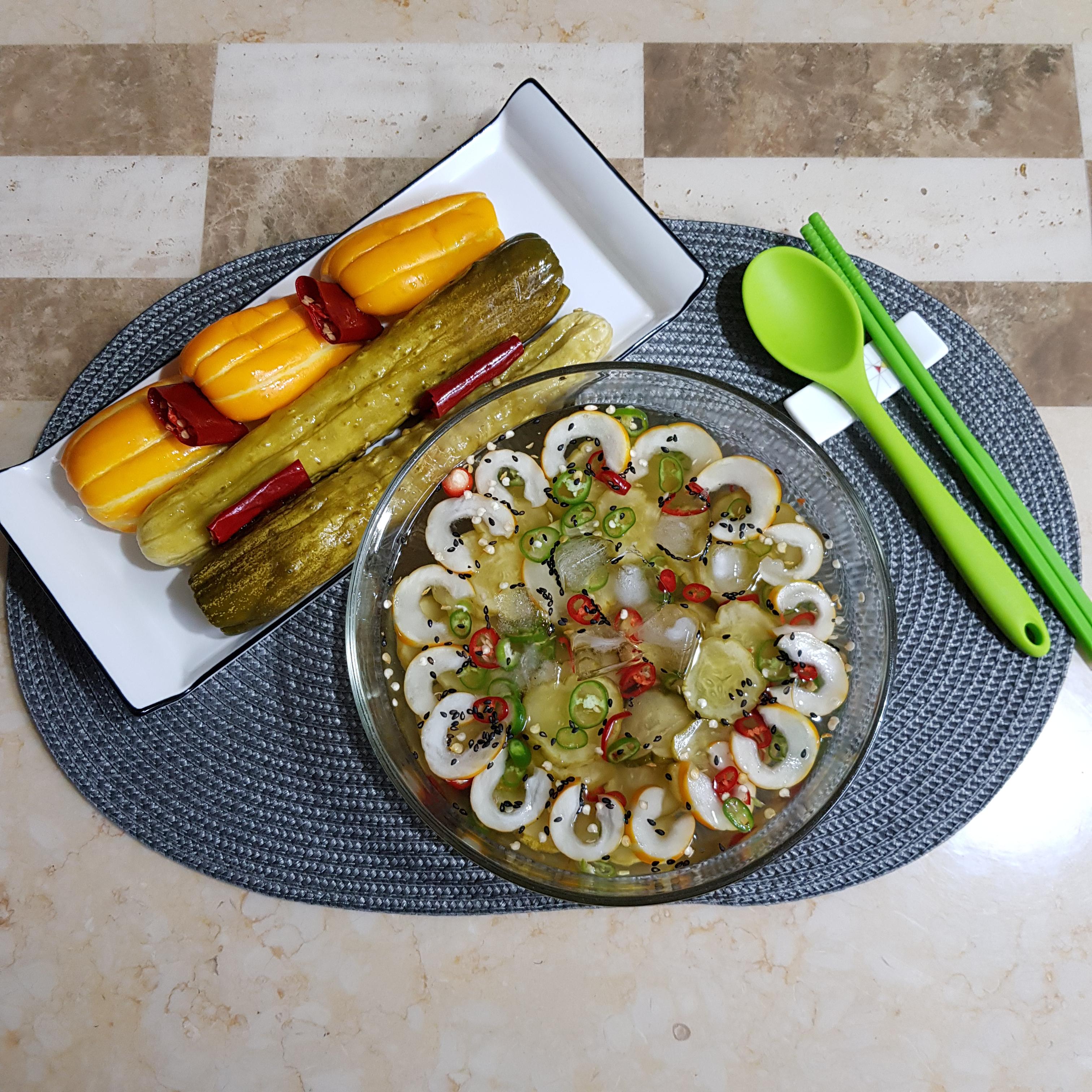 ▶ 4일 지난 오이지로 오이지 냉국 만들어봤어요 오이지 1개, 참외 1개, 청양고추 2개, 홍고추 1개 준비해주세요