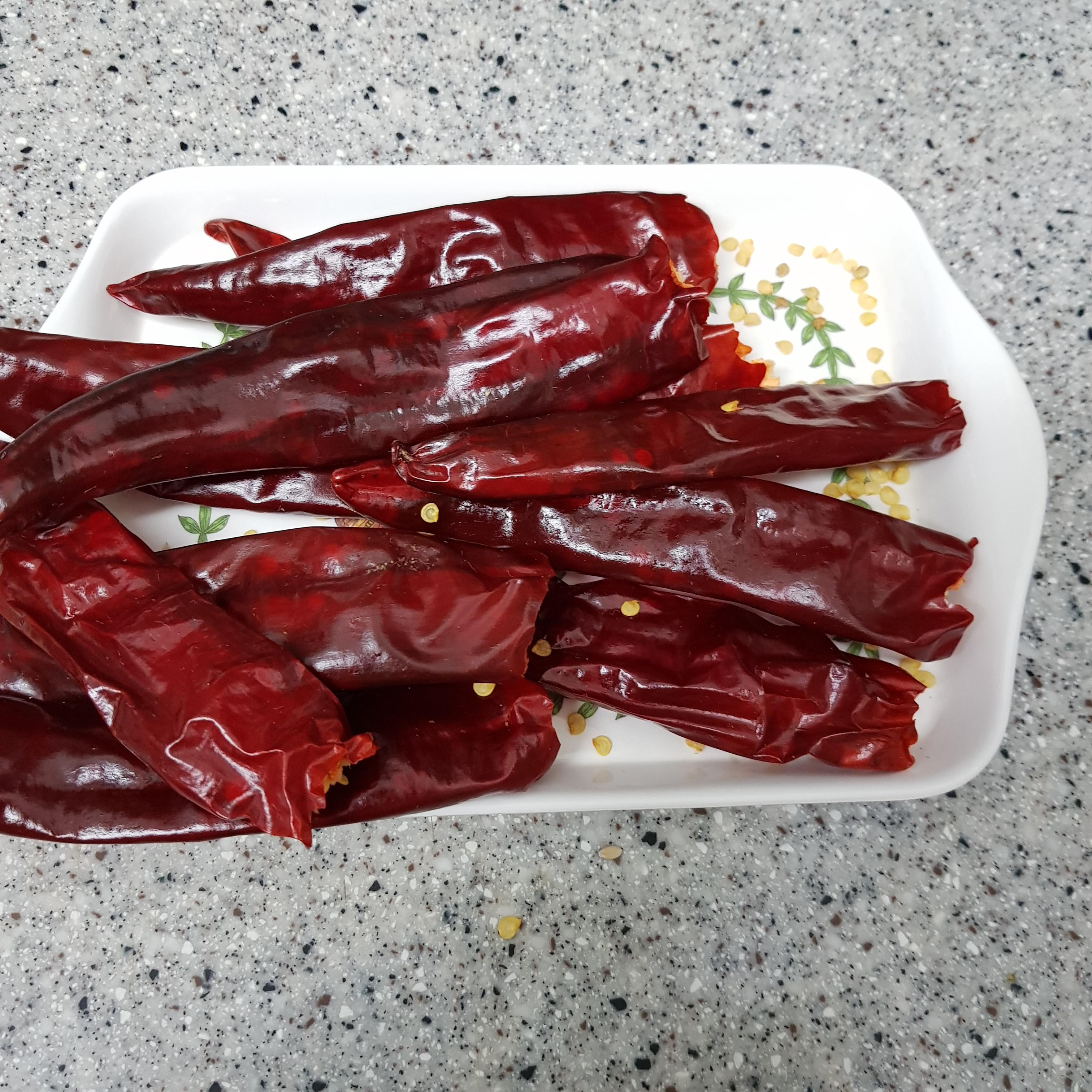 ▶ 건고추 10개는 꼭지를 제거하고 반으로 잘라 준비해주세요 건고추가 오이지의 칼칼한 맛을 더해준답니다