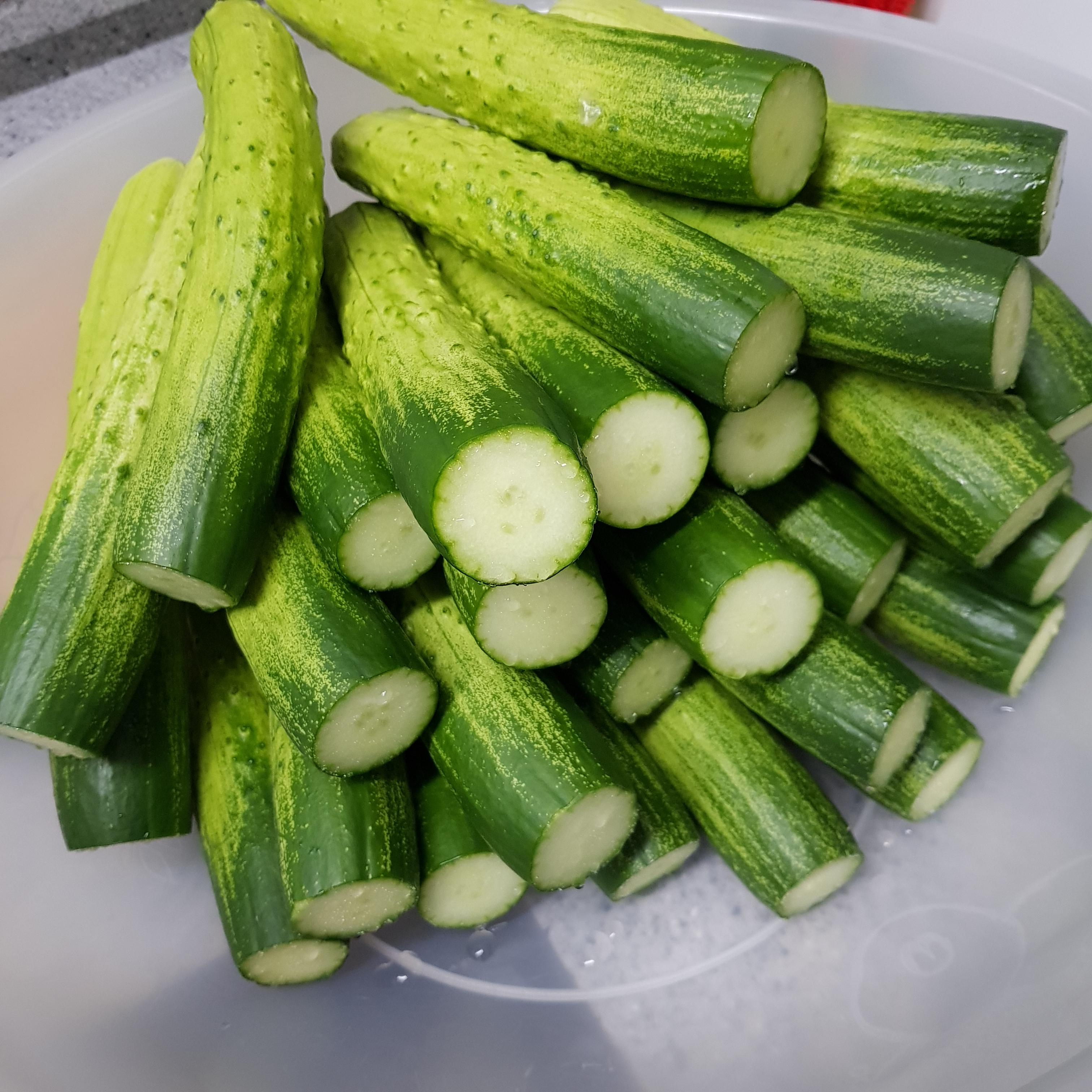▶ 깨끗이 씻은 오이는 물기를 빼주고 남은 물기는 마른 면포로 닦아서 준비해주세요