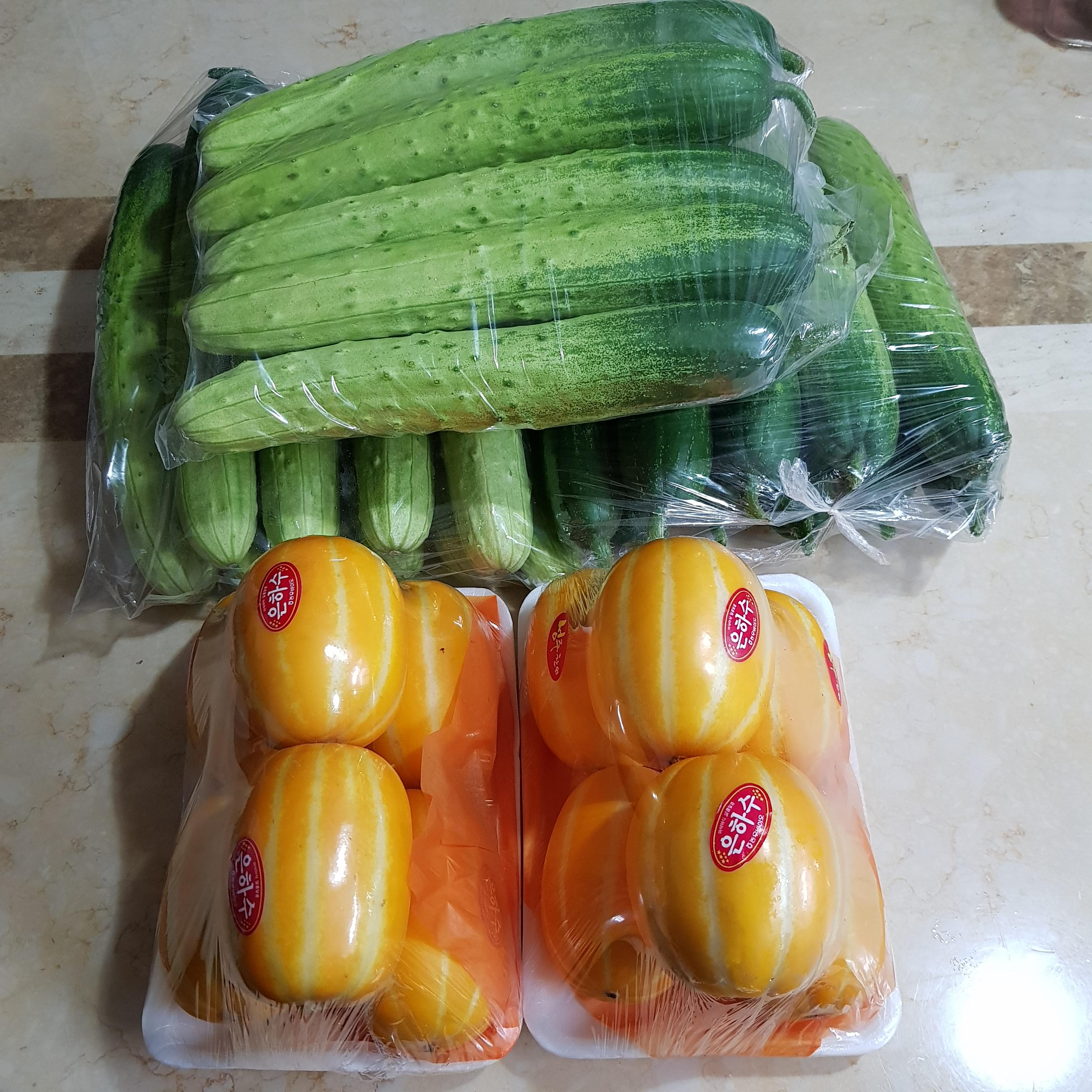 백다다기오이 30개, 참외 10개, 김치통 15L 정도 크기