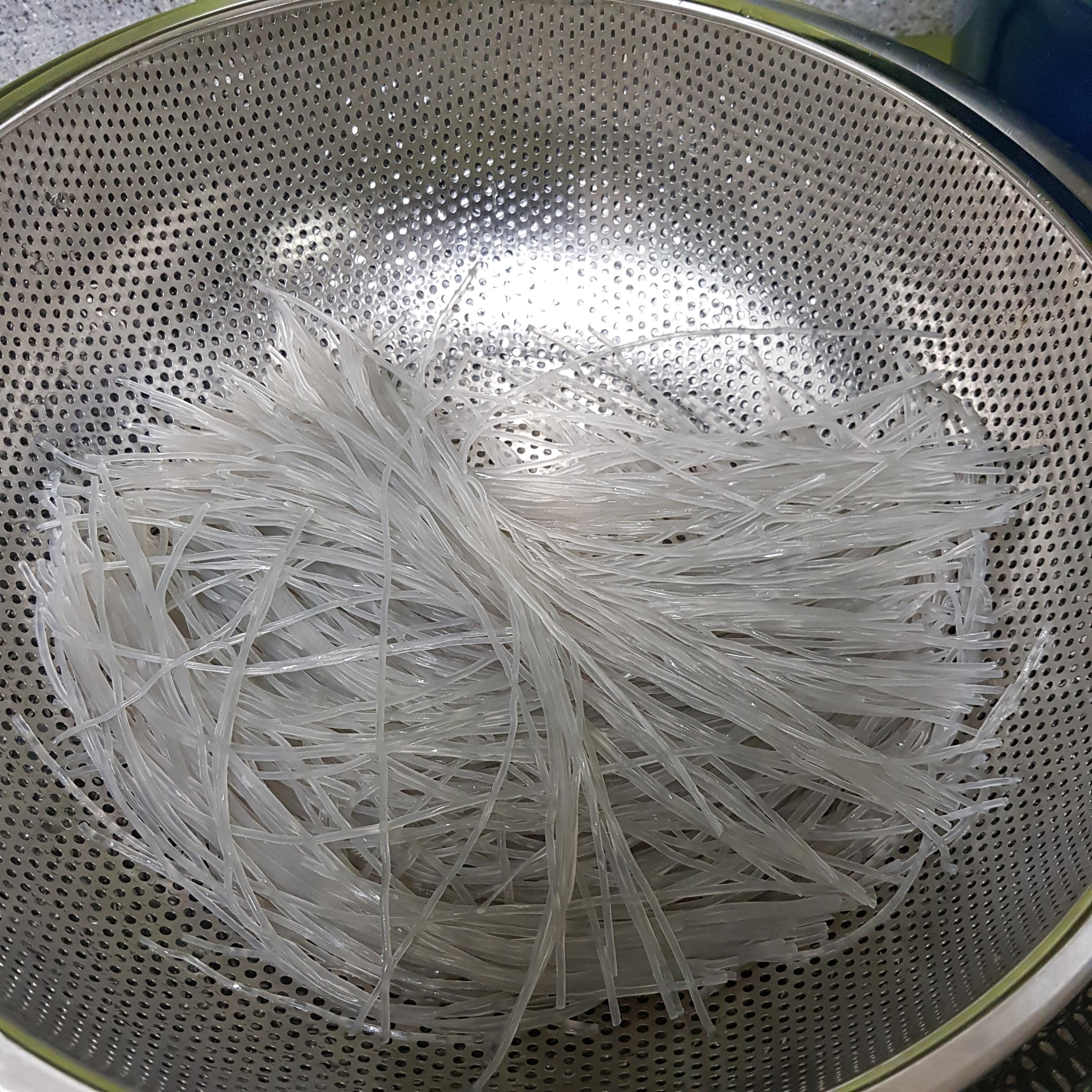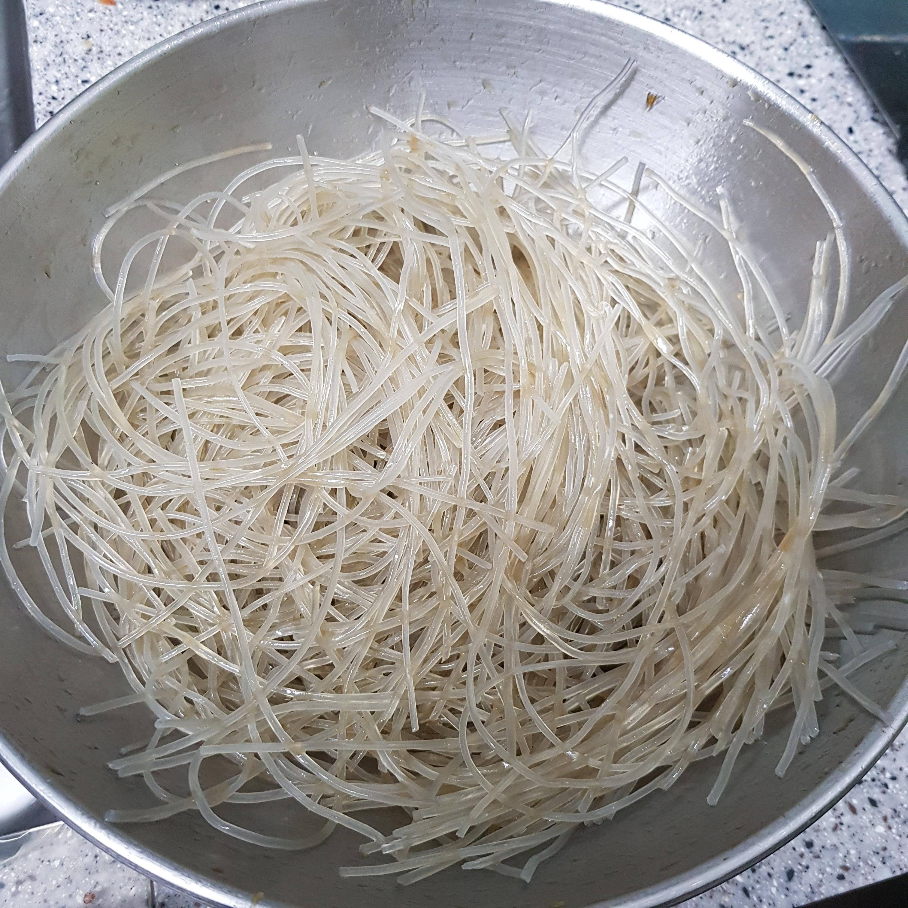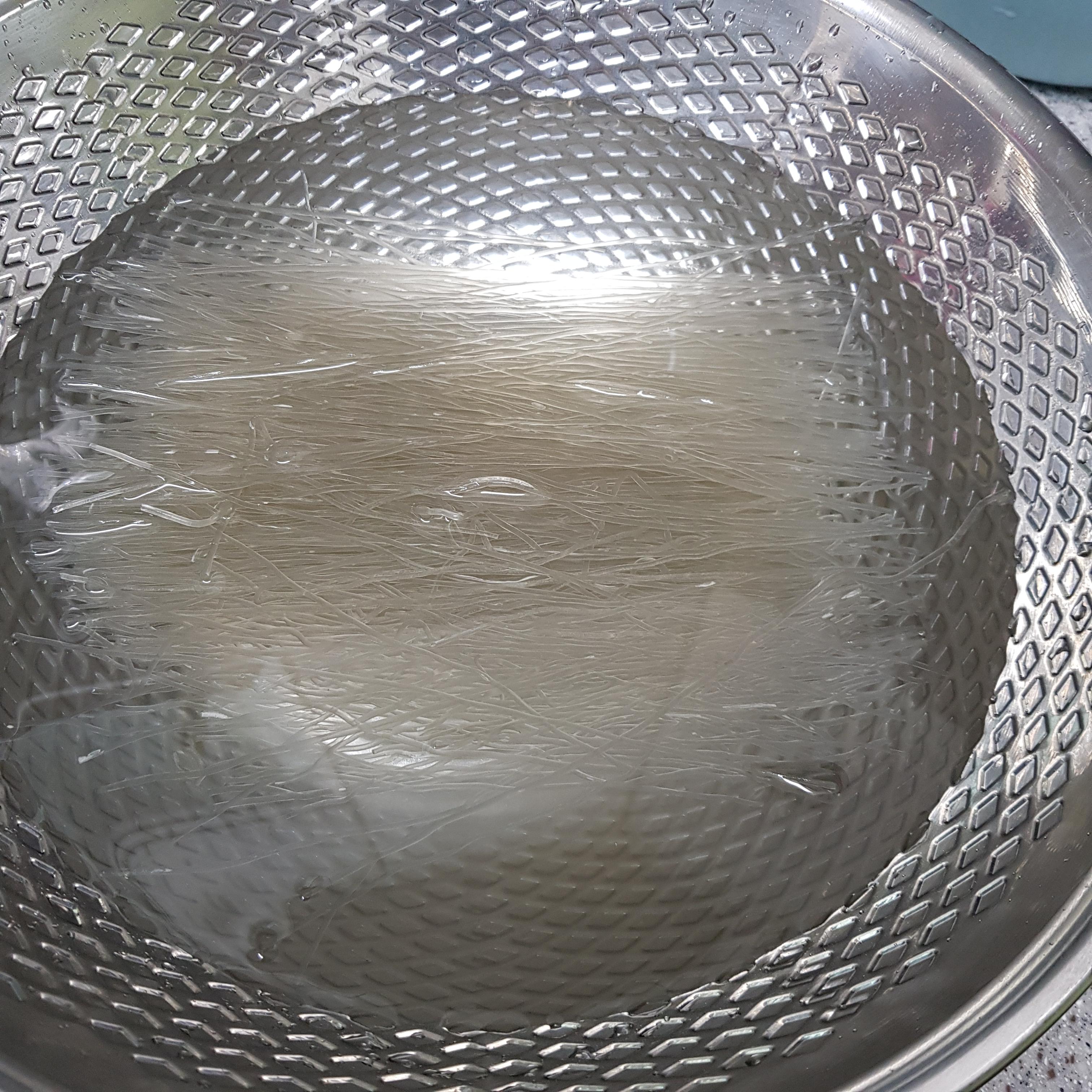 ▶ 먼저 양푼을 준비한 후 미지근한 물을 붓고 당면을 넣어 40분 정도 불려주세요
