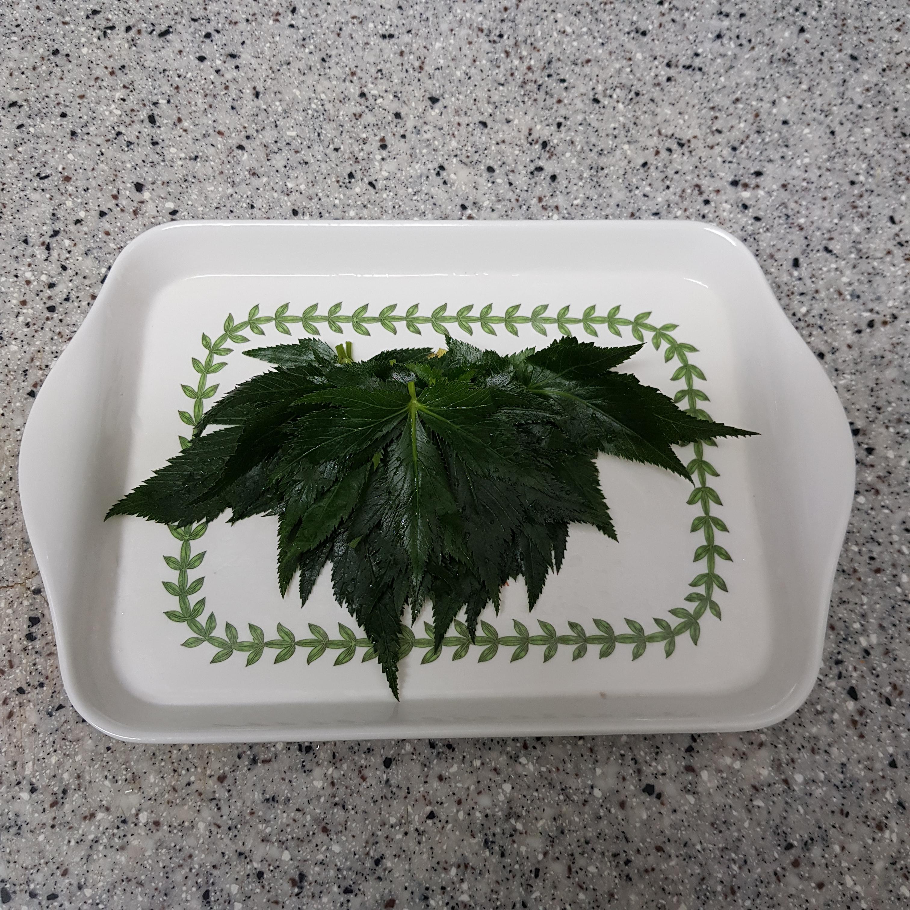 ▶ 당귀잎은 깨끗이 씻은 후 물기를 털어 주고 잎을 가지런히 놓고 그릇으로 잎을 눌러주어 모양을 잡아 준비해주세요