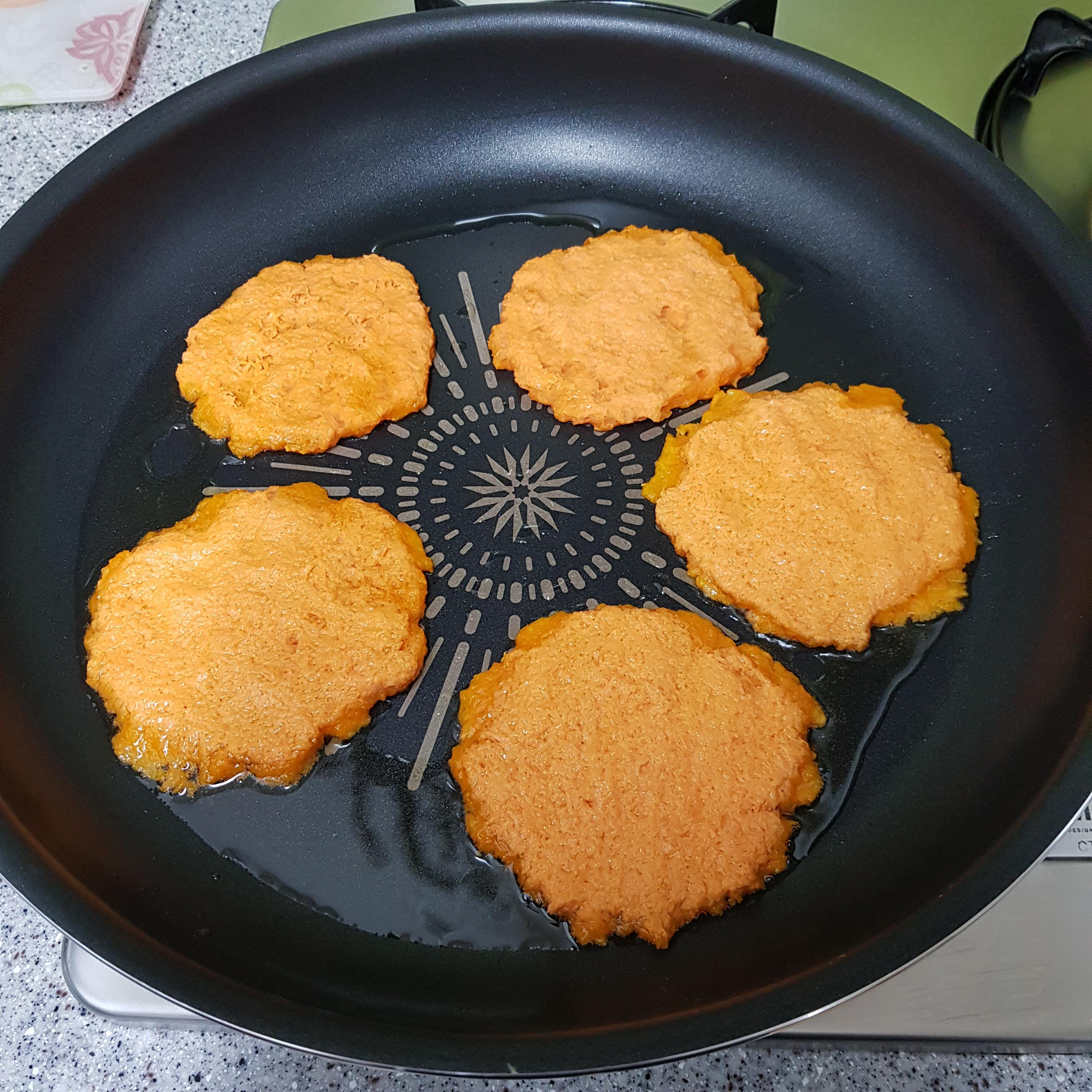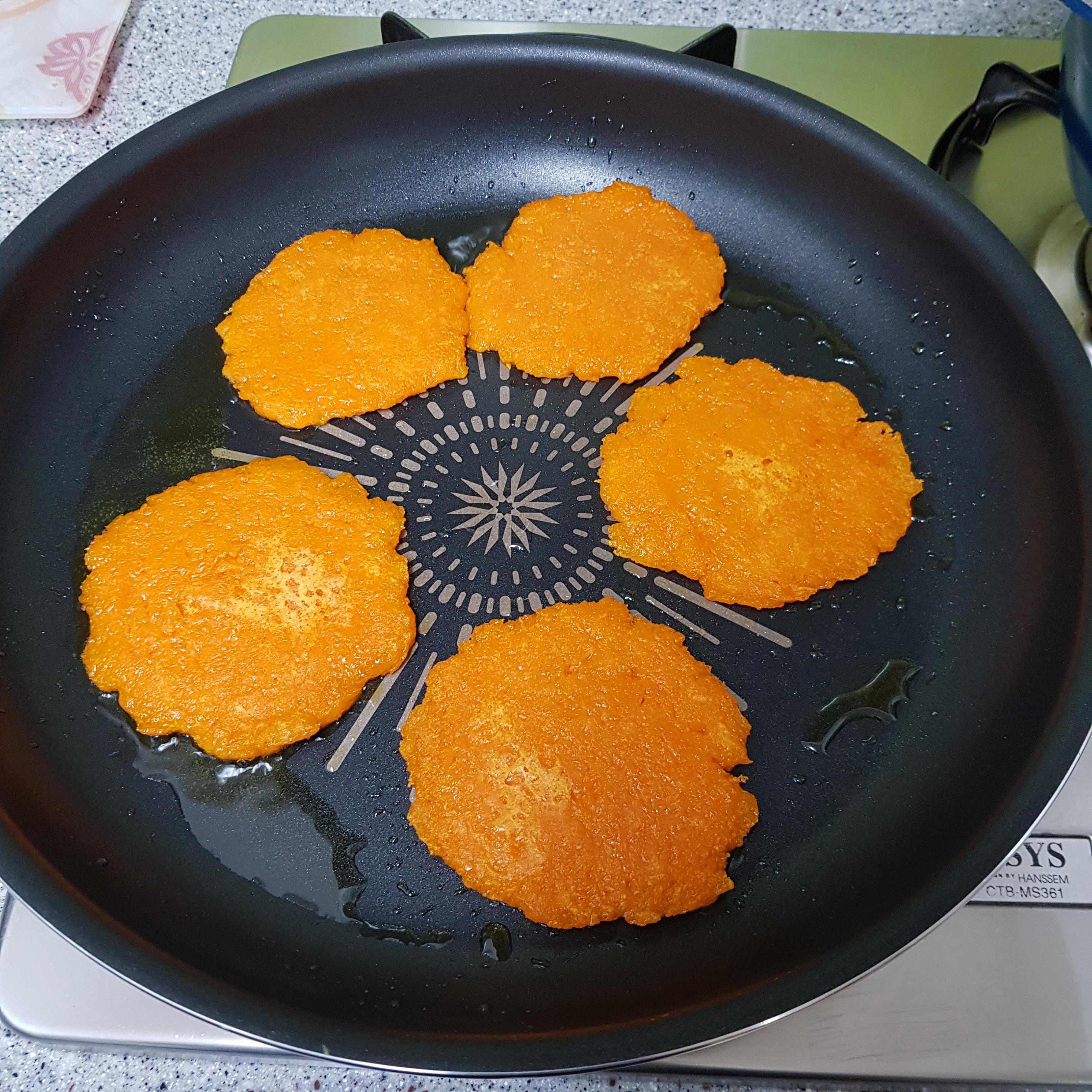▶ 정말 간단하죠? 보통 당근은 우리가 요리할때 부재료로 적은 양만 사용하는데 이렇게 당근전 만들어 먹으면 몸에 좋은 당근을 많이 섭취할 수 있어 좋고 당근을 싫어하는 아이들 간식으로도 안성맞춤이랍니다^^