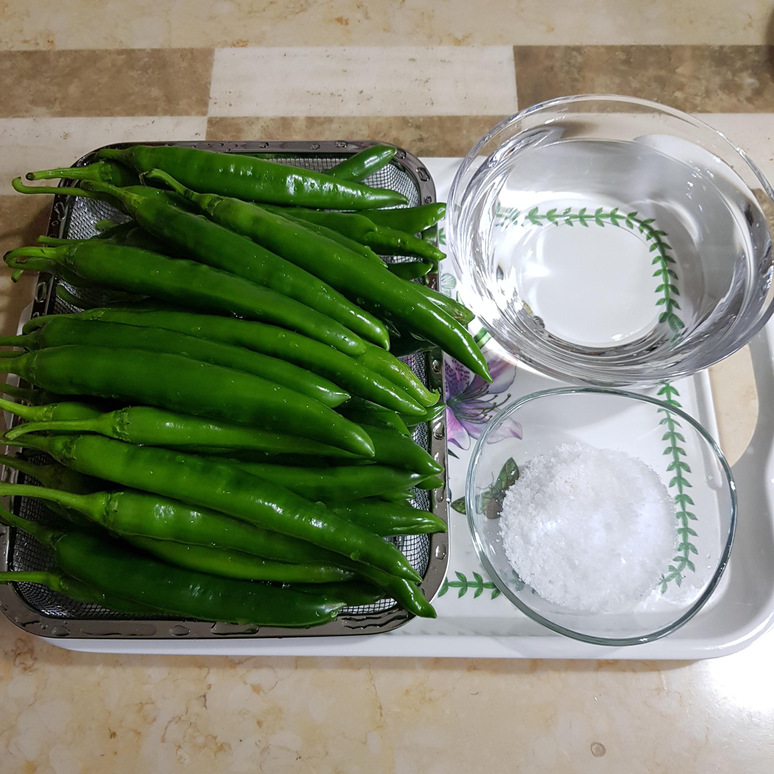 오이고추 1kg, 물 4컵+꽃소금 2큰술(절임용)