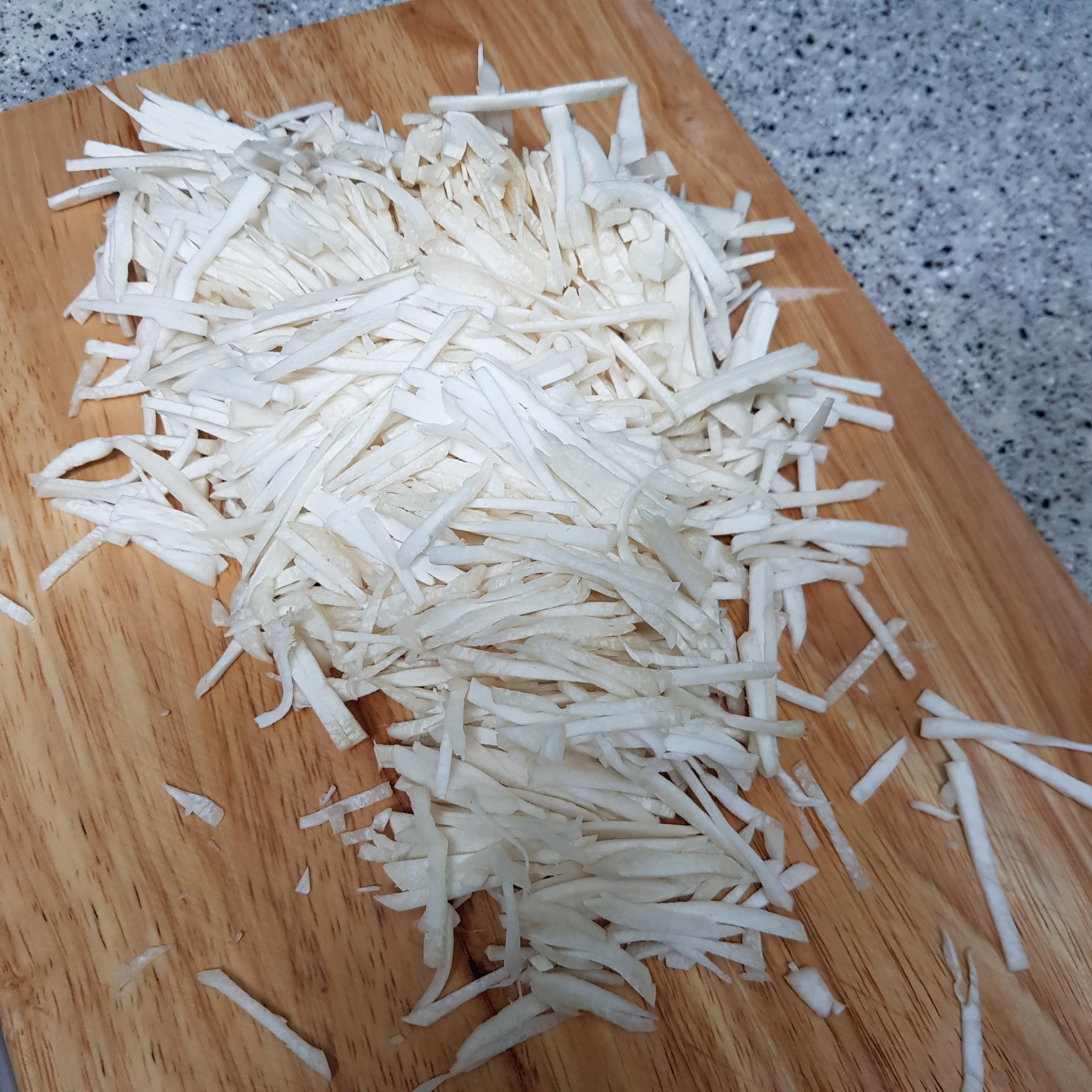 ▶ 무 150g을 3cm 길이로 채 썰어주세요