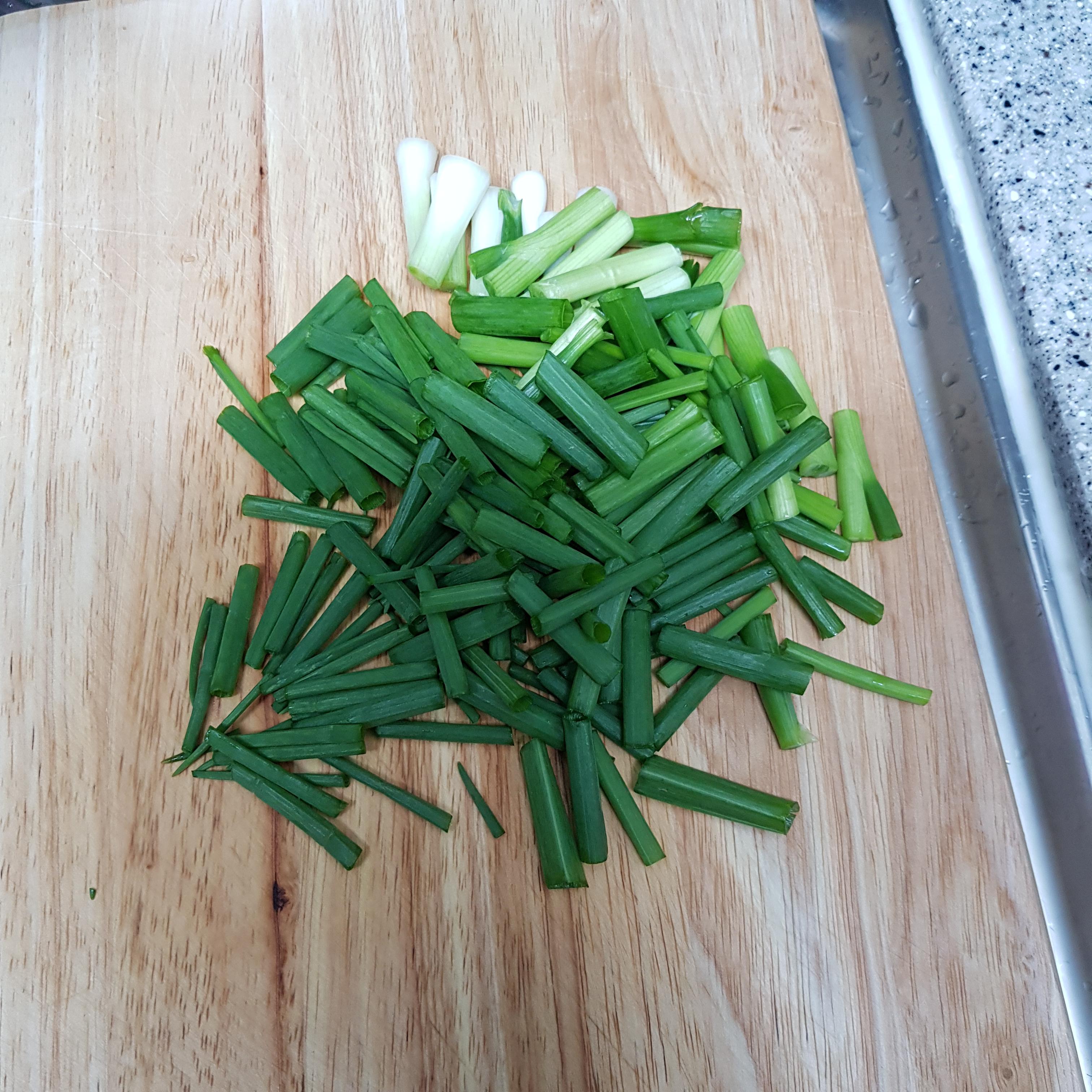 ▶ 쪽파 50g을 3cm 길이로 썰어주세요 모든 소는 3cm 정도의 길이로 맞춰서 썰어주시는 게 좋아요