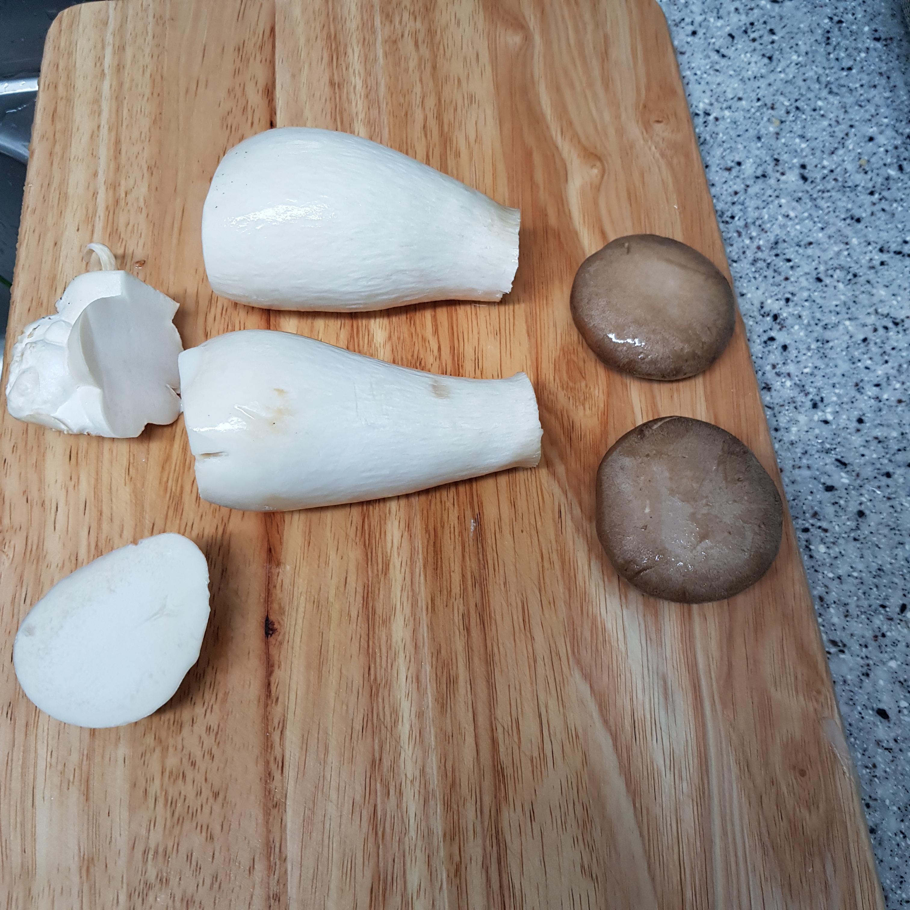 ▶ 은은한 향과 감칠맛을 더할 새송이버섯은 갓을 떼내고 가늘게 채 썰어 준비해주세요