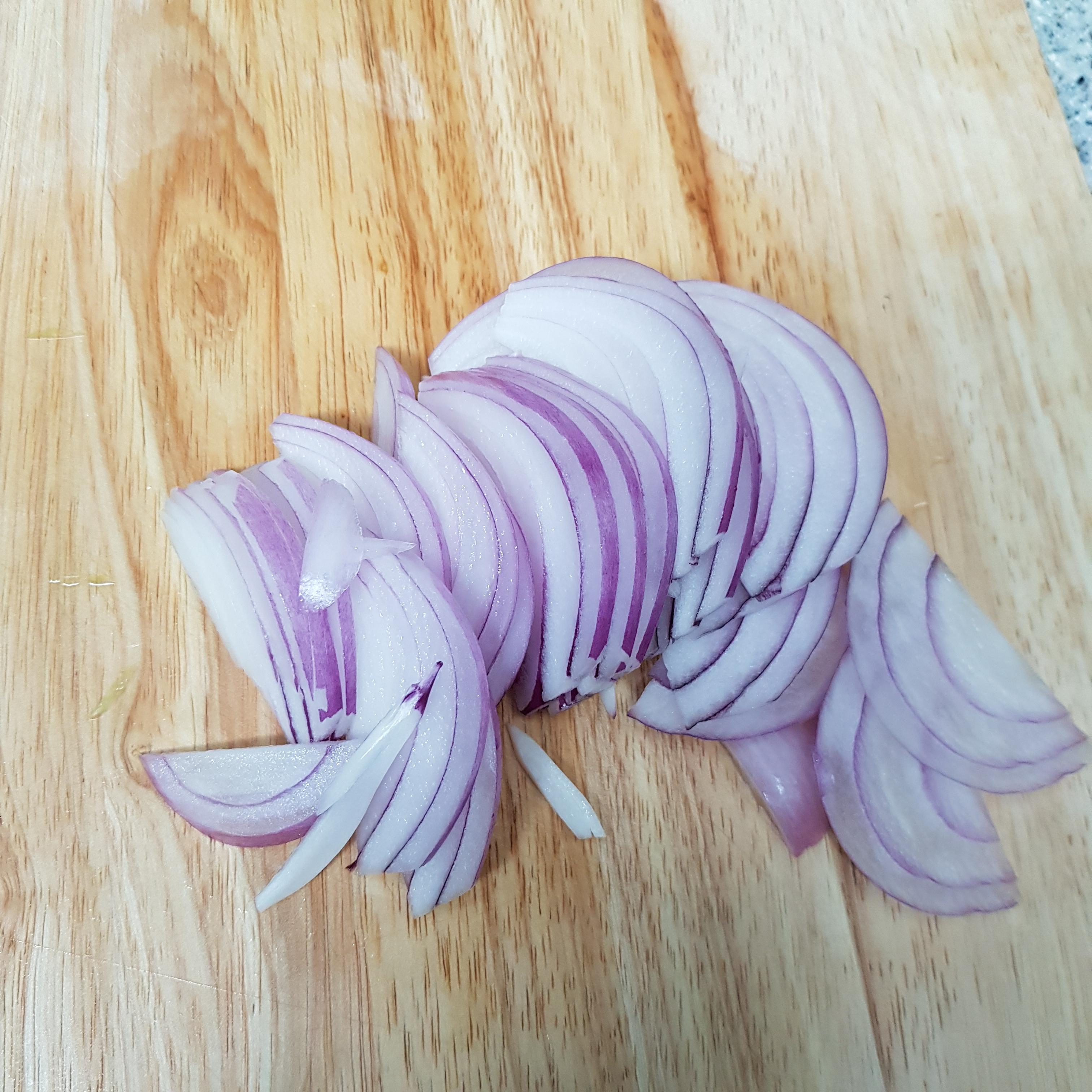 ▶ 양파 반개는 채썰어주고 대파 흰 부분은 송송 썰어 준비해주세요