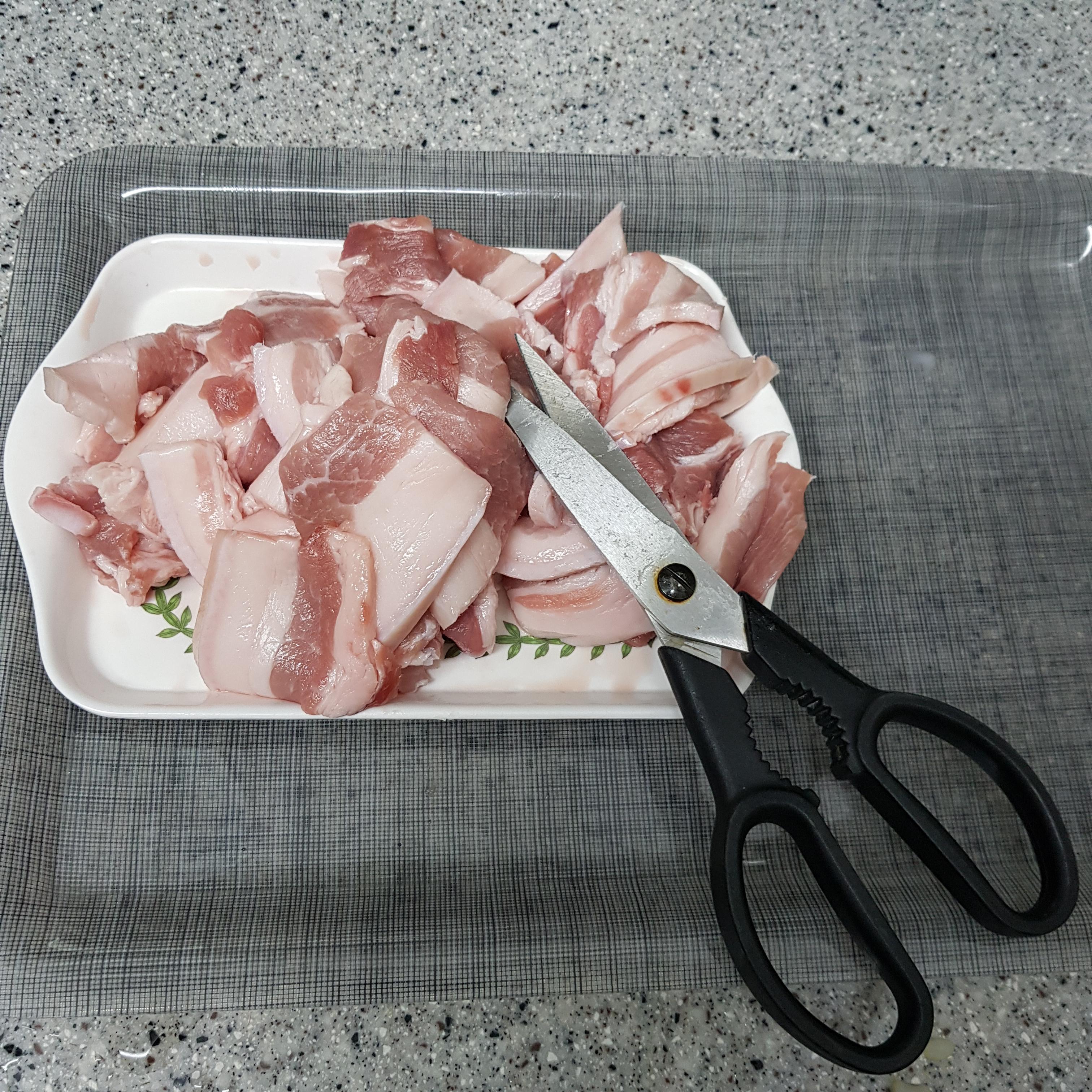▶ 삼겹살 400g은 0.6cm 정도 두께, 한 입 크기로 잘라 준비해주세요