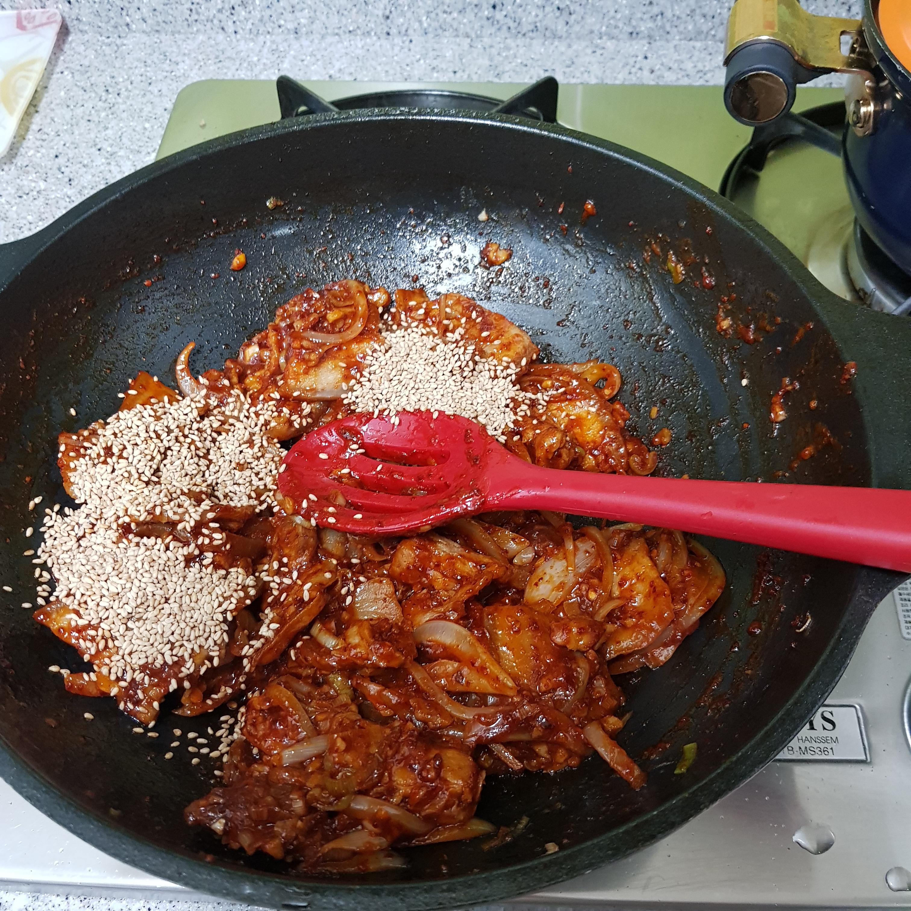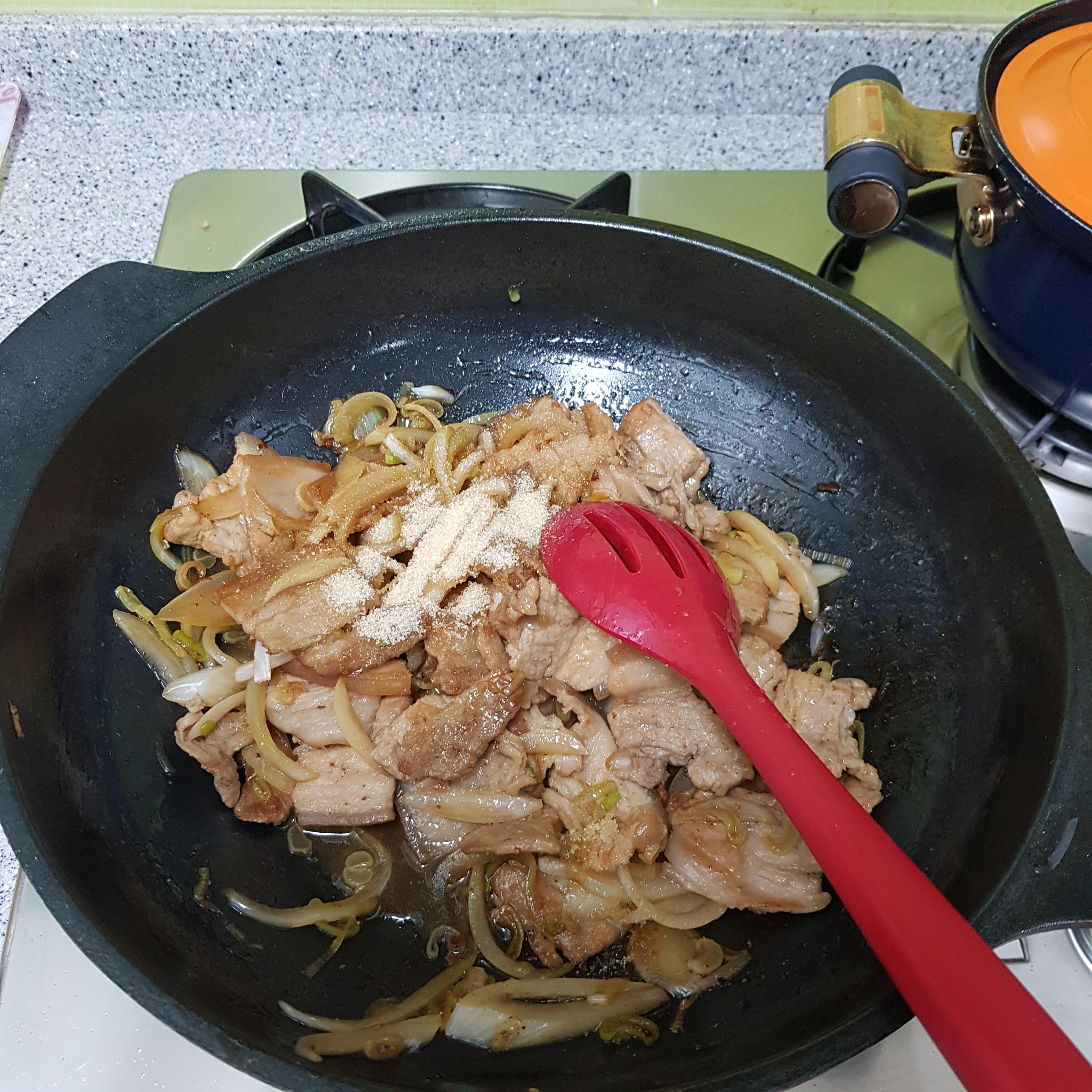 ▶ 불을 끄고 통깨 2큰술을 넣어주면 불향 가득 알토란 제육볶음 완성입니다^^