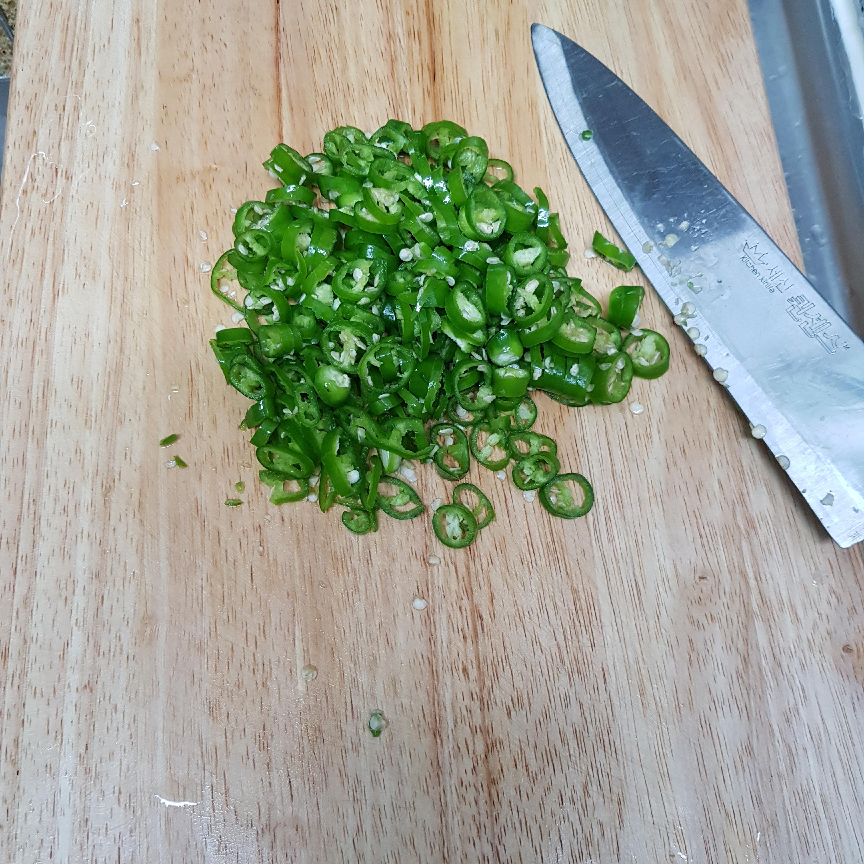 ▶ 매콤함을 더해줄 청양고추 10개를 송송 썰어 준비해주세요 청양고추는 입맛에 맞게 준비해 썰어주시면 된답니다