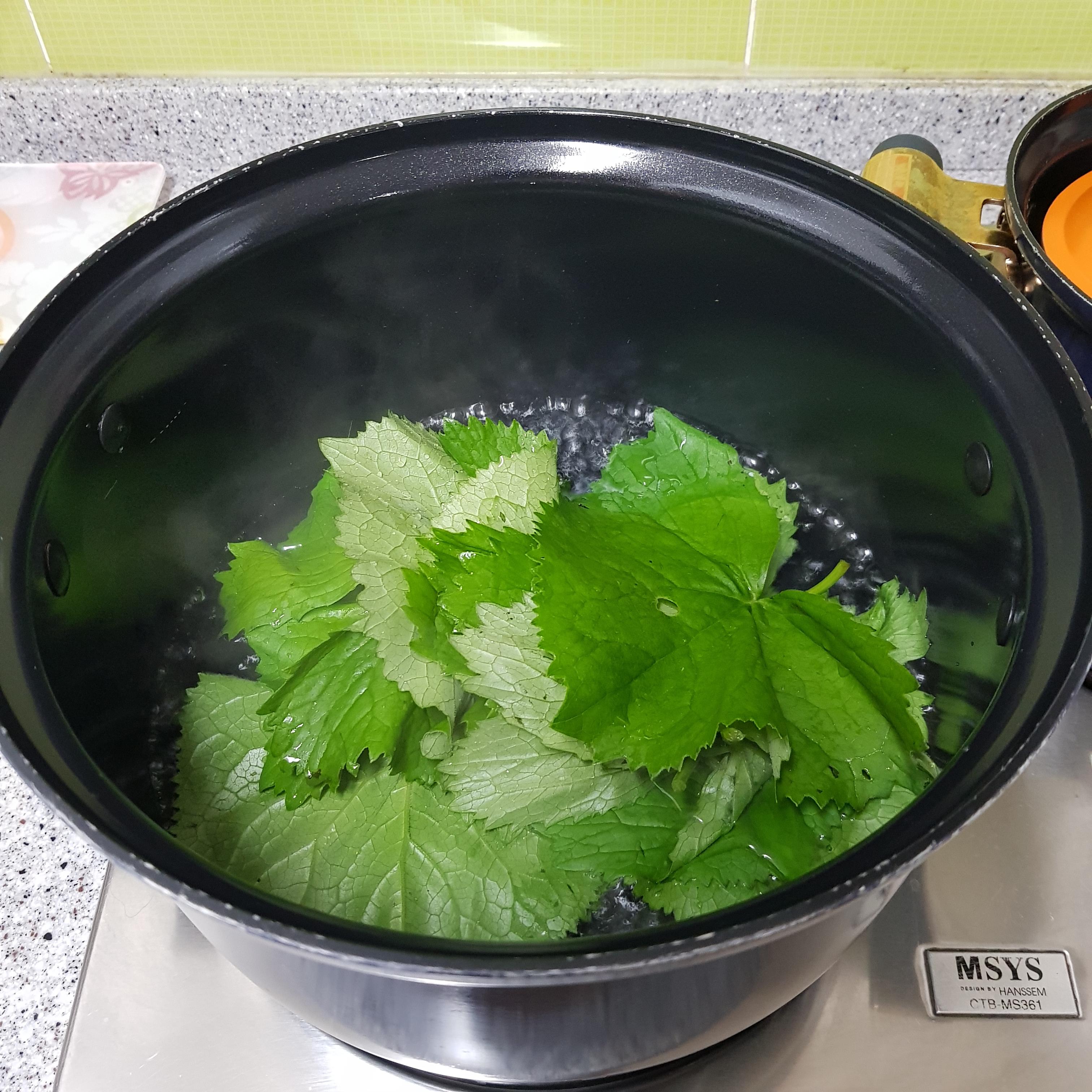 ▶ 깨끗이 씻은 곰취나물은 끓는 물에 천일염 조금 넣어 30초만 데친 후 냉수에 헹궈서 물기를 짜주세요 물기 짠 후 잎을 펴서 가지런히 담아 준비해주세요