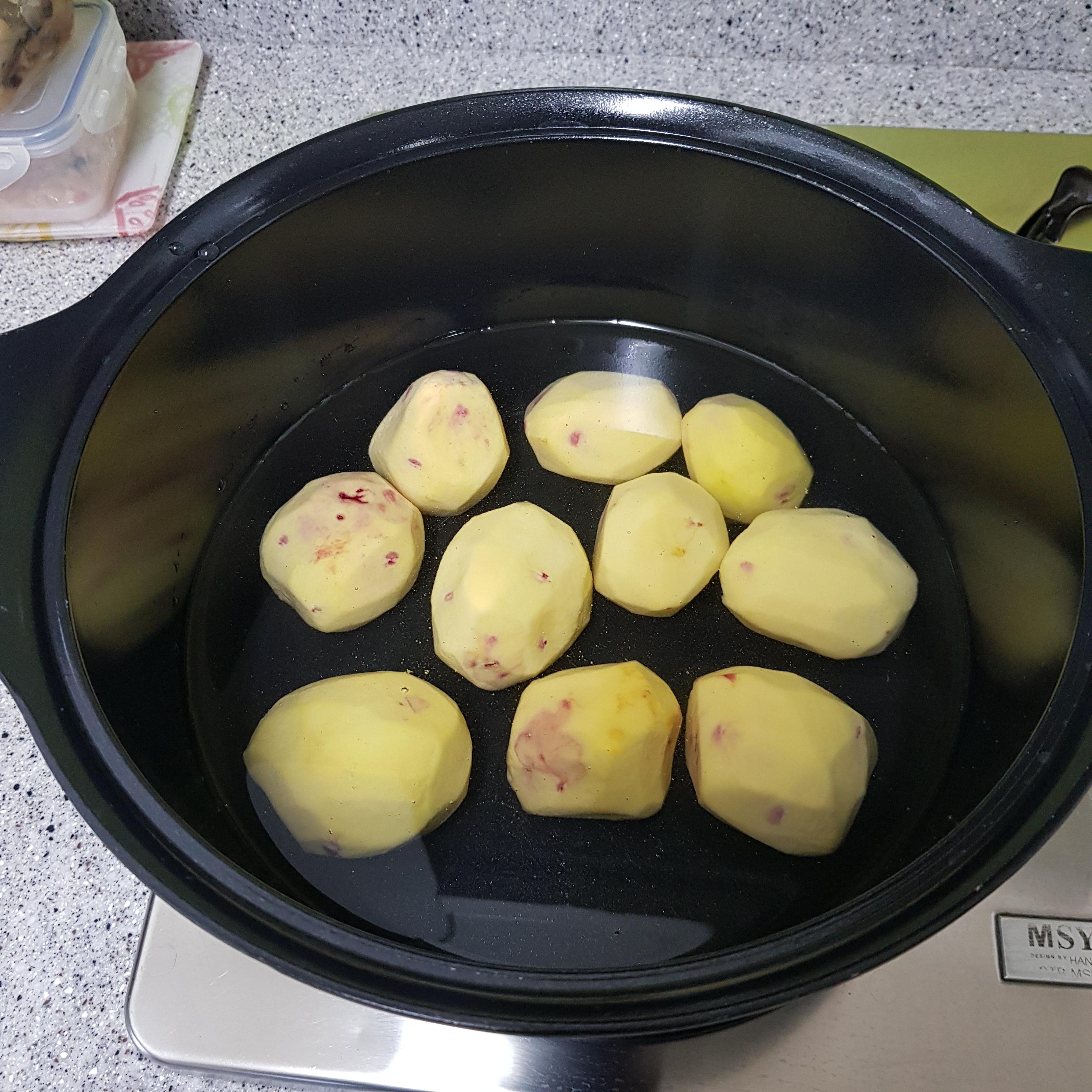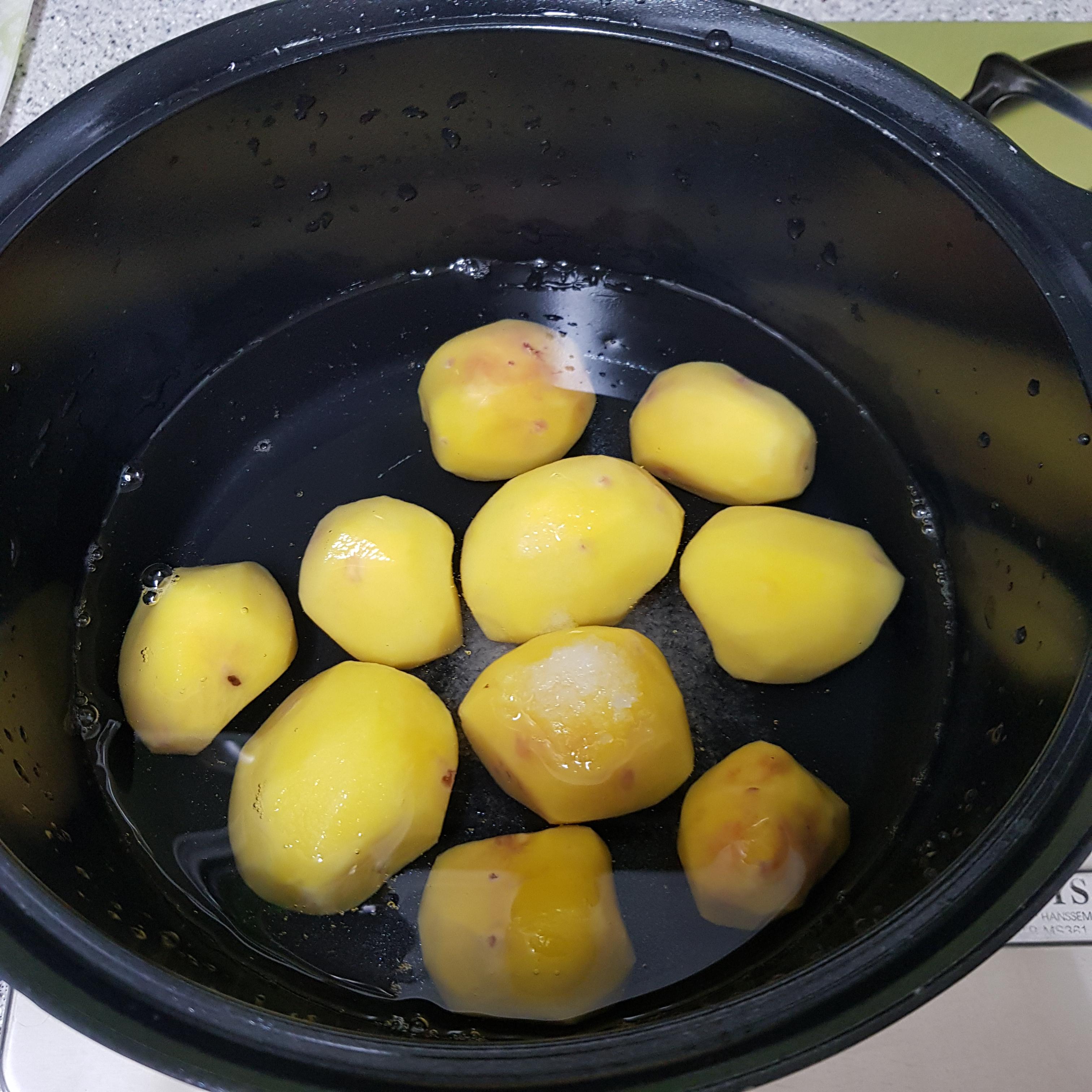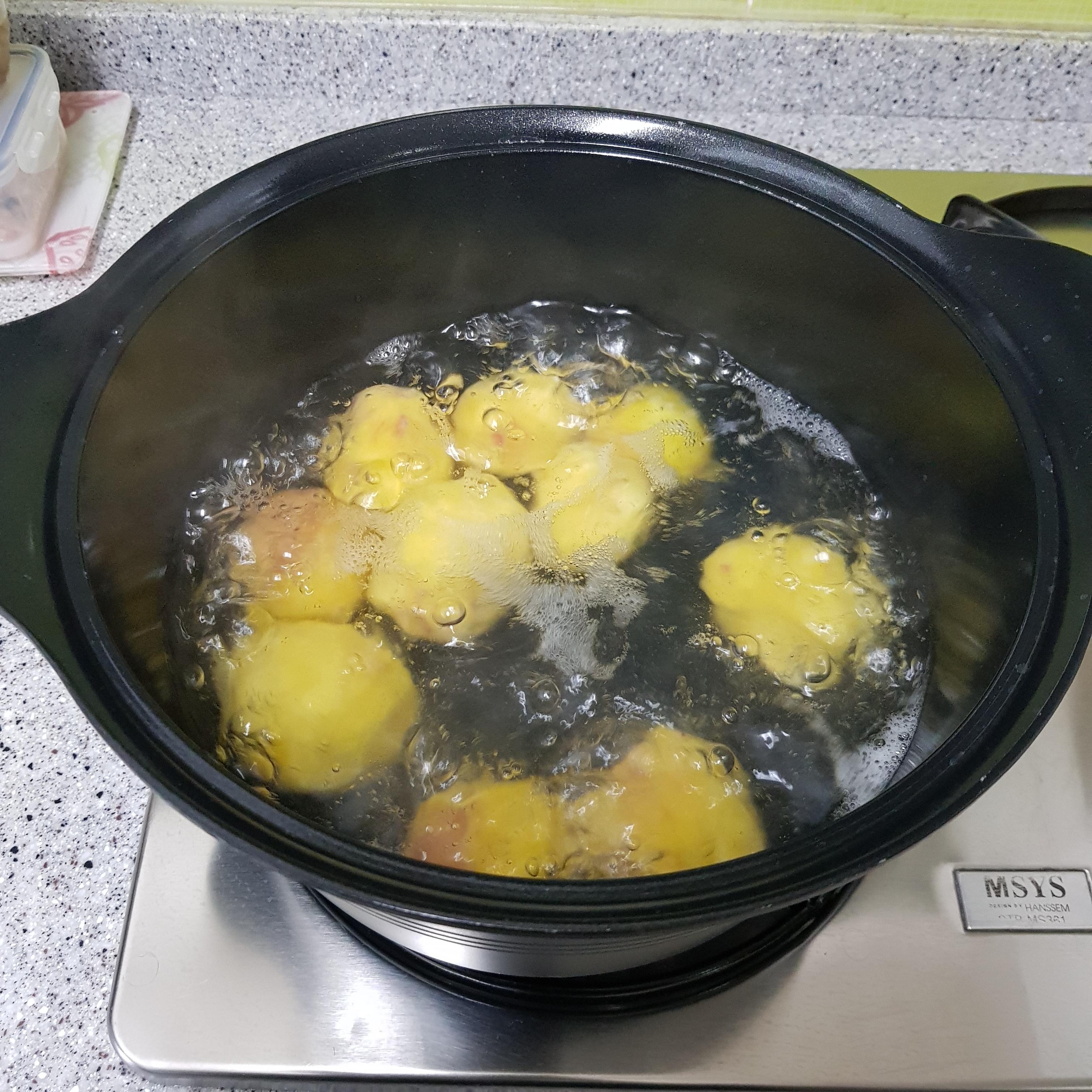 ▶ 감자 삶는 물이 끓으면 첫 물은 따라서 버리고 한번 헹구어주세요 그러면 감자의 아린 맛이 제거된답니다