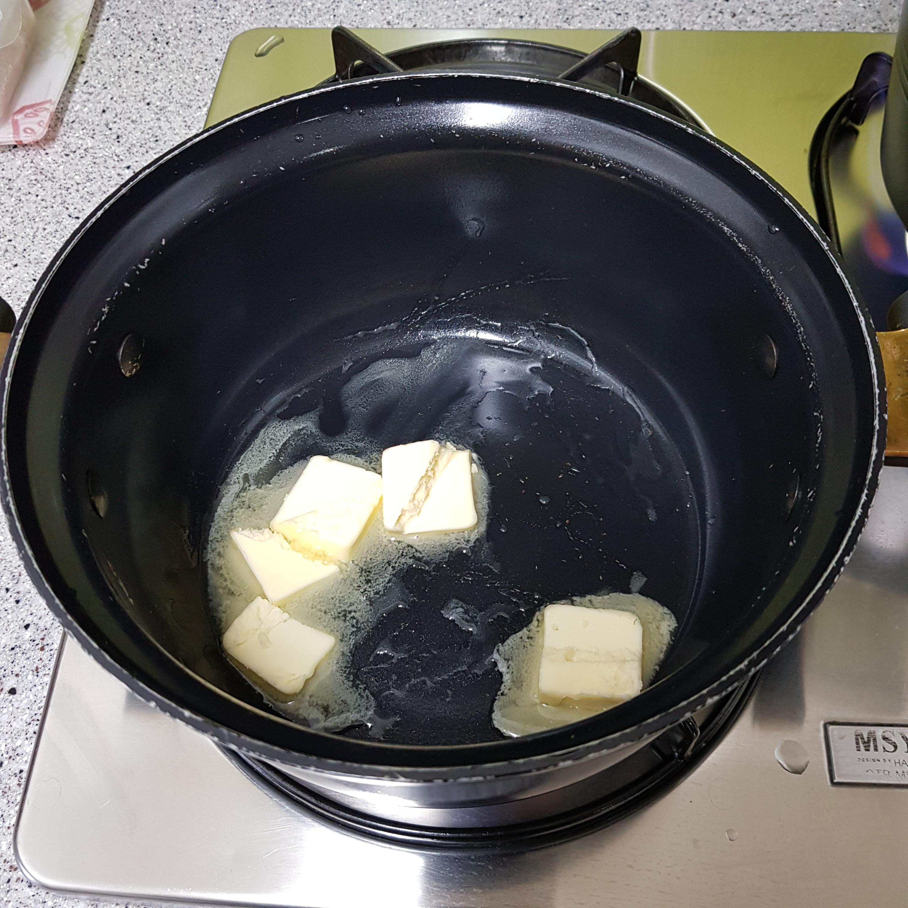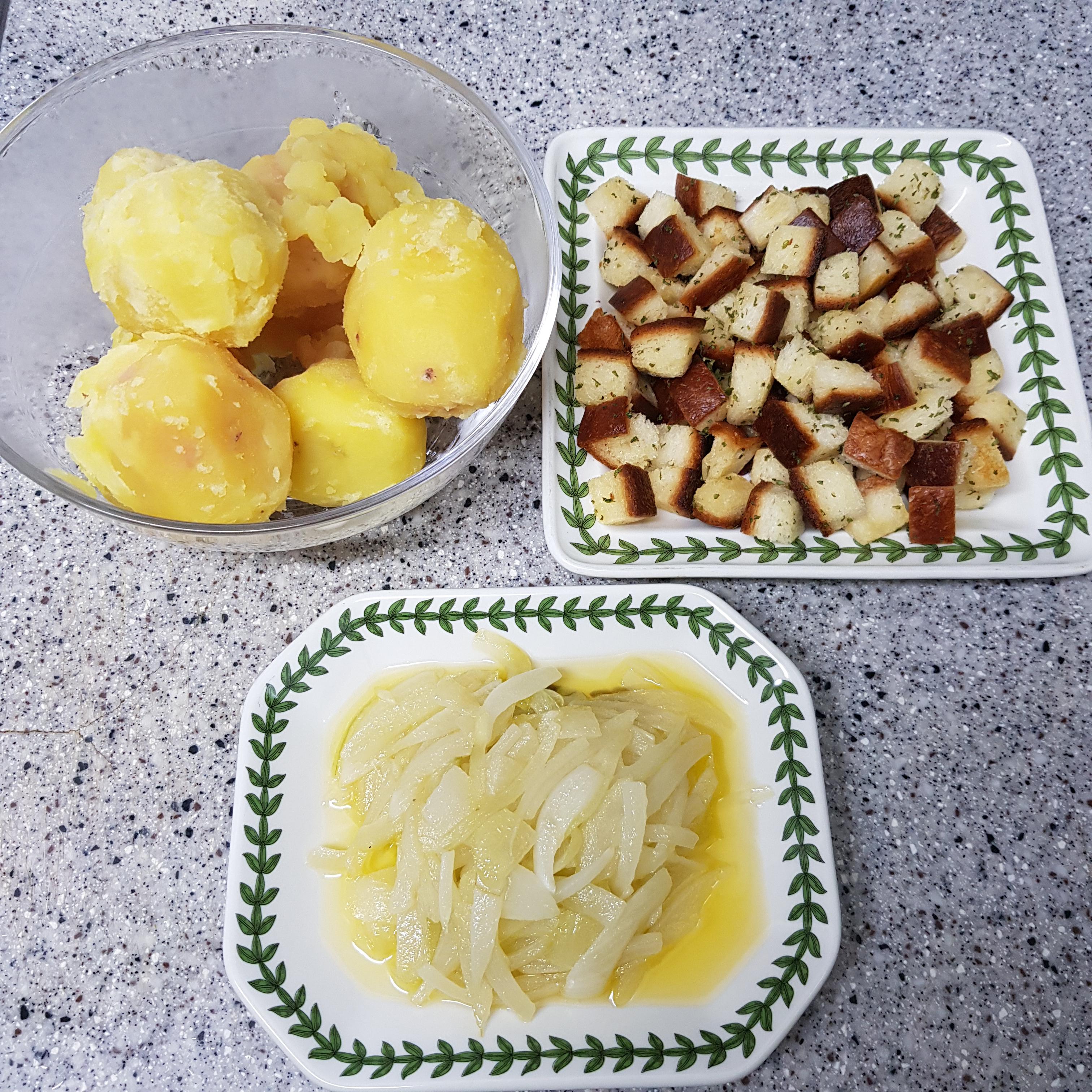 ▶ 감자는 소금을 넣어 삶아주고 식빵 테두리, 양파는 버터를 넣어 볶아주면 백종원 감자스프 재료 손질 완료입니다