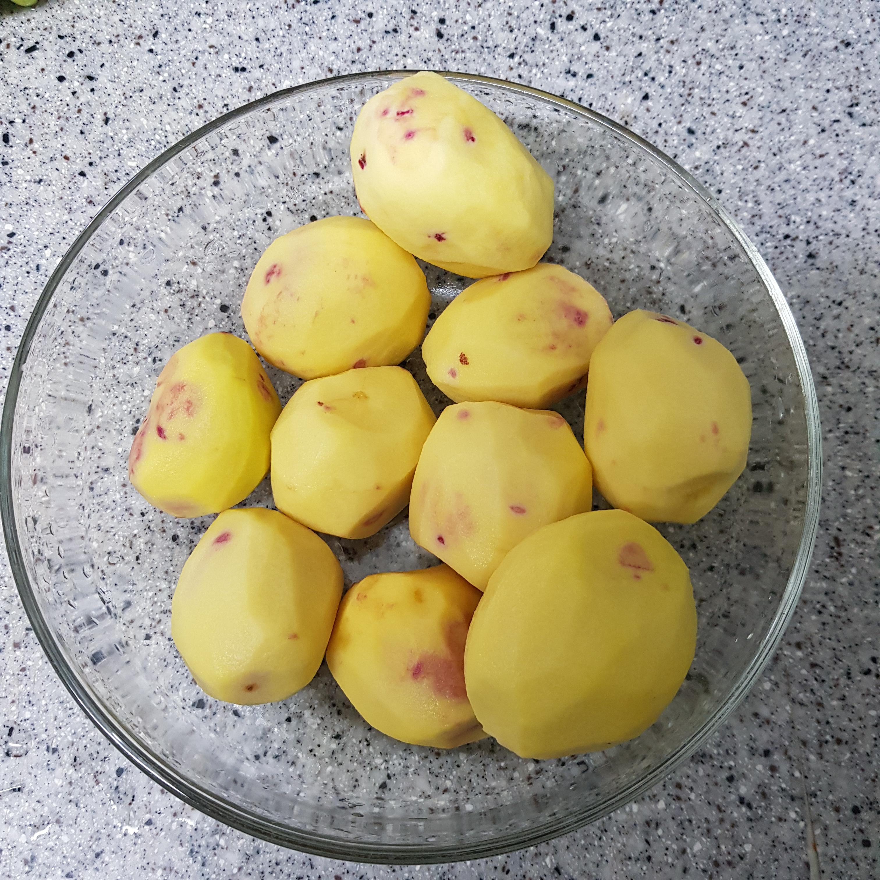 ▶ 한번 헹군 감자는 냄비에 물 5컵 정도, 꽃소금 반큰술 넣고 25분간 삶아주세요 감자 삶는 방법은 빨리 삶기 위해 잘라서 또는 전자레인지에 하는데 어떤 방법으로 하시든 감자만 익혀주면 되니 편한 방법으로 하시면 됩니다 저는 감자 10개(640g)를 삶아서 2개는 그냥 먹고 나머지 530g은 백종원 감자스프 만드는 데 사용했답니다