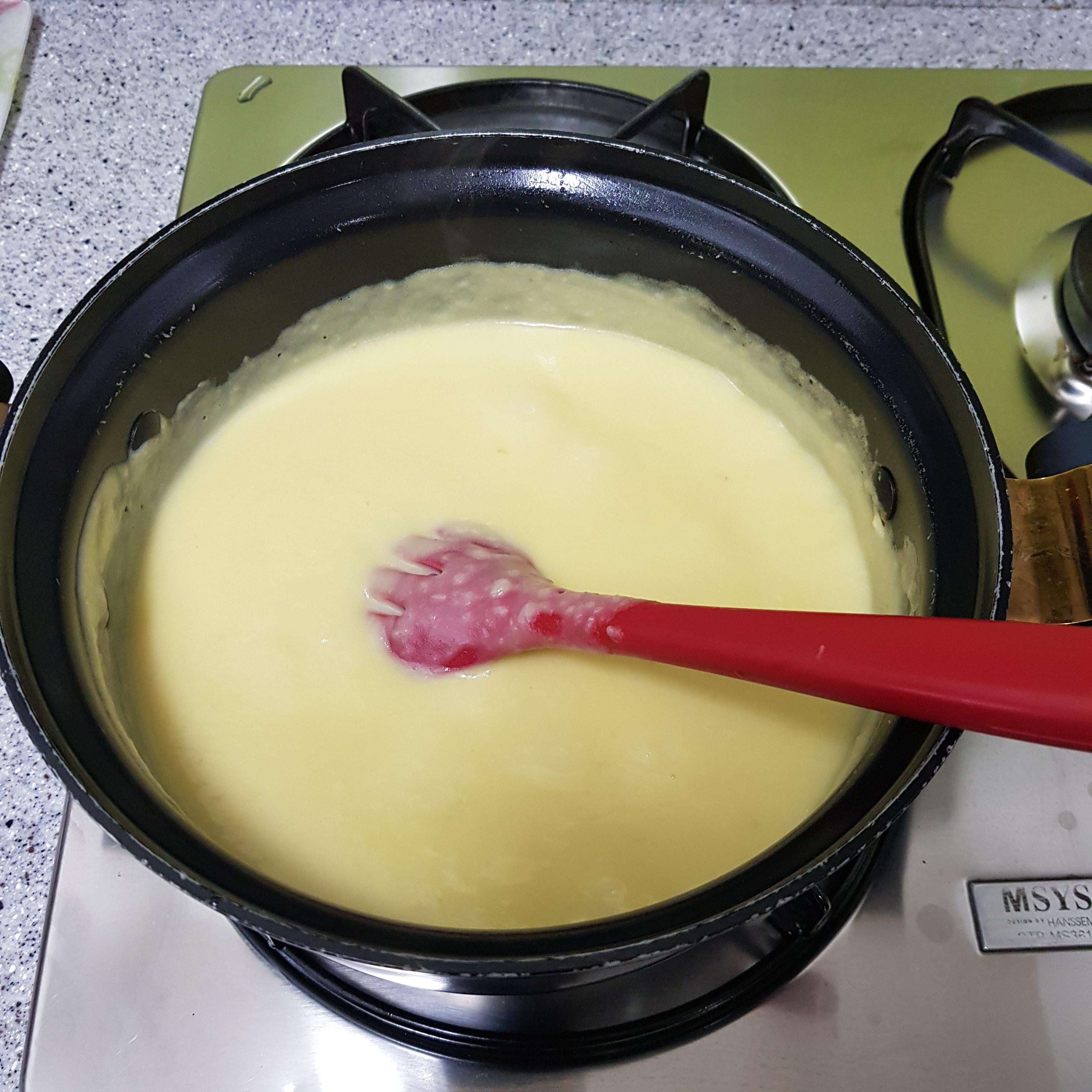 ▶ 약불과 중불로 조절하면서 타지 않게 잘 저어가며 끓여주다가 기포가 올라오면 불을 꺼주세요 감자를 삶을 때 꽃소금 반큰술을 넣어 따로 간은 하지 않았어요 취향에 따라 생크림, 설탕, 소고기 다시다 1꼬집 등을 넣으셔도 된답니다