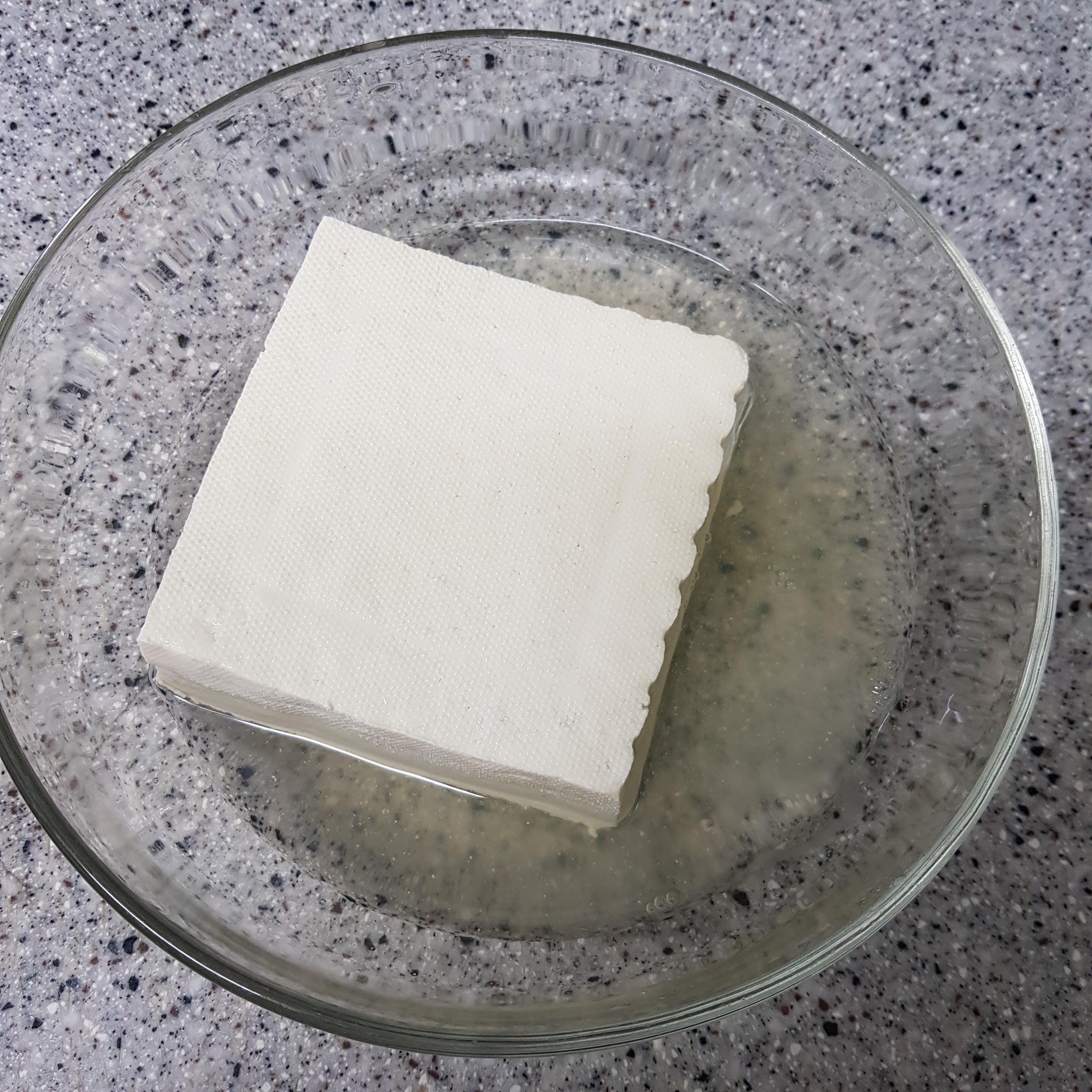 ▶ 두부 팩을 뜯을 때 물이 밖으로 흐르지 않게 큰 볼을 받쳐서 뜯는 표시 부분부터 뜯어주면 팩 안에 물이 튀지 않아요 주부 구단이면 간단하게 해결할 수 있지만 요린이들에게는 쉽지 않은 과정이라네요