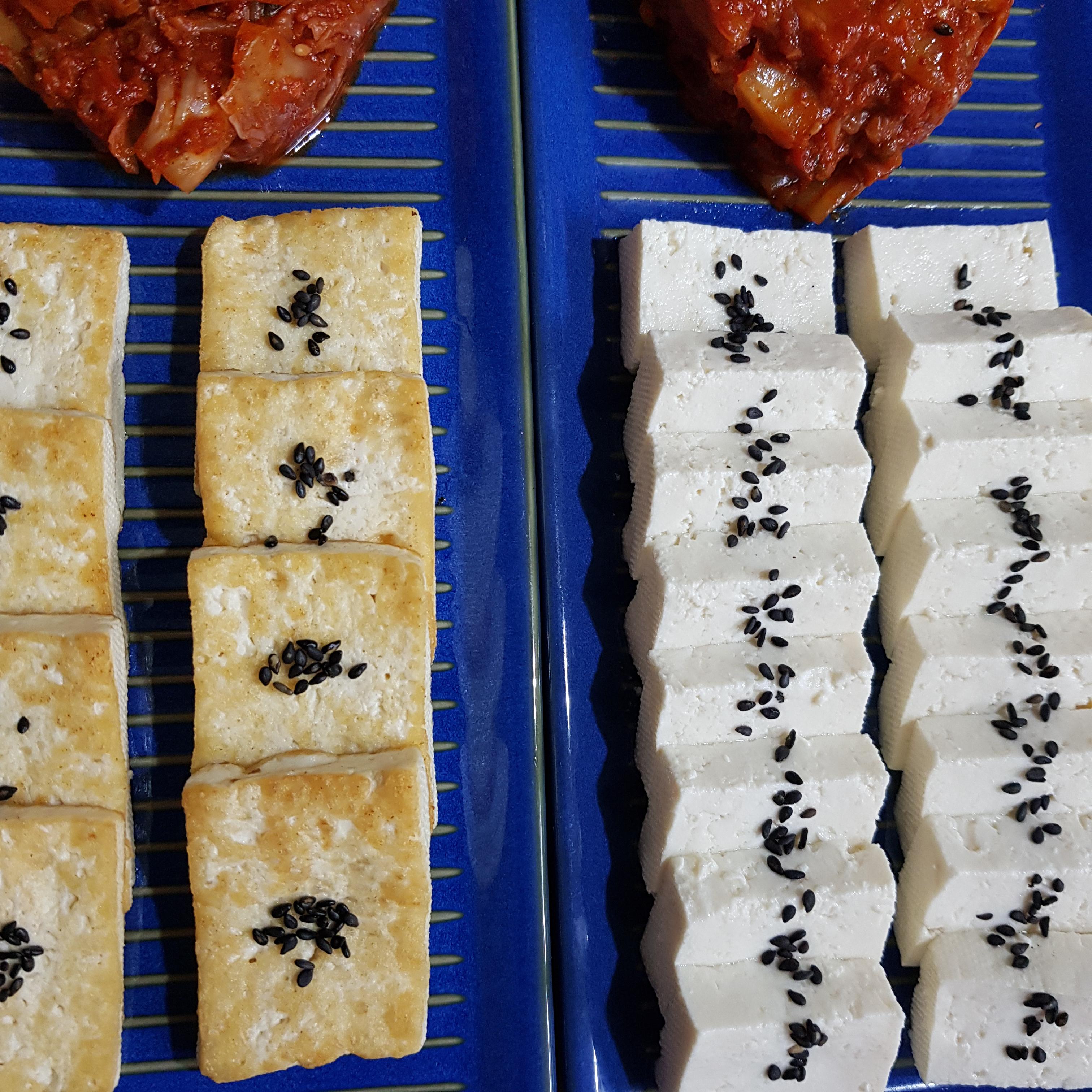 ▶ 두부 포장지에 찌개용, 부침용 두 종류의 두부가 있는데 수분 함량의 차이로 두부 단단함의 정도가 다르다는 표시라 하네요 원료나 제조법은 동일하니깐 기호에 따라 선택하시면 된다고 합니다