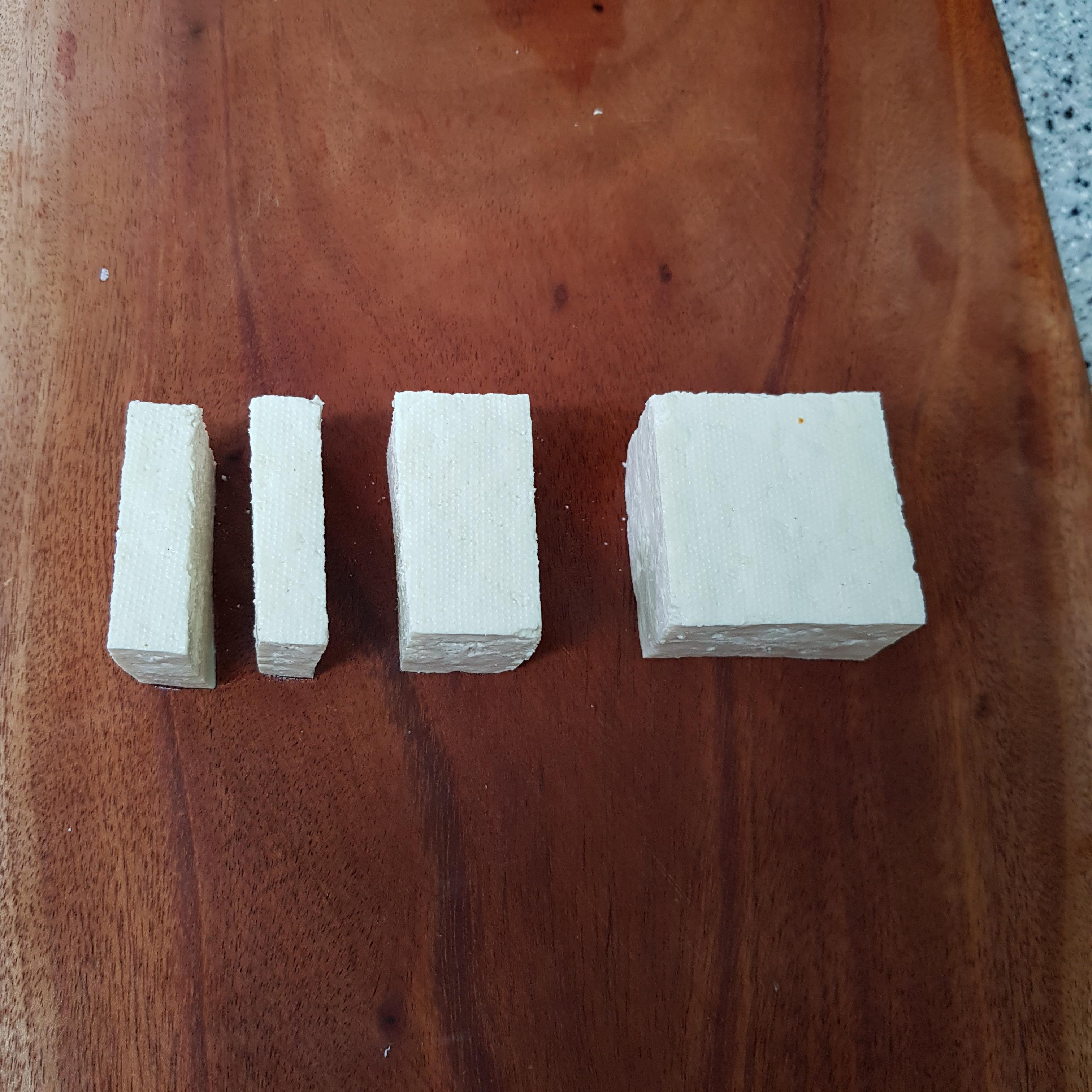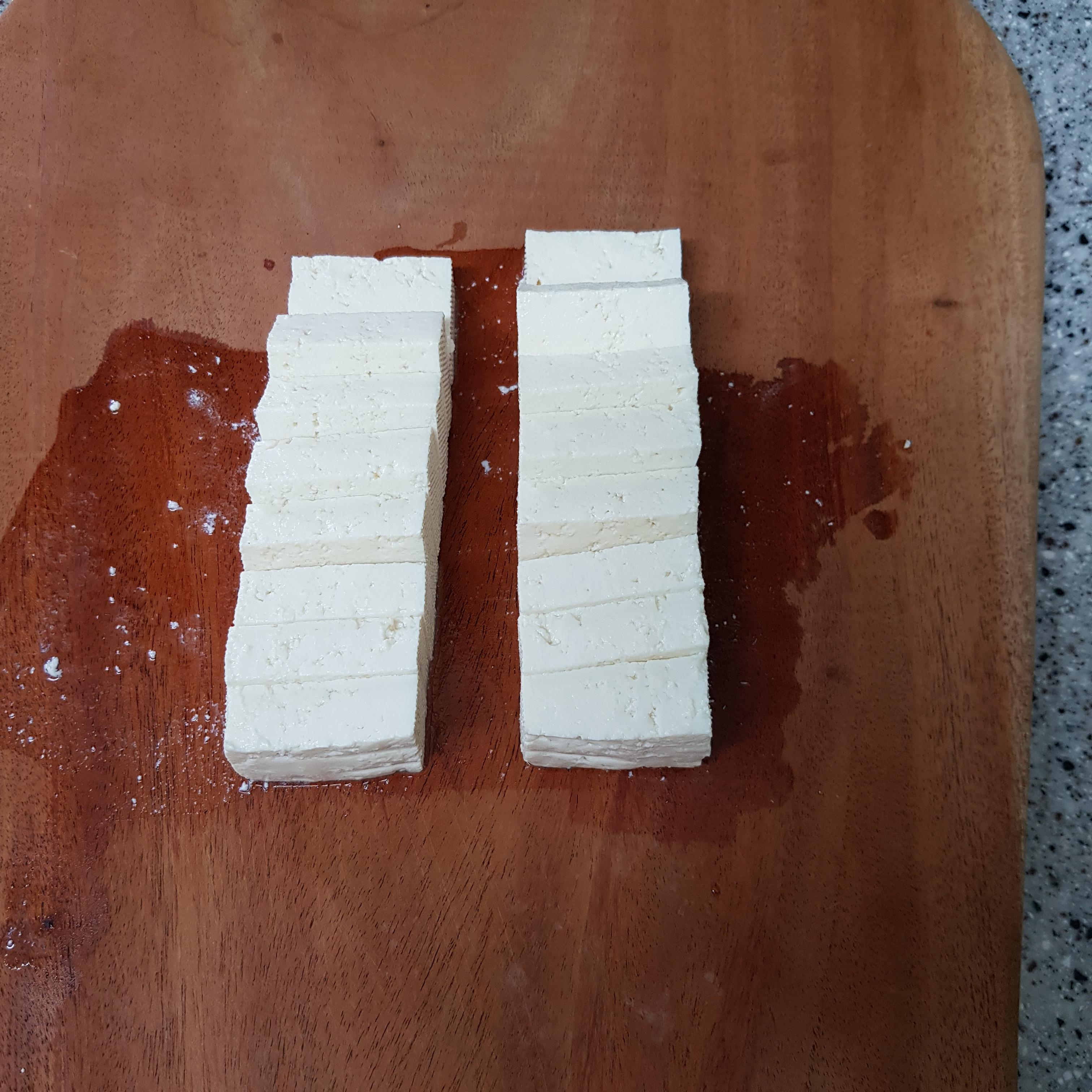 ▶ 두부 예쁘게 자르는 방법! 반반반 법칙입니다 두부의 반을 자르고 다시 반으로 반복해서 자르면 일정한 모양으로 썰 수 있답니다