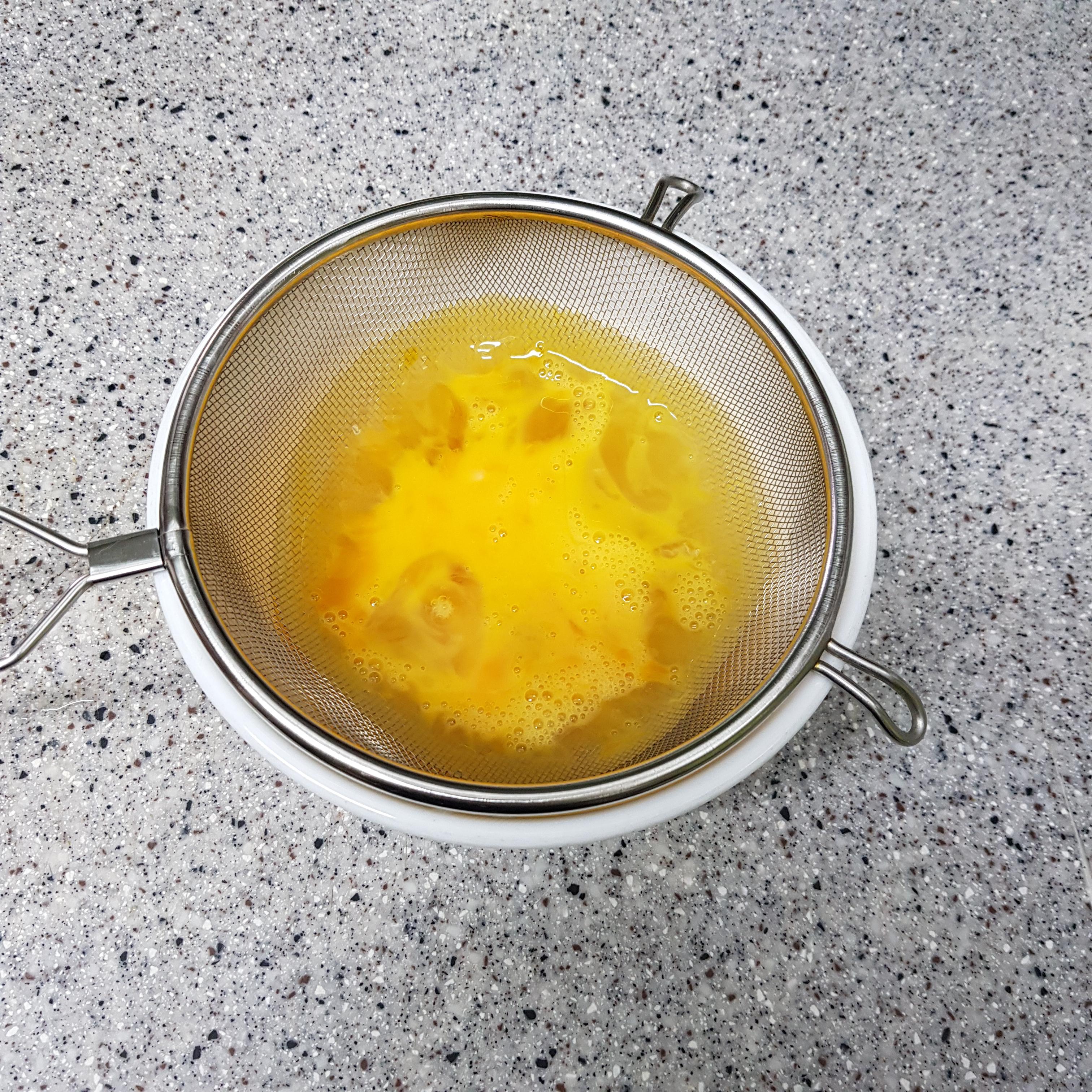 ▶ 달걀 5알에 고운 소금 반티스푼, 맛술 1큰술 넣고 섞은 후 채반에 밭쳐 알끈을 제거해주고 지단을 부쳐 썰어주세요 김밥에는 달걀지단을 많이 채 썰어 넣어주면 더 맛있는데 냉장고에 5알뿐이라 약간 부족하네요 참고해주세요