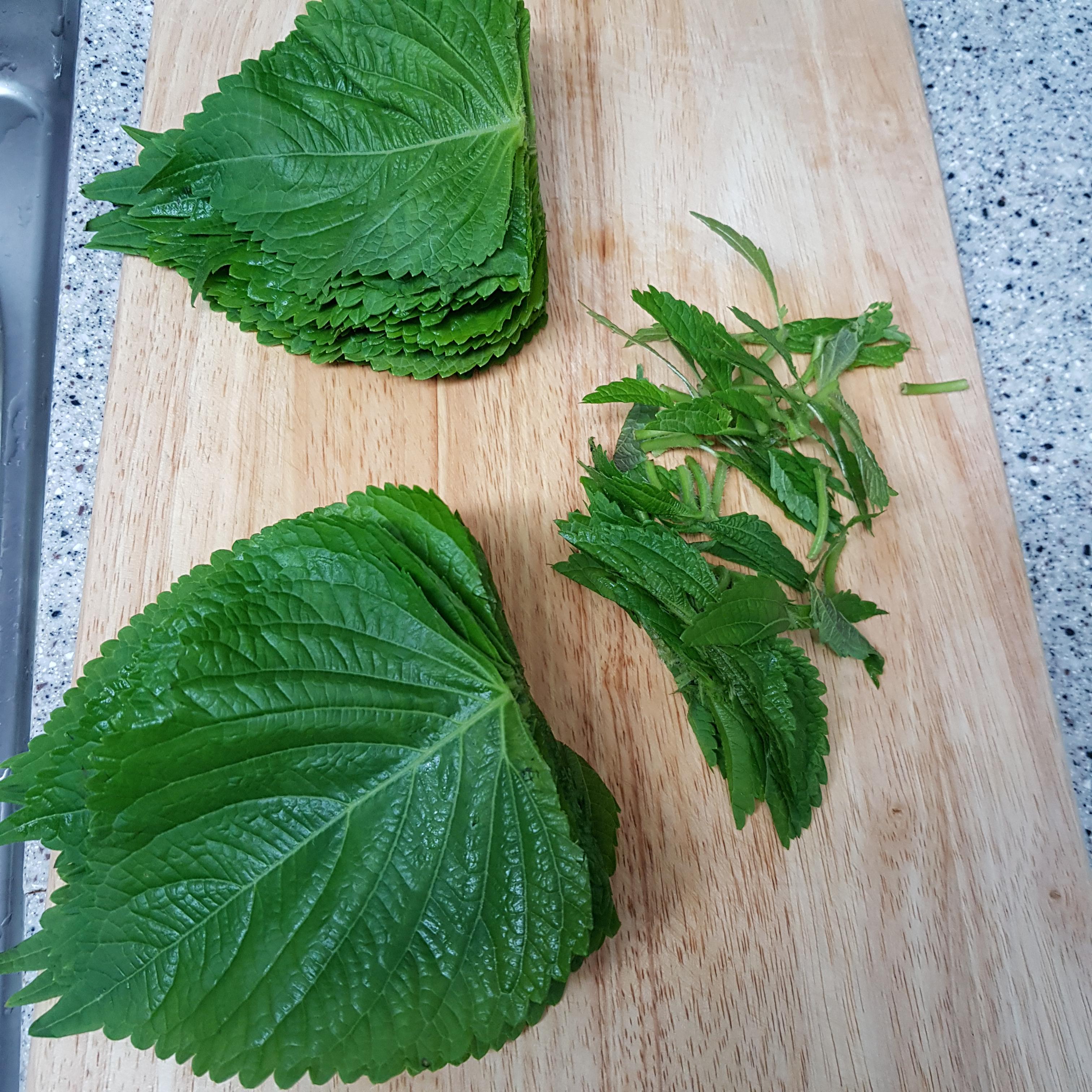 ▶ 깻잎 50장을 꼭지 부분을 잘라내 준비해주세요